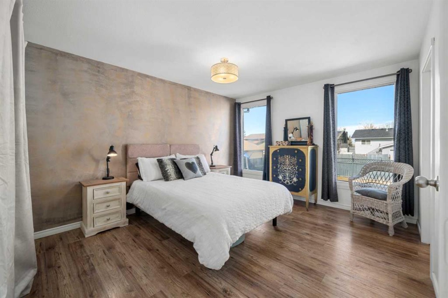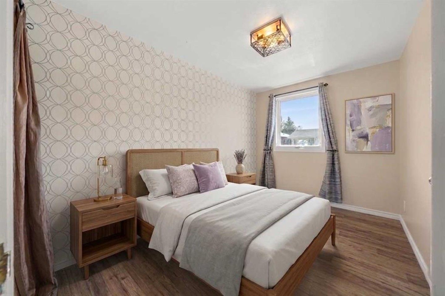 *OPEN HOUSE SUNDAY 22 MARCH 12-2PM* Welcome to this beautifully updated bi-level with an oversized double garage, ideally located just a short walk to Emerson and Sunshine Lakes. Offering 2,204 sq ft of living space, this home features 5 bedrooms, 2 full bathrooms, and over $111,000 in recent renovations—truly move-in ready. You’ll love the curb appeal with a professionally landscaped front yard and stamped concrete steps. Inside, the home is freshly painted with stylish light fixtures, a new electrical panel, updated switches and plugs, and a bright, modern feel throughout. The living room boasts a vaulted ceiling and tonnes of natural light, while the main level features luxury vinyl plank flooring in the hallway and living room, and white oak hardwood in the kitchen and dining area. The stunning kitchen showcases custom cabinetry, granite countertops, a glass backsplash, and stainless steel appliances including a gas stove and chimney-style hood fan. Enjoy the dining area or step out onto the back deck for a BBQ in your beautifully landscaped yard. The primary bedroom overlooks the backyard and includes a 4-piece ensuite, while two additional bedrooms and an updated 4-piece bathroom complete the main level. The fully developed basement offers a large family room, games/hobby area, two additional bedrooms, and a laundry room with stacked washer and dryer. It also features new doors, flooring, and windows. Outside, enjoy a private, fully fenced yard with a patio and deck. The 24’ x 24’ heated and insulated garage adds extra comfort and convenience. A perfect blend of updates, space, and outdoor living—ready for you to enjoy! View 3D tour/multimedia/virtual tour.
