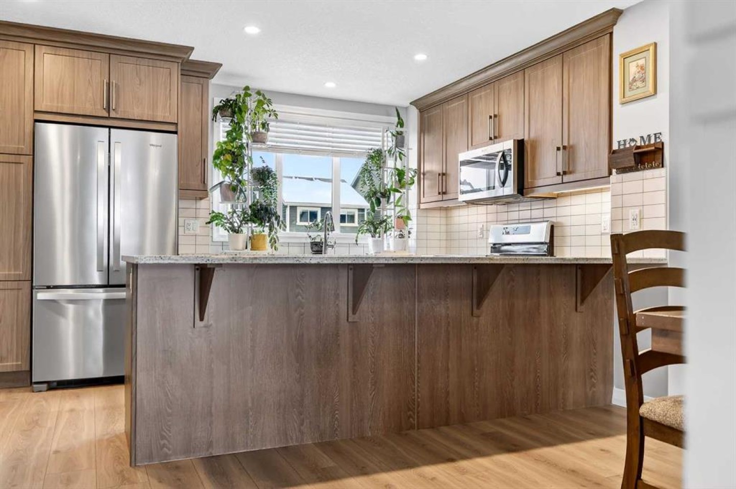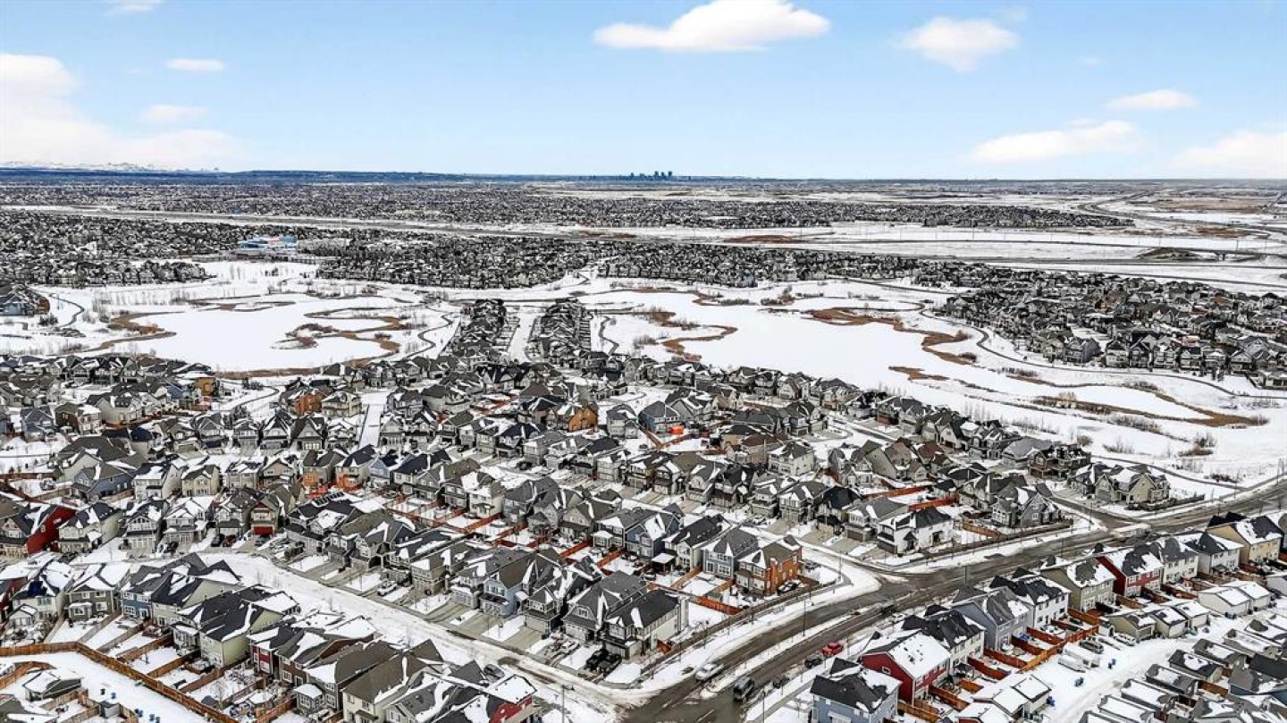 Welcome to this exceptional 2-storey residence in the highly sought-after lake community of Mahogany, where lifestyle and design come together in perfect harmony. Showcasing the ever-popular Sonata floorplan by Jayman BUILT, this home has been thoughtfully elevated with refined finishes & timeless style throughout. From the moment you arrive, the stunning stucco exterior sets the tone, leading you into a grand foyer with soaring ceilings reaching nearly 12 feet—an impressive introduction to the space that unfolds within. The intelligently designed layout offers both openness & definition, creating a unique separation between living areas while maintaining a seamless flow. The lower living room is a true showpiece, featuring a striking floor-to-ceiling shiplap feature wall anchored by a cozy electric fireplace—an inviting space to relax and unwind. Overlooking this area is the beautifully appointed kitchen & dining space, framed by upgraded wrought iron railings that add architectural interest & elegance. The chef-inspired kitchen is both functional and beautiful, showcasing rich woodgrain Flint cabinetry with soft-close doors & crown moulding extending to the ceiling. A Blanco Silgranit undermount sink, upgraded Whirlpool appliances—including a smooth-top convection range and French door refrigerator with ice maker—complement the space, while Crystal granite countertops and an expansive flush extended island provide the perfect setting for casual dining and entertaining. Warm, earthy tones throughout the home create a welcoming and cohesive atmosphere. Upstairs, you’ll find three generously sized bedrooms, including a spacious primary retreat designed for comfort and convenience. The primary suite features a large walk-in closet with direct access to the upper laundry room, and a well-appointed 3-piece ensuite complete with an oversized walk-in shower and sleek sliding glass doors. Two additional bedrooms and a full main bathroom complete this level, offering ample space for family living. The unfinished basement presents a wonderful opportunity to customize and expand your living space, already equipped with a 3-piece rough-in and impressive ceiling height in portions of the area. Step outside to a thoughtfully designed backyard retreat, where an upper deck for grilling leads down to a spacious lower deck—ideal for entertaining or relaxing. A charming pergola sets the stage for summer gatherings, while the artificial turf ensures a low-maintenance lifestyle. The oversized double detached garage completes this outdoor space with both function and convenience. Living in Mahogany means embracing a true four-season lifestyle centered around Calgary’s largest man-made lake. Enjoy swimming & paddle boarding in the summer months, and skating & recreational activities in the winter. The community clubhouse offers year-round programs and gathering spaces, all within one of Calgary’s most vibrant and family-friendly neighbourhoods. This is more than a home-it's a lifestyle.