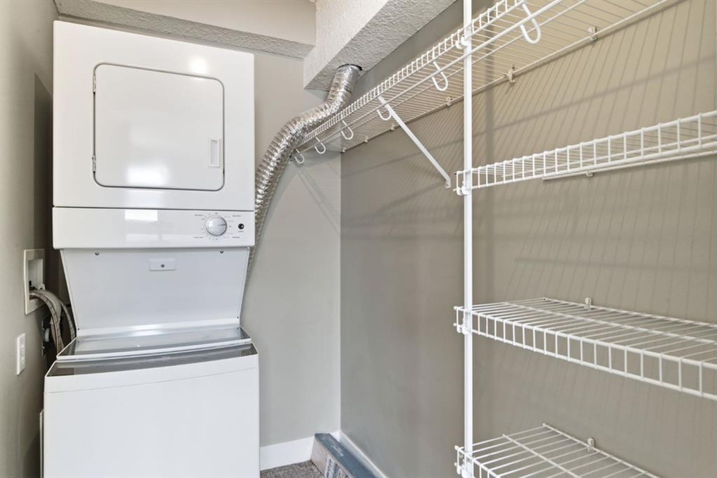 Dishwasher, Electric Stove, Range Hood, Refrigerator, Washer/Dryer Stacked, Window Coverings