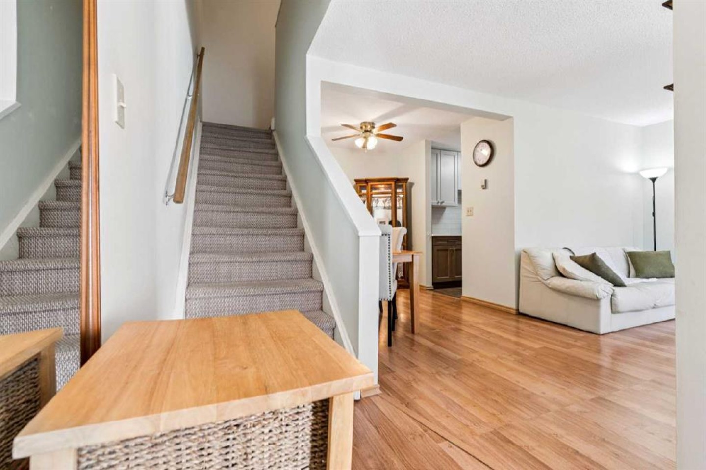 Like Living in a Park! Mature Trees grace the grounds of this well-maintained complex in the Heart of Amenity-rich Acadia. Sunny 2 Bedroom END Unit Townhome with Stunning NEW Custom Kitchen Renovation - OVER $35,000 - Knockdown Ceilings, Quartz Counters, STAINLESS STEEL Appliances & Gorgeous HIGH QUALITY Soft Close Cabinetry with X-TRA Height Upper Cabinets & Dovetailed drawers. Two Spacious Upper Bedrooms with TREED Views, a large Bathroom with newer toilet, shower head & flooring, a Private Fenced Yard, lots of extra storage space in the basement & 1 nearby Parking stall with Plug-in. Updated Vinyl Windows, Newer Hot Water Tank (2 years), Professionally Managed with Affordable Condo Fees ($312.36) that Include Water & Sewer, & it's PET-FRIENDLY too! Let’s talk Location - a Short Walk to Schools, Area Shops & Restaurants, the Tennis Academy, Acadia Recreation Complex, Aquatic & Fitness Centre, Transit & More!