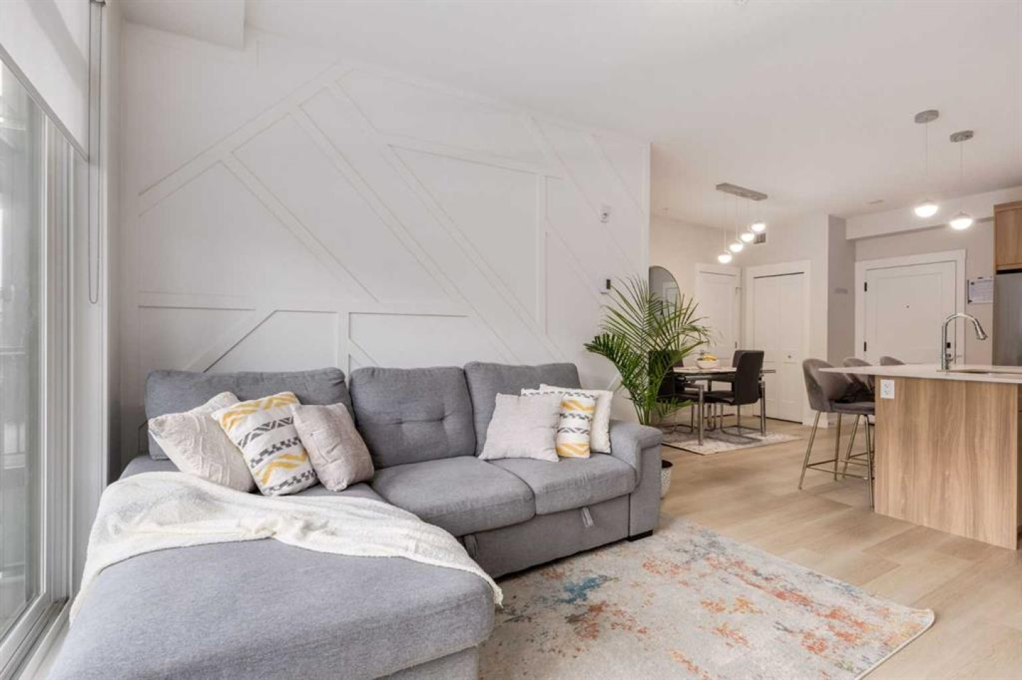 Welcome to this beautifully maintained 2-bedroom, 2-bathroom condo offering a modern blend of comfort, style, and functionality. Thoughtfully designed with durable LVP flooring throughout, this bright and inviting home features an open-concept layout complemented by stainless steel appliances, soft-close cabinetry, and contemporary finishes. The spacious living area is enhanced by an updated feature wall, creating a stylish focal point, while the large balcony extends your living space outdoors—perfect for relaxing or entertaining. The primary bedroom offers exceptional comfort with a generous walk-in closet, dedicated office space, custom feature wall, and a private 3-piece ensuite with dual sinks. A second well-sized bedroom and additional 4-piece bath provide flexibility for guests, family, or roommates. Additional highlights include in-suite stacked washer and dryer, air conditioning, HRV system, titled underground parking, and titled storage, along with a dog bath and a grass enclosed dog run for your furry friend. This is a fantastic opportunity for those seeking low-maintenance living with upgraded features and everyday convenience.