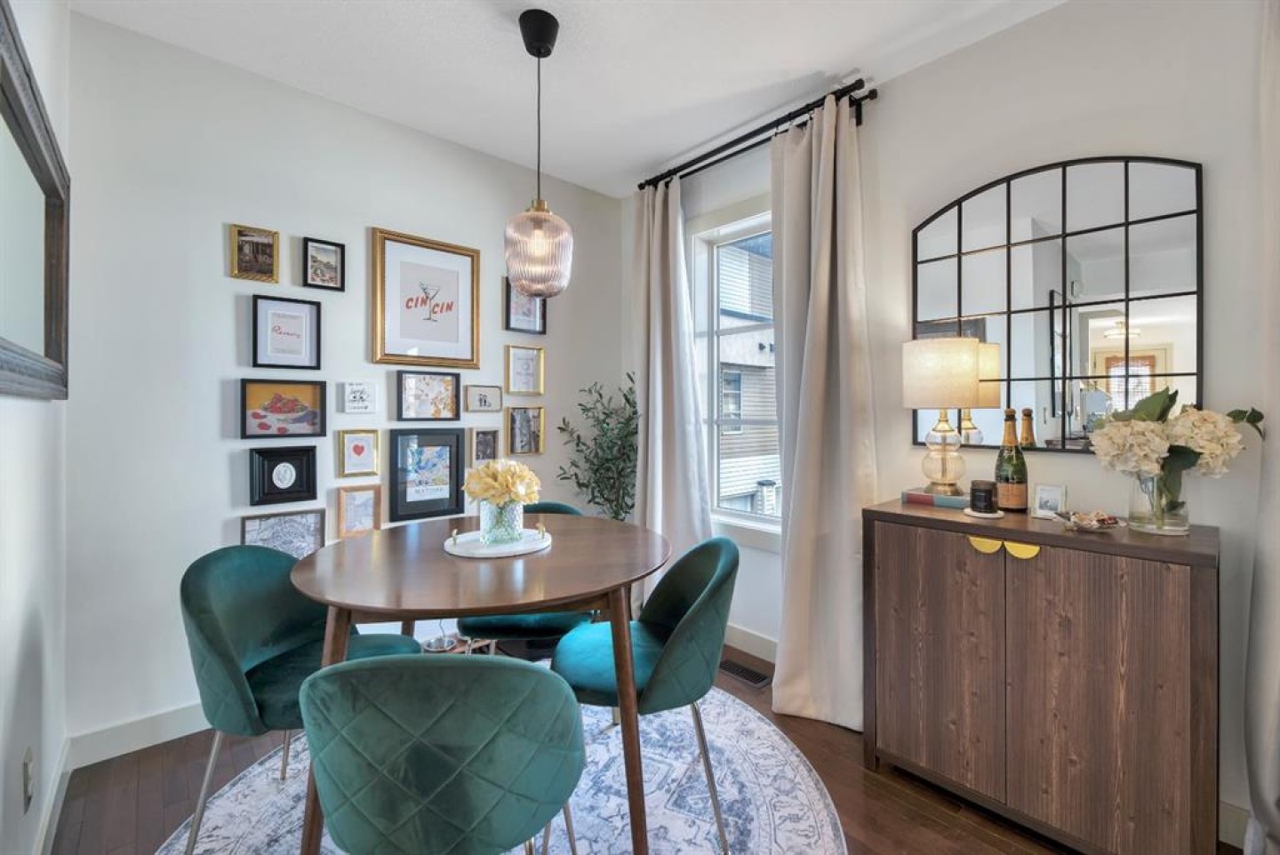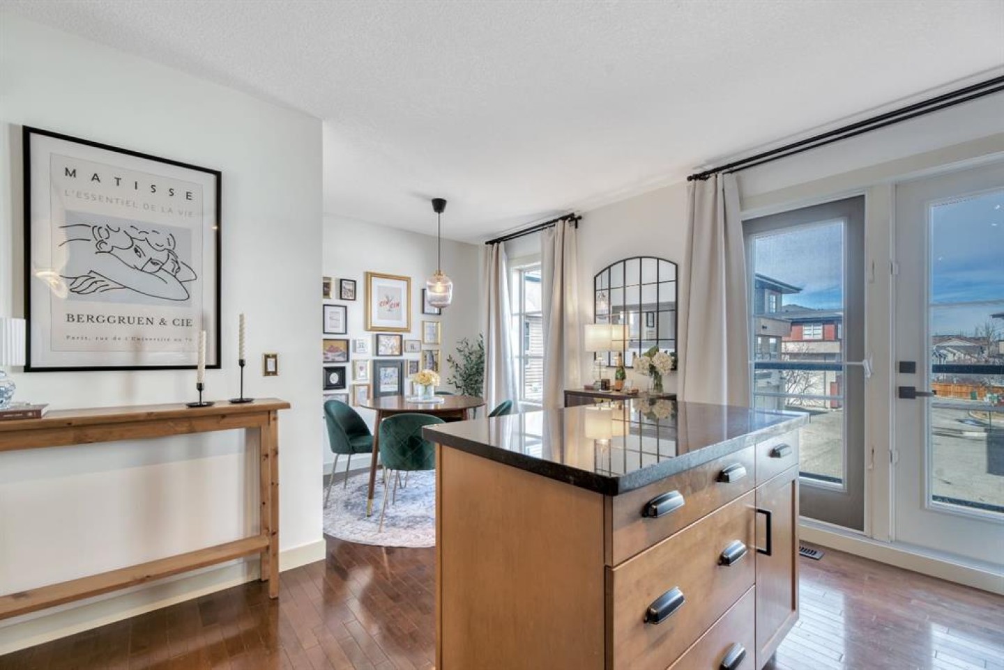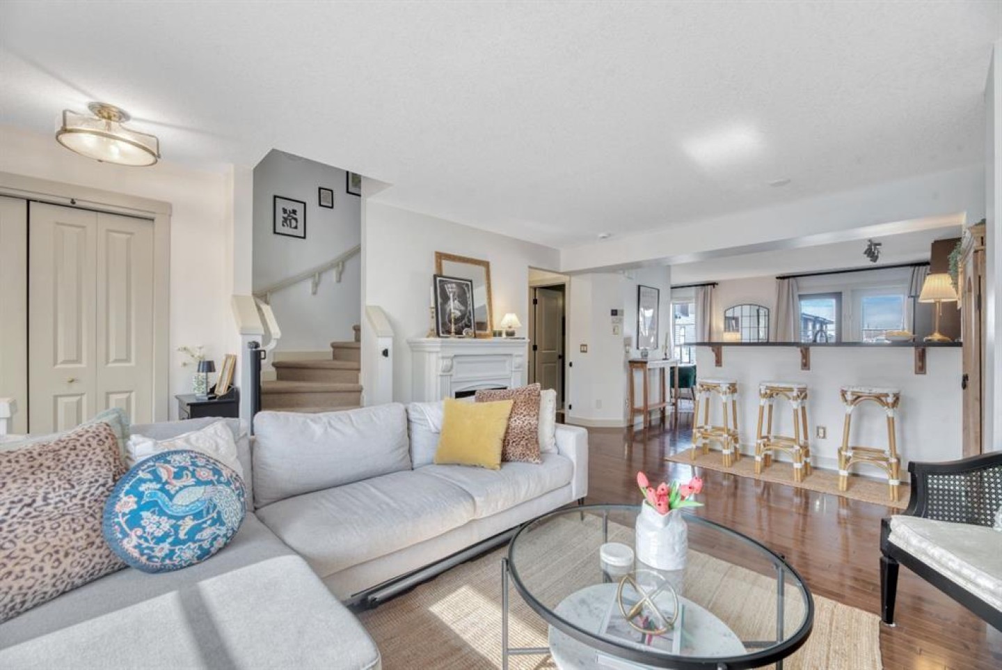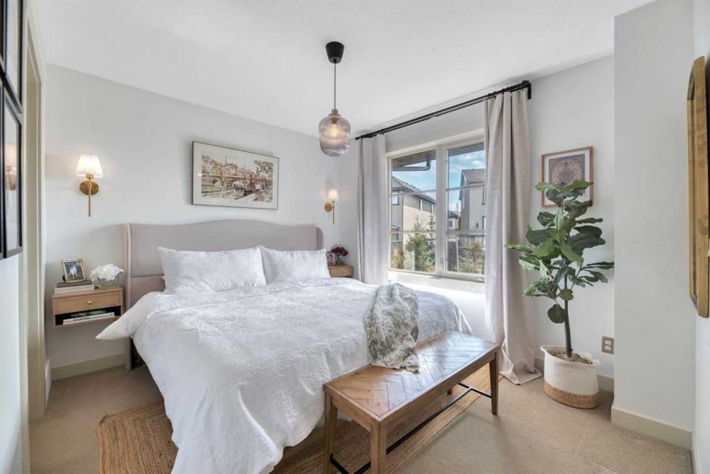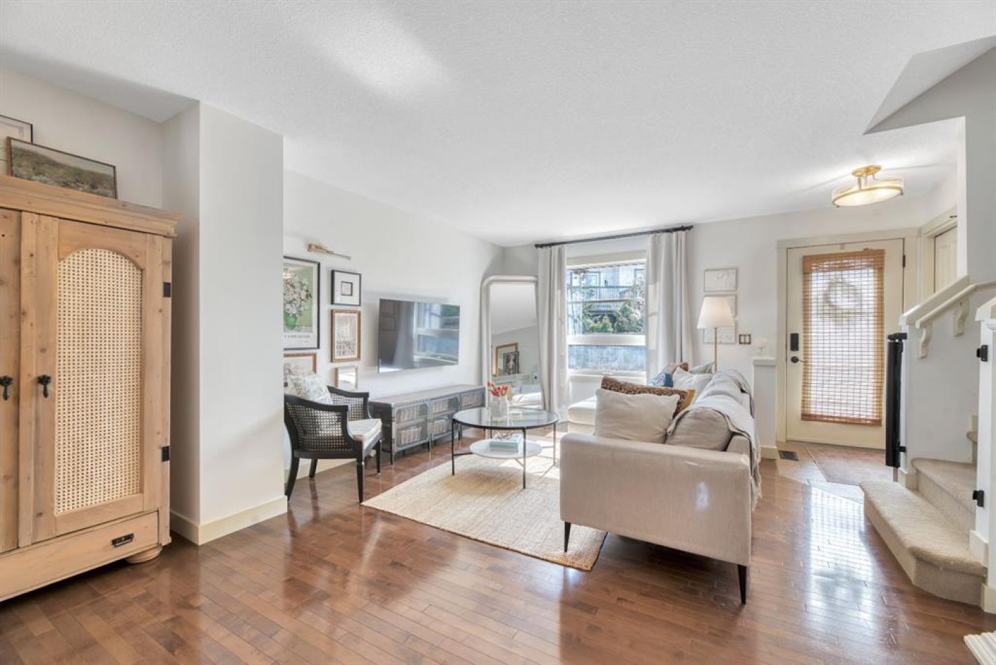 This townhome located in Mosaic of Aspen Woods, offers sophisticated, low-maintenance living in one of Calgary’s most sought-after west-side communities. Ideally located near 17th Avenue, Bow Trail, and Stoney Trail, this home provides quick access to downtown, the Rocky Mountains, and nearby transit, including the LRT. Excellent schools, parks, and walking pathways are all just steps away. This bright home offers over 1220 sq. ft. of living space and features a south-facing primary bedroom, living room, and patio, filling the spaces with natural light throughout the day. The main level showcases hardwood floors, granite countertops, and an inviting kitchen with a convenient eating counter and nook, complemented by upgraded hardware, lighting, and plumbing fixtures. The kitchen is equipped with Samsung and LG appliances, including a Samsung refrigerator, LG induction range with over-the-range microwave, and a Whirlpool dishwasher. Air conditioning adds year-round comfort. A balcony off the kitchen adds a functional outdoor space. Upstairs you’ll find three bedrooms, including a primary bedroom with a walk-in closet and 3-piece ensuite, plus a full secondary bathroom. A main floor powder room adds everyday convenience. The lower level offers ample storage and laundry space, while the double attached garage provides secure parking and additional storage. Located just minutes from Aspen Landing, West District and Westhills Towne Centre, you’ll enjoy easy access to boutique shopping, restaurants, and everyday amenities.