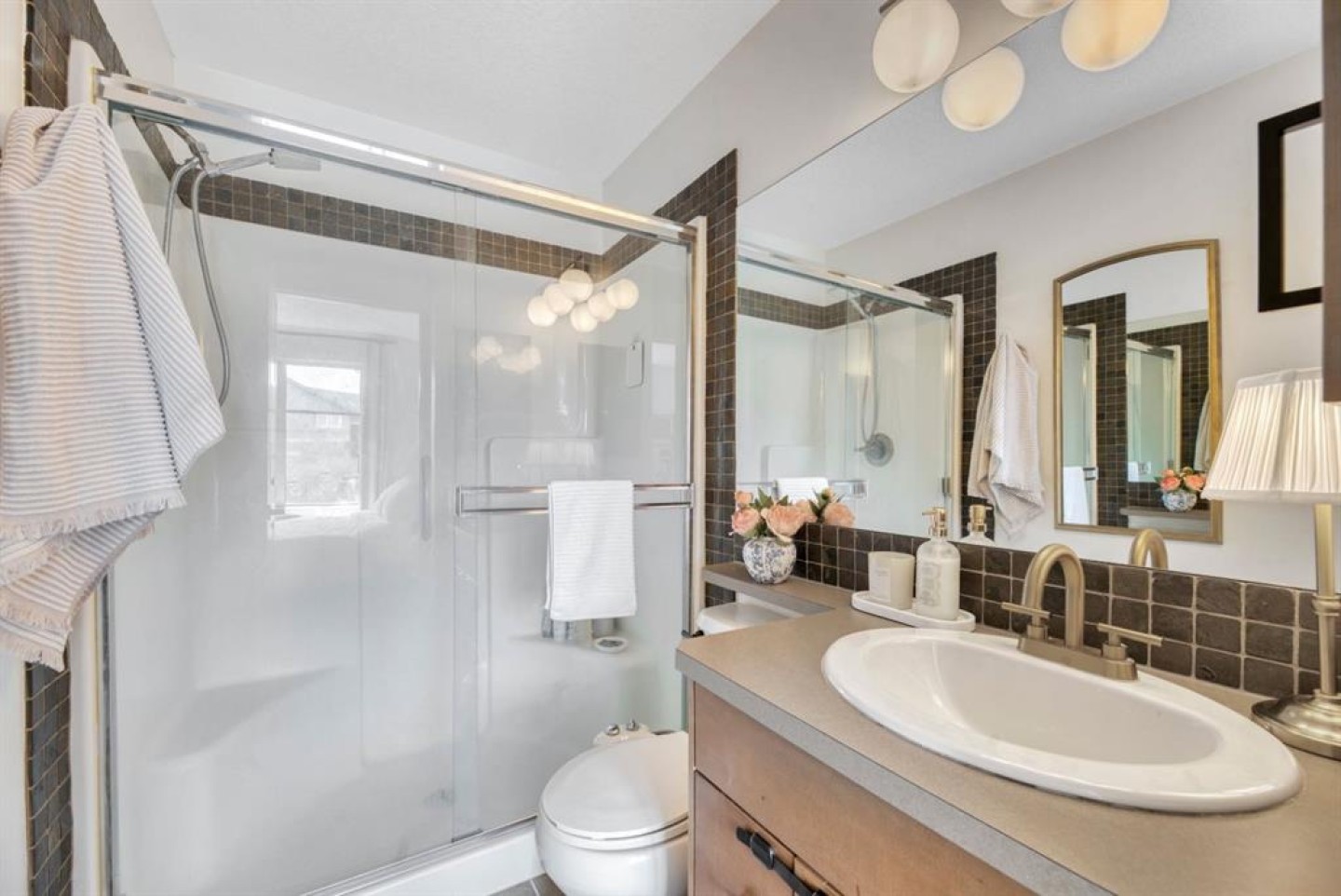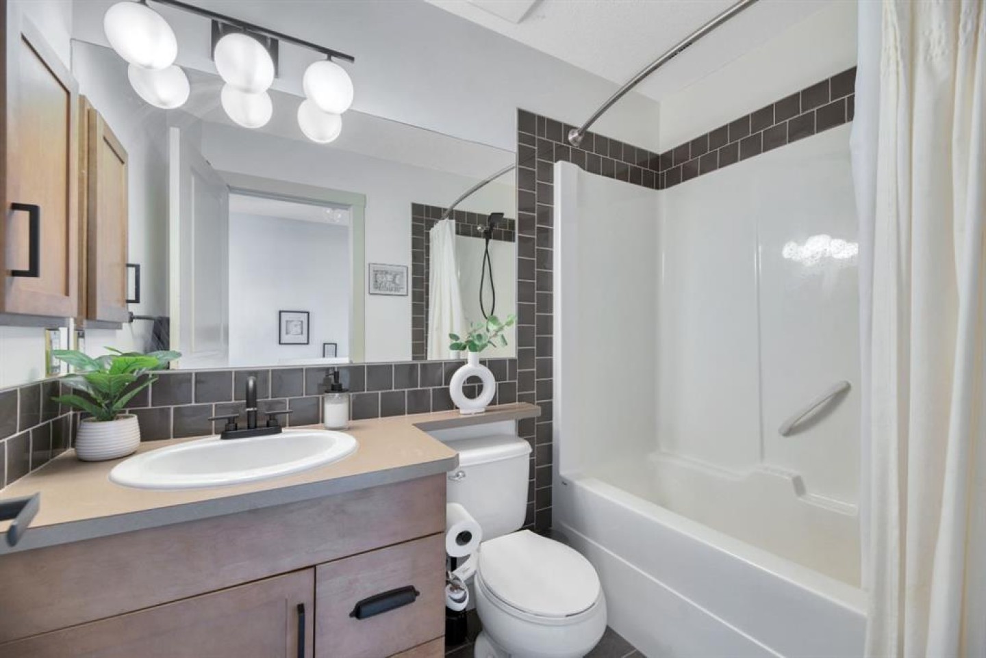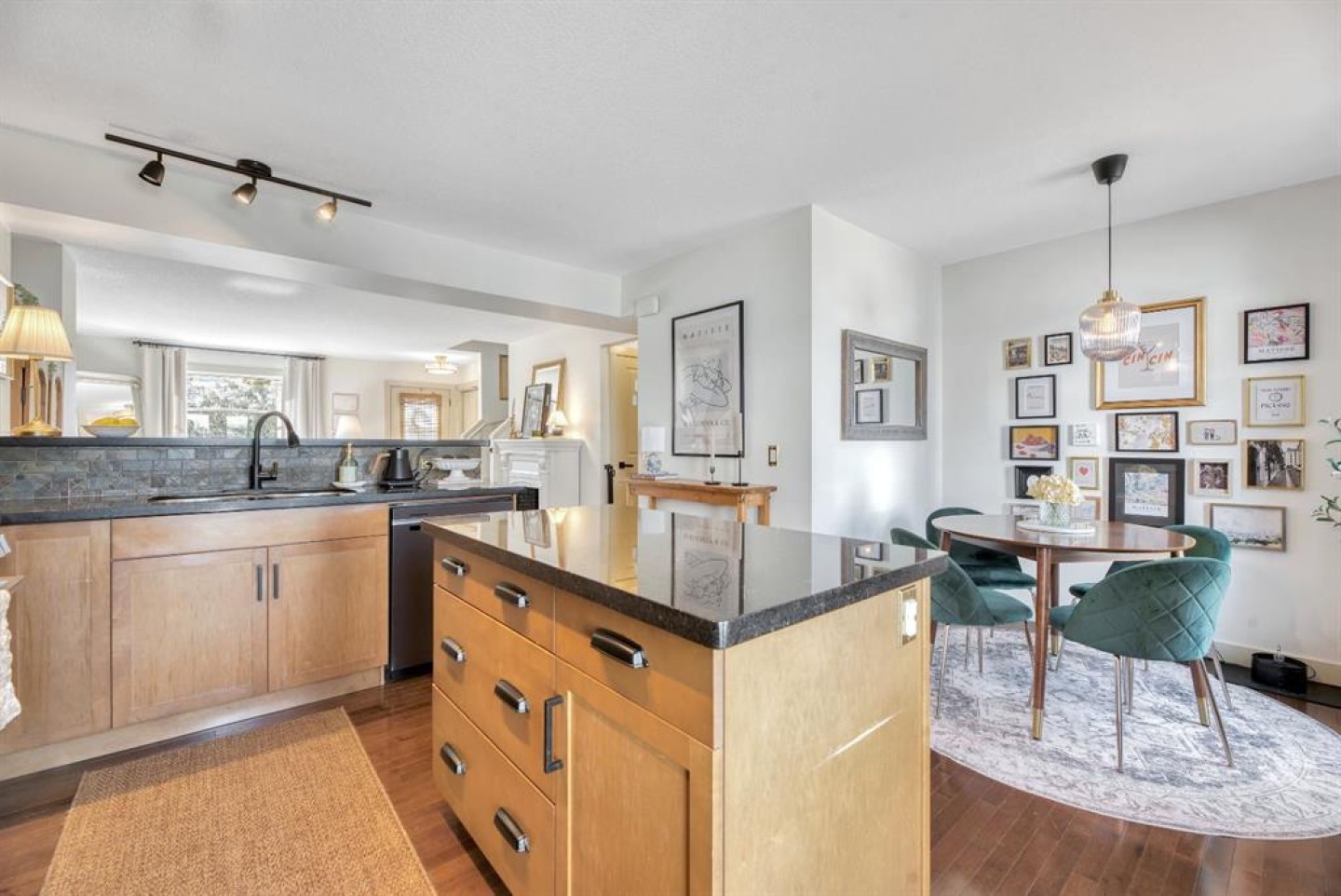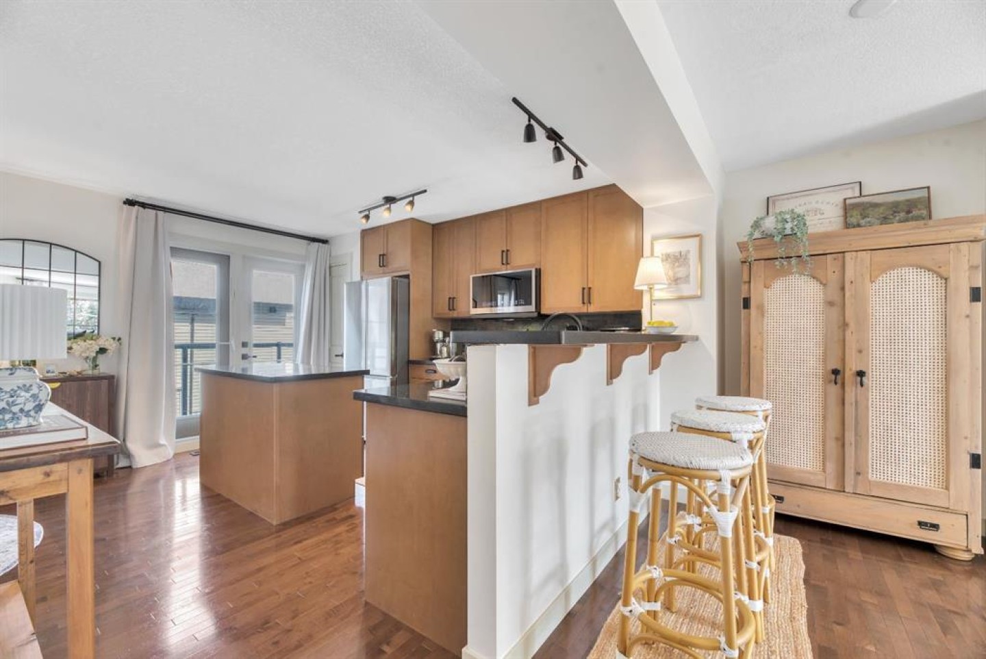This townhome located in Mosaic of Aspen Woods, offers sophisticated, low-maintenance living in one of Calgary’s most sought-after west-side communities. Ideally located near 17th Avenue, Bow Trail, and Stoney Trail, this home provides quick access to downtown, the Rocky Mountains, and nearby transit, including the LRT. Excellent schools, parks, and walking pathways are all just steps away. This bright home offers over 1220 sq. ft. of living space and features a south-facing primary bedroom, living room, and patio, filling the spaces with natural light throughout the day. The main level showcases hardwood floors, granite countertops, and an inviting kitchen with a convenient eating counter and nook, complemented by upgraded hardware, lighting, and plumbing fixtures. The kitchen is equipped with Samsung and LG appliances, including a Samsung refrigerator, LG induction range with over-the-range microwave, and a Whirlpool dishwasher. Air conditioning adds year-round comfort. A balcony off the kitchen adds a functional outdoor space. Upstairs you’ll find three bedrooms, including a primary bedroom with a walk-in closet and 3-piece ensuite, plus a full secondary bathroom. A main floor powder room adds everyday convenience. The lower level offers ample storage and laundry space, while the double attached garage provides secure parking and additional storage. Located just minutes from Aspen Landing, West District and Westhills Towne Centre, you’ll enjoy easy access to boutique shopping, restaurants, and everyday amenities.