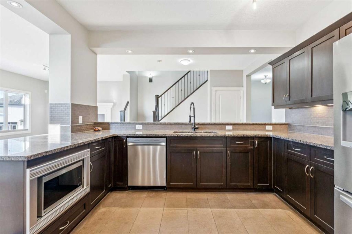 Welcome to 110 Heritage Place — a truly one-of-a-kind, custom-built Assured Home set on an expansive 8,600 sq. ft. lot in a quiet cul-de-sac. Enjoy breathtaking mountain views, a private yard, RV storage, and a massive heated oversized attached double garage. Thoughtfully updated with refreshed flooring and a newly painted basement, this home offers a clean, move-in ready feel while showcasing pride of ownership throughout. Step inside to a spacious ceramic tile foyer with convenient access to a 2-piece powder room and the impressive garage, complete with built-in cabinetry, workbenches, extensive storage, and lift-ready capability — ideal for car enthusiasts. Adding to the home’s thoughtful design, a premium smart dog door activated by your dog’s collar is located near the garage entrance, leading to a covered ramp and fully fenced dog run — a rare and convenient feature for pet owners. The heart of the home features a chef-inspired kitchen with ample counter and cupboard space, a Whirlpool fridge/freezer combo, and a Samsung induction oven. The open dining area leads to a stunning 700 sq. ft. deck with a built-in hot tub and wiring for sound and heat, perfect for year-round entertaining. The inviting living room is anchored by a cozy gas fireplace. Upstairs, brand-new carpet leads to a bright hallway and a spacious primary retreat with French doors, a custom built-in king-size bed, integrated lighting, and incredible mountain views. The ensuite offers a corner soaker tub, granite countertops, and a double vanity. Two additional bedrooms share a Jack & Jill bathroom, along with a dedicated laundry room and a large bonus room filled with natural light. The walk-out basement provides excellent flexibility with its own living space, appliances, and laundry — ideal for extended family or guests. A secondary suite would be subject to approval and permitting by the City/Municipality. Outside, the expansive backyard offers room for gardening, outdoor living, and rare on-site RV storage. With its unique design, recent updates, and versatile layout, this home is an exceptional opportunity for large or multigenerational families, or buyers seeking added flexibility and long-term value.