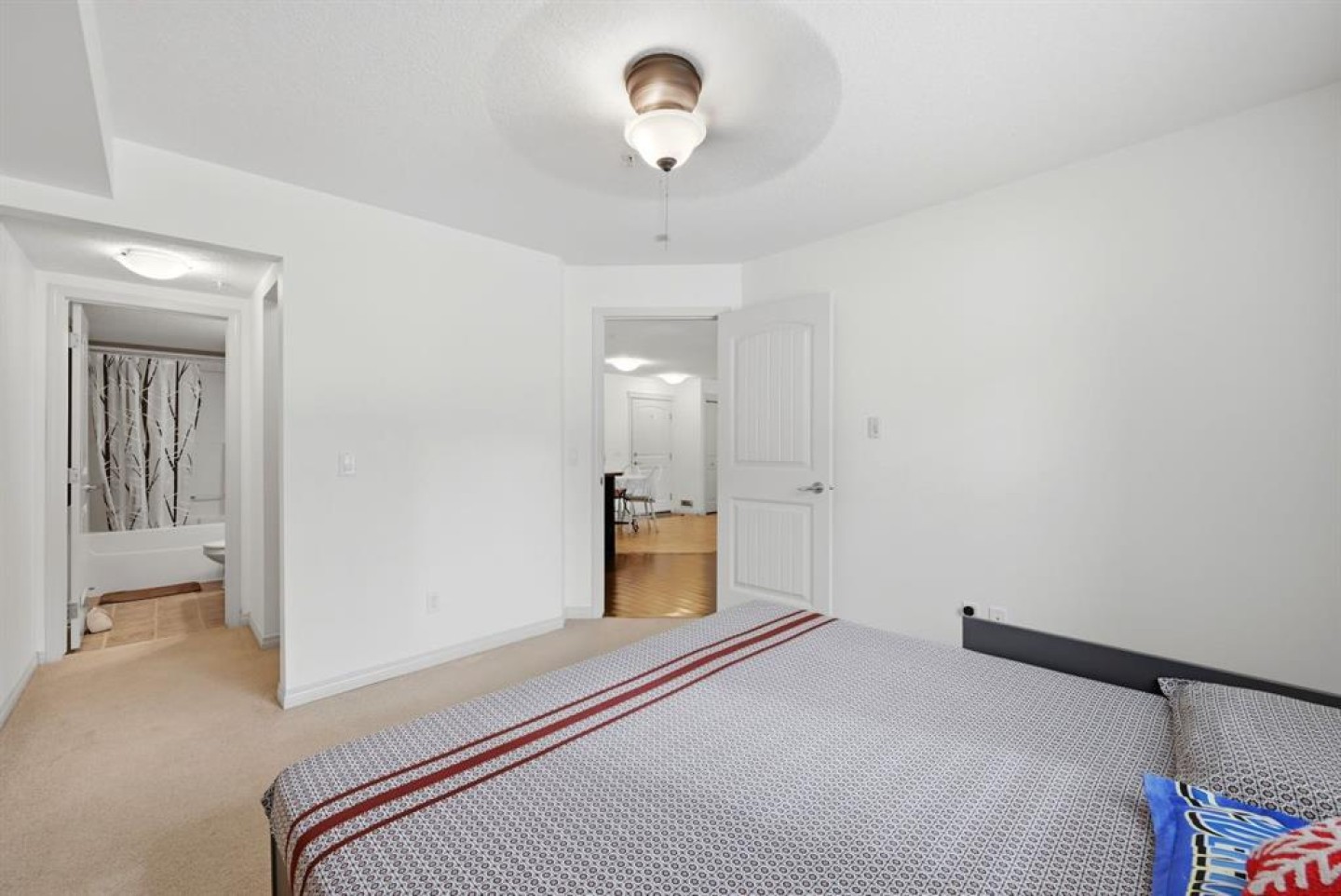 Welcome to this bright and beautifully maintained 2-bedroom, 2-bathroom ground-floor unit backing onto a peaceful walking trail in the highly sought-after community of Panorama Hills. Designed with both comfort and functionality in mind, this home features an open-concept layout with hardwood flooring, a cozy fireplace, and large windows that fill the space with natural light. Step outside to your private patio, perfect for relaxing or entertaining during the warmer months. The kitchen offers ample counter space and a practical layout, ideal for everyday living and hosting guests. The two spacious bedrooms are thoughtfully positioned on opposite sides, providing added privacy—perfect for families, guests, or roommates. Enjoy the convenience of underground titled parking and an unbeatable location within walking distance to shopping, dining, schools, VIVO recreation centre, and more. With quick access to Stoney Trail, Calgary International Airport, and CrossIron Mills, commuting and travel are effortless. Whether you’re a first-time buyer, downsizer, or investor, this is an incredible opportunity you don’t want to miss. Book your private showing today!