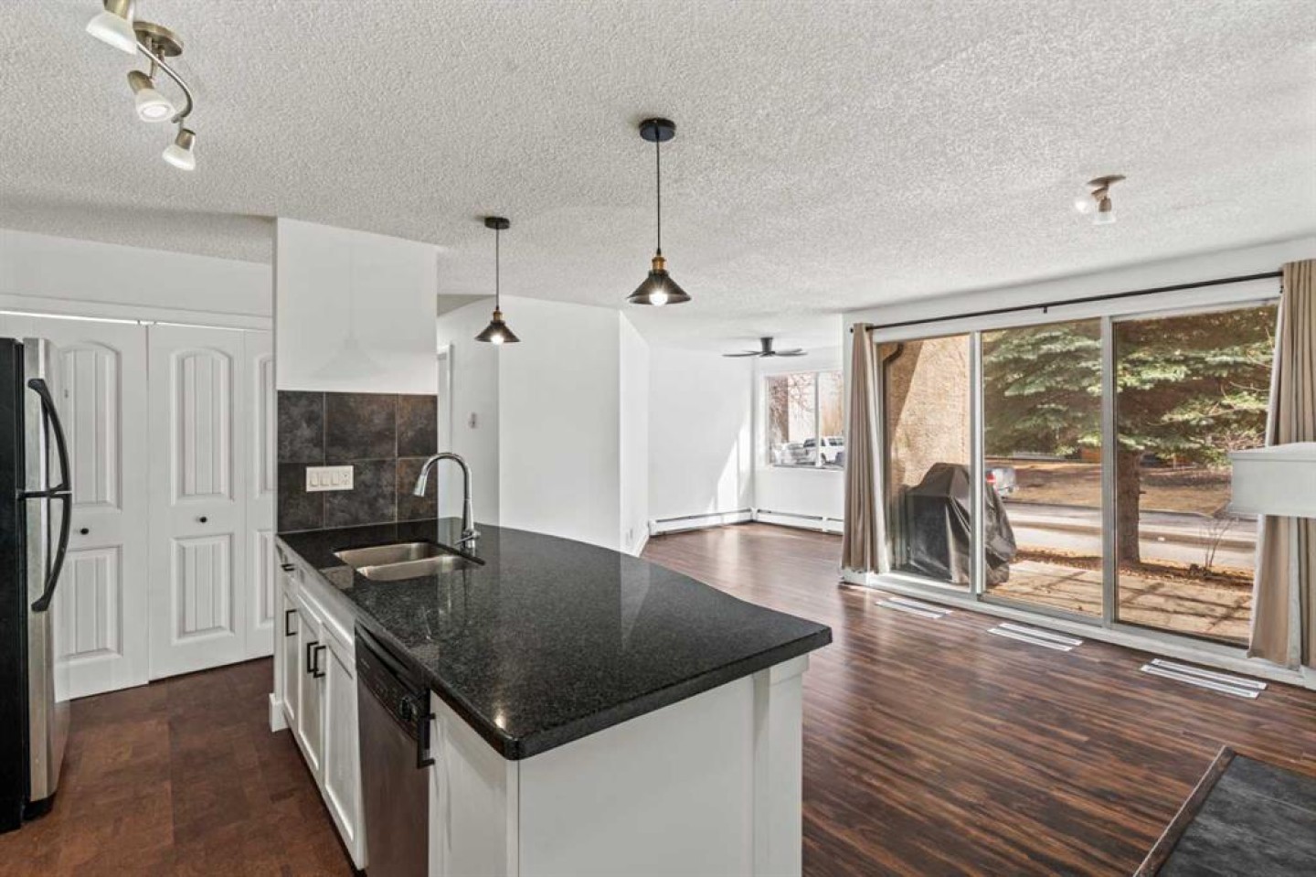 Resort-style living all year round awaits in this beautifully updated main-floor 2-bedroom, 2-bathroom condo with underground parking. This bright and spacious home features a modern open-concept layout with a stylish kitchen complete with granite countertops, tile backsplash, stainless steel appliances, and a large pantry—perfect for both everyday living and entertaining. The inviting living room offers generous space to relax, highlighted by a cozy wood-burning fireplace and easy access to your private patio, ideal for enjoying your morning coffee or unwinding outdoors. The large primary bedroom includes a spacious closet and a 3-piece ensuite, while the second bedroom and additional full bathroom provide flexibility for guests, family, or a home office. A versatile den/office or dining area, along with in-suite laundry, adds to the functionality of this well-designed floor plan. Residents enjoy exceptional amenities included in the condo fees, featuring a beautiful indoor pool, hot tub, fully equipped fitness room, and tennis courts, creating a true resort-style lifestyle right within the complex. Ideally located close to dog parks, scenic ridge pathways, shopping, and everyday amenities, with quick access to downtown, this home offers the perfect balance of convenience, comfort, and lifestyle.