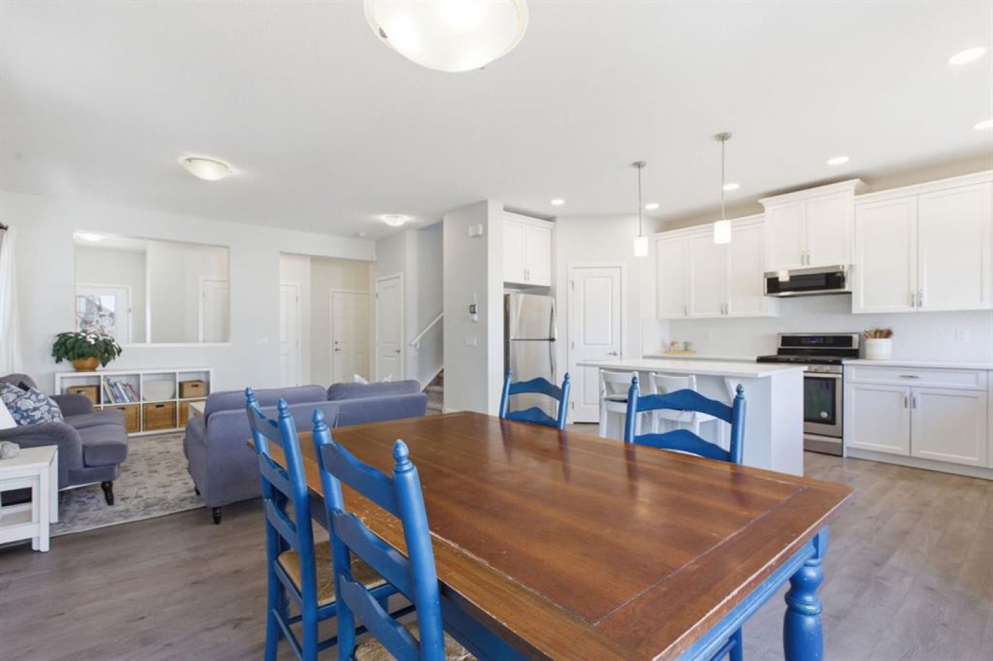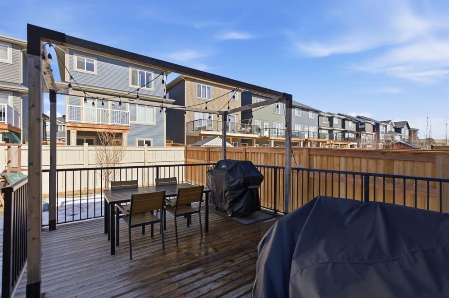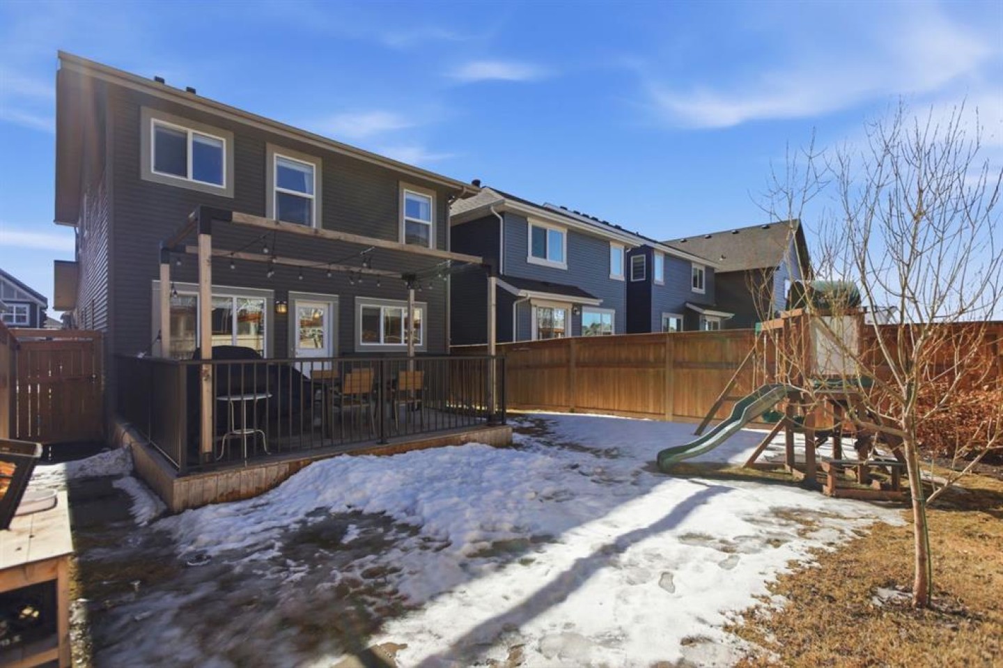 Welcome to this beautifully maintained two-storey home offering over 2,800 sq ft of thoughtfully designed living space in a quiet, family-friendly area of Cochrane. With a functional layout, modern finishes, and a fully developed basement, this home perfectly blends comfort and everyday practicality. Step inside to a bright and inviting main floor featuring large windows that fill the space with natural light and durable flooring throughout. The open-concept design seamlessly connects the living, dining, and kitchen areas—ideal for both entertaining and daily living. The kitchen is well-appointed with stainless steel appliances, a central island, a corner pantry, and plenty of cabinetry, creating a space that is both stylish and highly functional. The dining area is enhanced by beautiful built-in cabinetry, adding character and valuable storage. Upstairs, you’ll find a spacious and sun-filled bonus room—perfect for a family lounge, playroom, or home office. The upper level also offers three generously sized bedrooms, including a comfortable primary retreat complete with a walk-in closet and private ensuite. Convenient upper-floor laundry adds to the thoughtful layout. The fully finished basement extends your living space with a large family/recreation room, an additional bedroom, and a full bathroom—ideal for guests, teens, or extended family. Step outside to enjoy the private, fully fenced backyard featuring a large deck with a pergola and custom shades on both the top and west side—ideal for summer BBQs and outdoor entertaining. Additional highlights include a double attached garage, quiet street location, and close proximity to parks, schools, and scenic walking paths. This is a fantastic opportunity to own a well-cared-for home in one of Cochrane’s most desirable family-oriented communities.