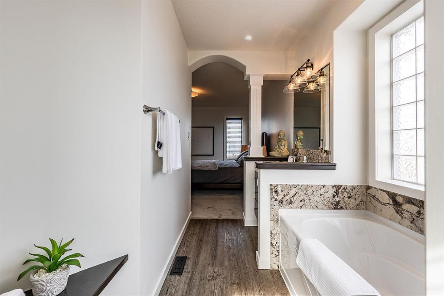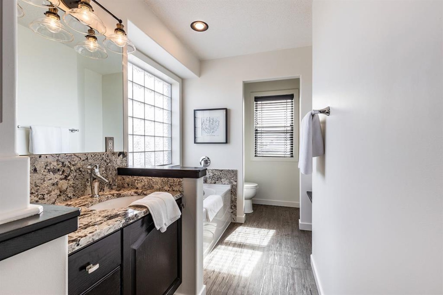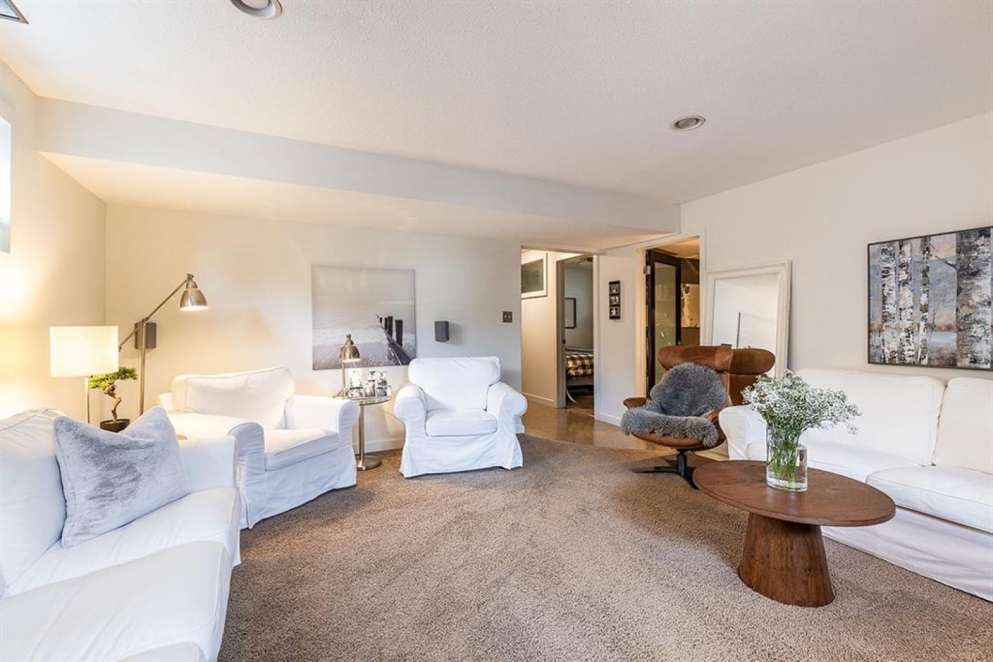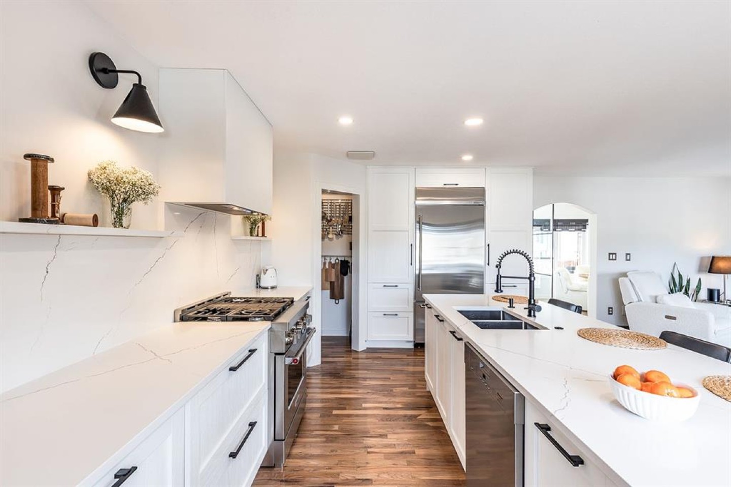 Step into refined living designed for discerning buyers—this fully renovated home offers upscale luxury from top to bottom, inside and out. Every detail has been thoughtfully curated to create a seamless blend of modern sophistication and everyday comfort. The open-concept main floor is both minimalist and striking, featuring rich walnut hardwood flooring and a beautifully designed kitchen where quartz countertops extend effortlessly into a full-height backsplash. Sleek KitchenAid Professional stainless steel appliances are integrated into the cabinetry and matte black fixtures add a bold, contemporary edge, while the dining area is elevated by a stunning modern glass wall—creating a bright, airy space perfect for entertaining. Upstairs, you’ll find three generously sized bedrooms, including a serene primary retreat complete with a 4-piece ensuite featuring a relaxing soaker tub. An additional full bathroom ensures convenience for family or guests. The fully finished basement offers a cozy and inviting atmosphere with cork flooring and carpet underfoot—ideal for movie nights, family gatherings, or quiet evenings in. This level also includes a fourth bedroom and another full bathroom, providing flexibility for guests or a home office. A truly unique highlight is the double attached garage, transformed into an exceptional extension of the home. With durable epoxy flooring, new heater and new spray foamed door/side mount opener, it doubles as an incredible entertaining space while still maintaining functionality. Additionally, the RV parking is an added bonus. Outside, the backyard is a fully landscaped summer oasis designed for relaxation and enjoyment. Both the rear deck and front porch are constructed with low-maintenance composite decking, offering durability without compromising style. Perfectly located close to scenic trails, schools, shopping, and everyday amenities, this home delivers the ideal balance of luxury, lifestyle, and location.
