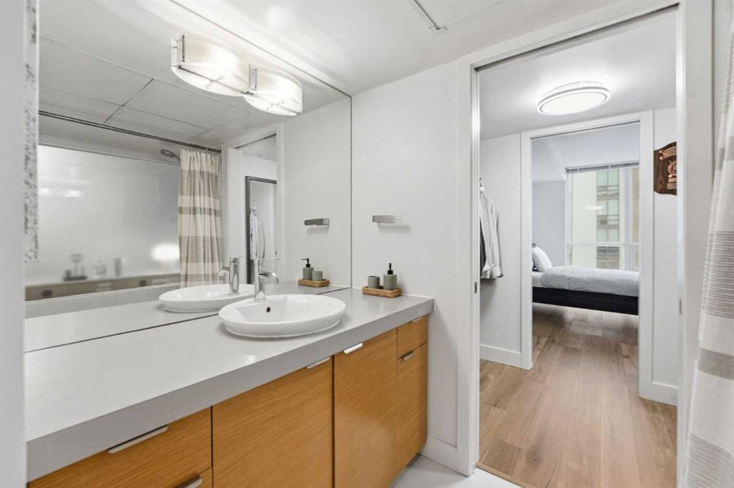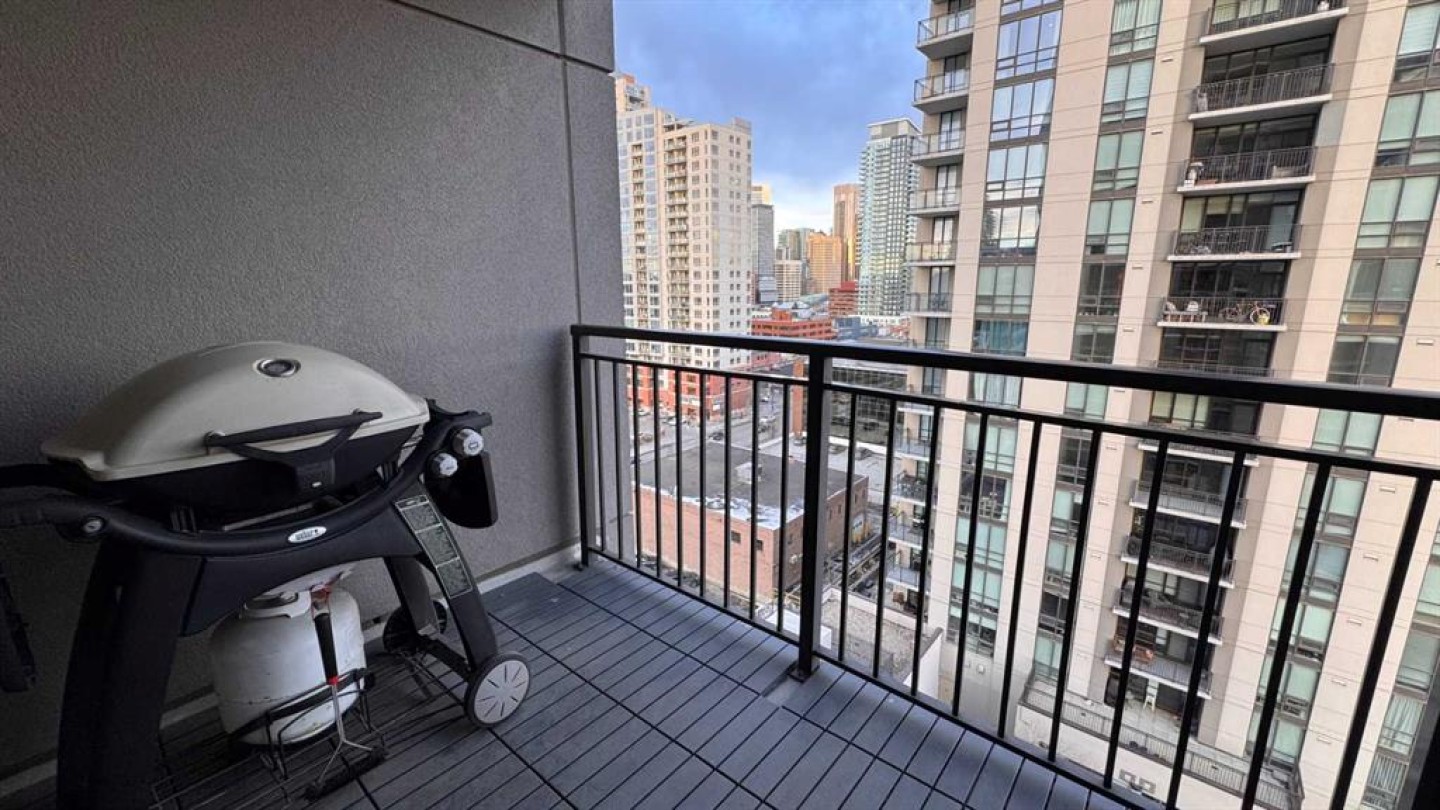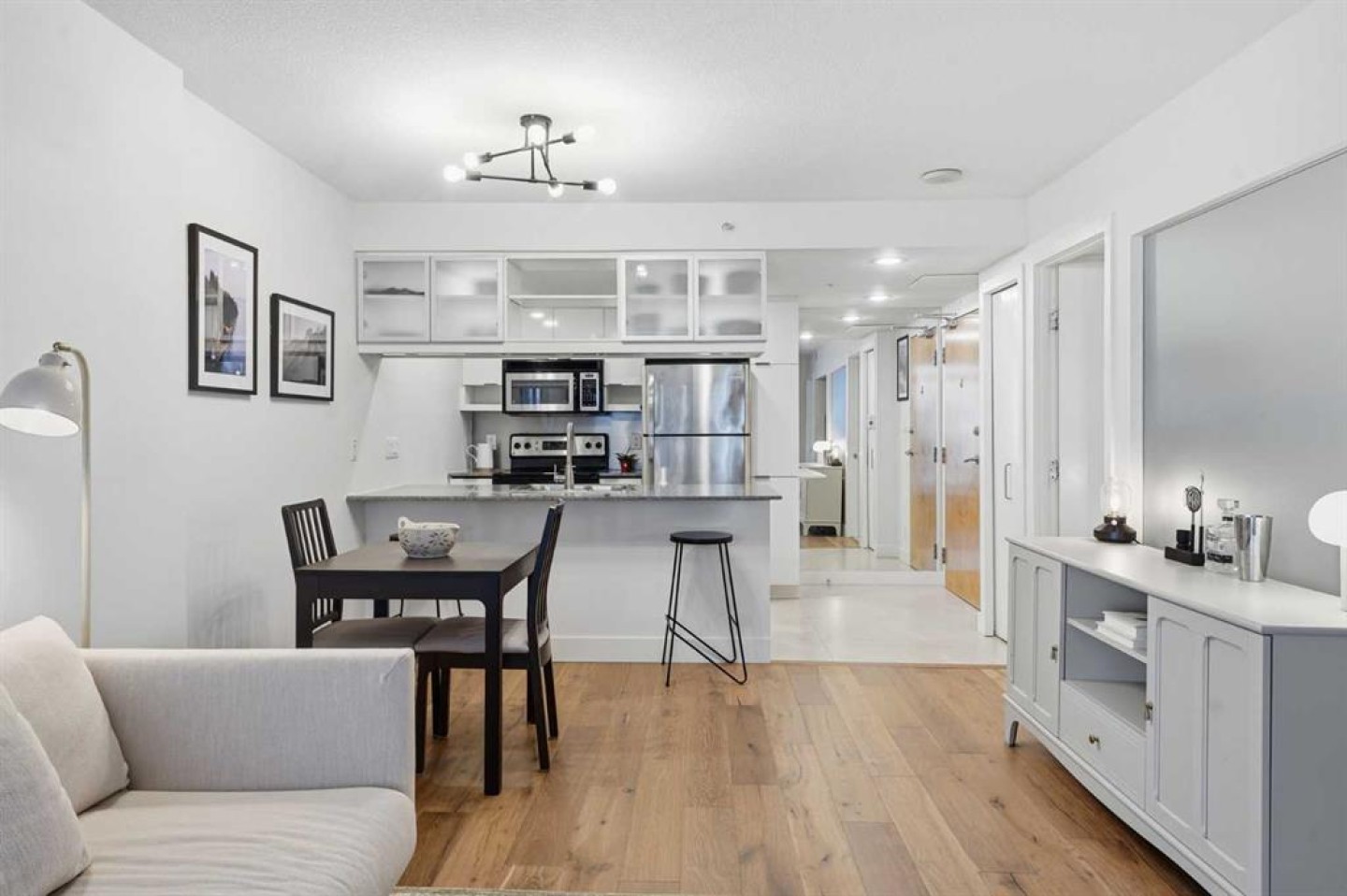 This beautiful WELL-MAINTAINED condo offers a stylish OPEN - CONCEPT layout designed for both everyday living and entertaining. The kitchen features granite countertops and an oversized eating bar that flows seamlessly into the dining nook and living area. ENGINEERED HARDWOOD flooring throughout the main living spaces adds a modern yet HOMEY finish. Step outside to your covered balcony with solid sides — a PRIVATE outdoor space you can truly enjoy year-round. Inside the bedroom, LARGE WINDOWS showcase downtown city lights, while the WALK-THROUGH CLOSET leads to the cheater ensuite. This unit includes a NEW UPGRADED BOSCH IN-SUITE washer/dryer set, AIR CONDITIONING, a UNDERGROUND TITLED PARKING STALL, and a STORAGE LOCKER located in the heated underground parkade. The building is exceptionally WELL RUN and offers a full suite of amenities, including 24-HOUR CONCIERGE ensuring security, a fully equipped GYM, party room, large BIKE STORAGE AREA, guest suites, and underground VISITOR parking. Located in one of Calgary’s most vibrant inner-city neighbourhoods, you’re surrounded by some of the city’s best restaurants, cafés, and nightlife, with trendy 17th Avenue just steps away. CO-OP is only ONE BLOCK OVER for everyday convenience and groceries, while nearby parks and the Bow River pathway system make it easy to enjoy an active, outdoor lifestyle. It also has excellent access to transit and major routes — including Bow Trail for quick escapes west to the mountains. This is a well-maintained condo in a prime inner-city location, offering lifestyle, convenience, and long-term value.