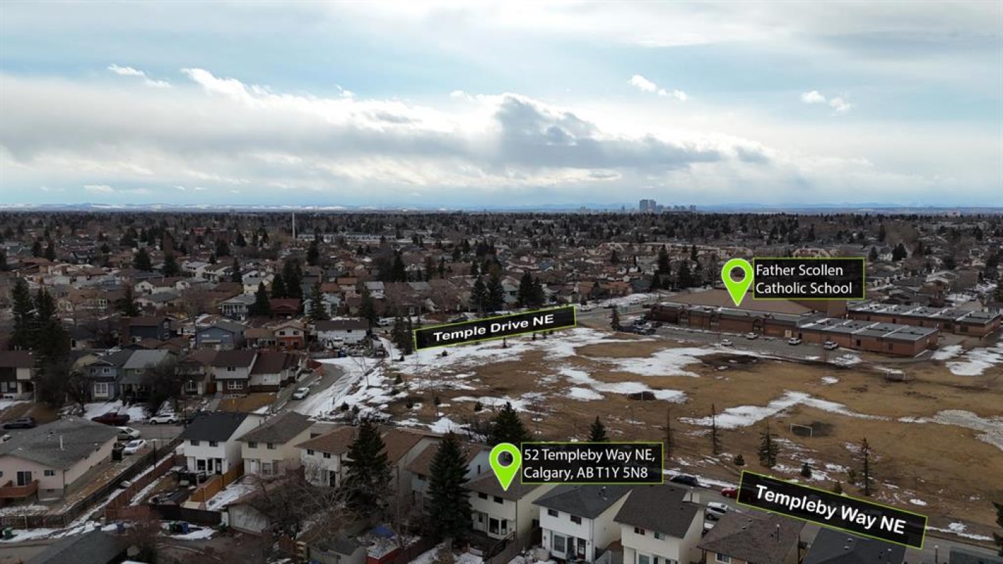 Welcome to this well-maintained and freshly painted, move-in-ready home in the established community of Temple, offering incredible value for first-time buyers, investors, or families. Central air conditioning is present (not warranted by seller), and upgraded attic insulation (R-60) helps improve year-round comfort and energy efficiency. A hot water tank replaced in 2024 adds excellent value and peace of mind. The main floor features a spacious living room filled with natural light, a functional kitchen with ample storage, and a dining area with direct access to the deck—perfect for entertaining family and friends. Upstairs, you’ll find three well-sized bedrooms, including a primary bedroom overlooking the front, along with a full 4-piece bathroom. The basement offers additional flexibility with a finished room/den, ideal for a home office, gym, or extra living space, along with additional space ready for your personal touch. Located directly across from a park and Father Scollen School, this home is perfectly situated for families. Enjoy quick access to Stoney Trail, nearby shopping, public transit, and everyday amenities. Includes appliances, window coverings, two TVs, soundbar, and additional items as outlined in Schedule A. Estate sale; property currently occupied by family members. A great opportunity to own a well-located home with solid upgrades and future potential.