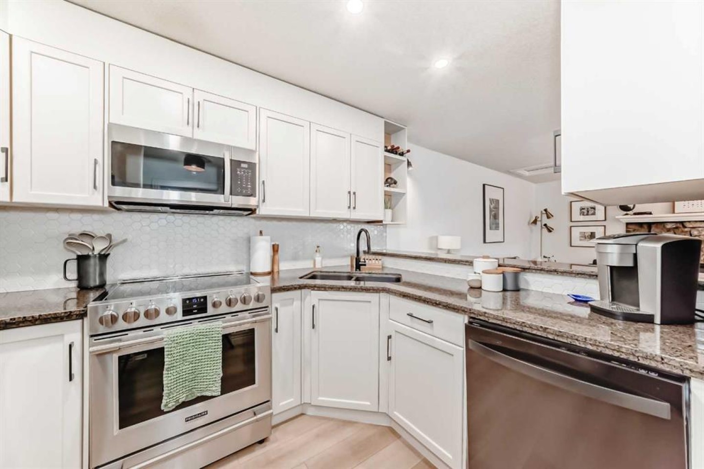 Don’t miss this beautifully upgraded 2-bedroom + bonus room, 1.5-bath, ground-level corner unit townhouse—a rare opportunity offering style, space, and exceptional value in the heart of Glamorgan. Thoughtfully updated throughout and finished in a modern, neutral palette, this home immediately stands out. The fully renovated kitchen features professionally painted Benjamin Moore cabinetry extended to the ceiling, sleek black hardware, and newer stainless steel appliances, including a Samsung over-the-range microwave, French-door refrigerator, and slide-in convection stove—creating a clean, contemporary space that’s as functional as it is inviting. New luxury vinyl plank flooring flows seamlessly throughout, complemented by hexagon tile accents, French-inspired subway tile, fresh Benjamin Moore paint, and three stunning feature walls that add warmth and personality. A cozy gas fireplace anchors the main living area, making it the perfect space to relax or entertain. Upstairs, you’ll find two generously sized bedrooms, convenient upper-level laundry hookups, and a beautifully renovated bathroom showcasing modern finishes and quality craftsmanship. Step out from the second bedroom onto your private upper deck—an ideal retreat for morning coffee or evening unwinding. Outside, the fully fenced and decked yard is designed for easy outdoor living, with room for both dining and lounging, plus a touch of green space with turf—perfect for pet owners. This unit also features one of the most desirable garages in the complex—a rare oversized 2.5-car heated garage, offering incredible flexibility for parking, storage, or even a workspace. Major exterior updates—including roof, siding, hot water tank, and patio doors—have already been completed, providing peace of mind. The well-managed complex offers a healthy reserve fund, and condo fees conveniently include water, sewer, and garbage removal. Perfectly positioned across from a quiet park, this location offers both tranquility and accessibility, with quick connections to Glenmore, Sarcee, Stoney, and Crowchild Trails. You’re just 5 minutes to Westhills Shopping Centre, close to schools, pathways, and amenities, and only 15 minutes to downtown. With proximity to North Glenmore Park and the Weaselhead Natural Area, this home offers the perfect balance of urban convenience and outdoor lifestyle. Stylish, functional, and move-in ready—this is one you don’t want to miss.