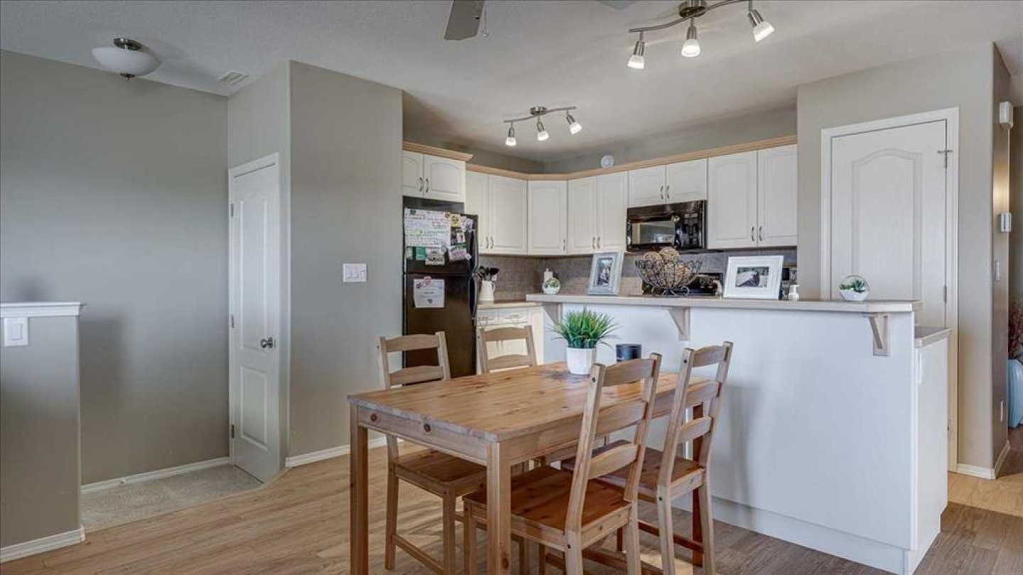 Beautifully Maintained 2-Bedroom Condo in a Quiet, Family-Friendly Community Discover low-maintenance living in this well-cared-for 937 sq. ft. corner-unit condo, offering a bright and functional layout perfect for first-time buyers, downsizers, or investors. The home features an open-concept kitchen, dining, and living area, creating an effortless flow ideal for everyday living and entertaining. Enjoy the convenience of in-suite laundry located in the utility room, along with a covered south-west-facing deck—the perfect spot to unwind and take in the evening light. This unit includes two comfortable bedrooms, a well-kept 4-piece bathroom, and one assigned parking stall. Situated in a peaceful community, you’re just steps away from a playground, outdoor skating rinks in the winter, walking paths, schools, and shopping. Everything you need is close by, making this an excellent choice for those seeking comfort, convenience, and easy living.