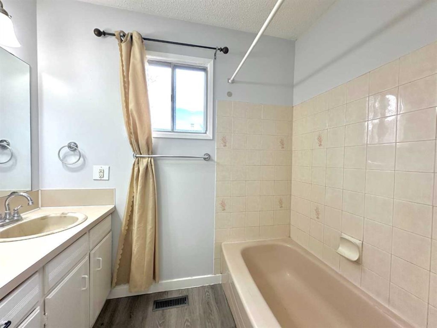 This exceptional bi-level home offers an outstanding combination of location, layout, and condition. Boasting nearly 2,000 sq. ft. of developed living space, the property features 4 bedrooms and 2 full bathrooms—an excellent opportunity for first-time buyers or investors. Ideally situated just steps from the Anderson CTrain Station, Southcentre Mall, schools, parks, playgrounds, and a full range of amenities, this home provides unmatched convenience for everyday living. The main floor is bright and inviting, showcasing an open-concept layout with durable vinyl and laminate flooring throughout. The spacious living room is filled with natural light from a large picture window, creating a warm and welcoming atmosphere. The well-appointed kitchen features abundant white cabinetry, ample counter space, and a stainless steel refrigerator, seamlessly connecting to a generous dining area. Patio doors lead to a large deck—perfect for relaxing or entertaining family and friends. This level also includes two well-sized bedrooms and a full 4-piece bathroom. The fully finished basement expands the living space with a substantial family room ideal for entertaining, two additional bedrooms, a full bathroom, a large storage area, and space with potential for a future kitchenette.