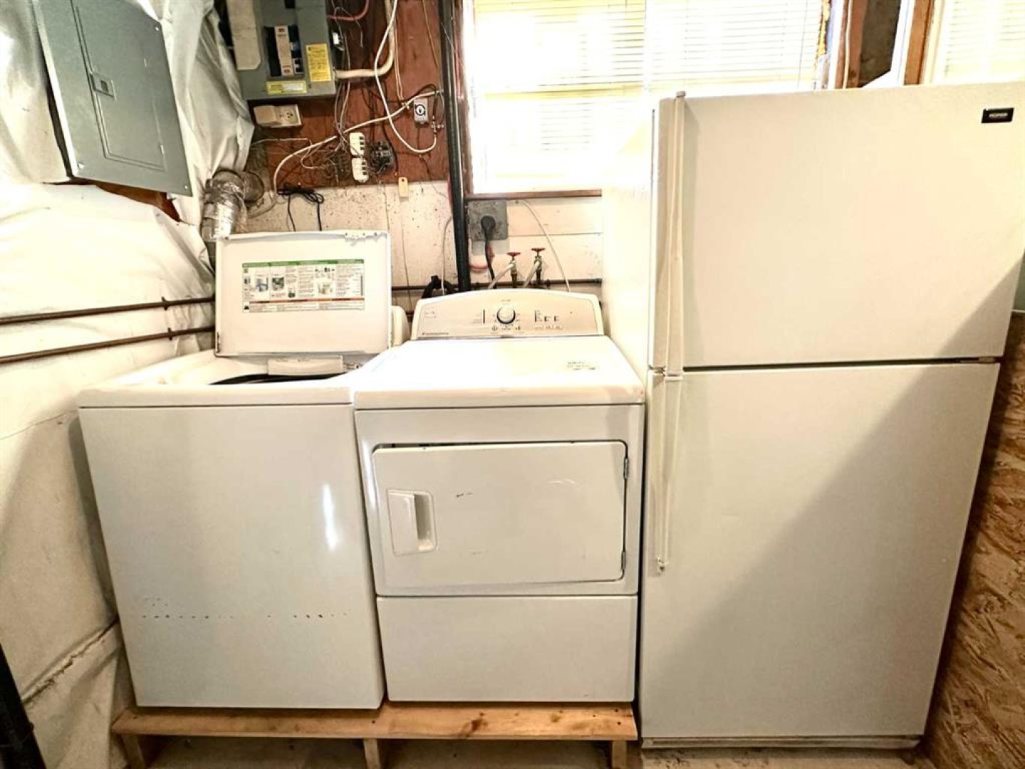 Dishwasher, Dryer, Electric Stove, Range Hood, Refrigerator, Washer