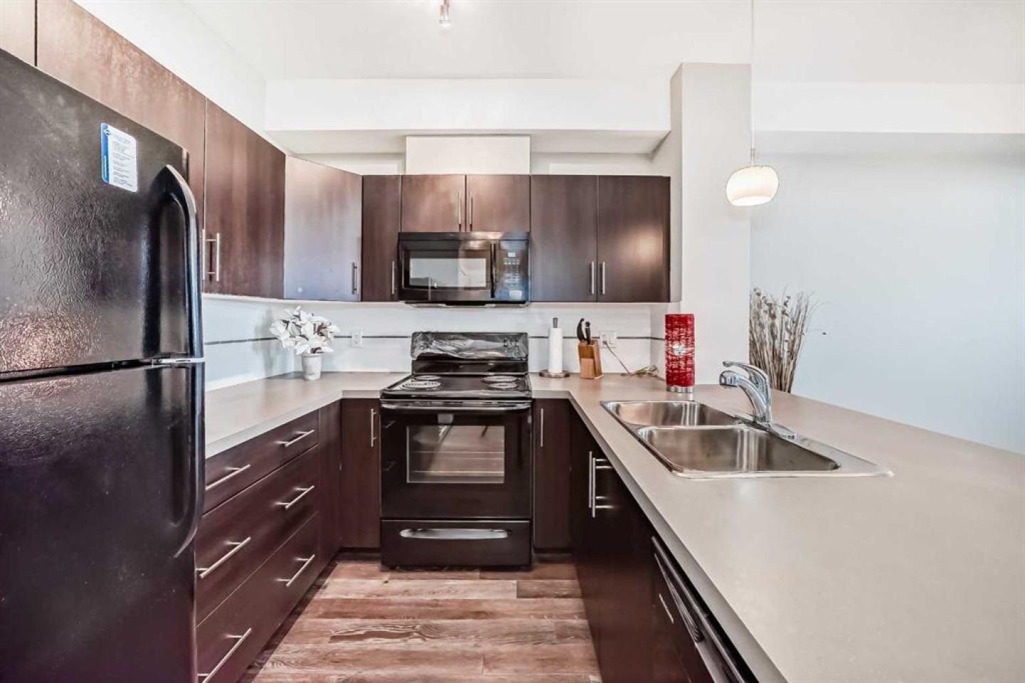 Welcome to Unit 405 at 2300 Evanston Square NW - a bright and beautifully maintained top-floor 1-bedroom, 1-bathroom condo offering stylish, low-maintenance living in the heart of Evanston. This well-designed home features an open-concept layout that seamlessly connects the kitchen, dining, and living areas, creating an inviting space that feels both functional and spacious. The kitchen is finished with rich dark cabinetry, ample counter space, a raised eating bar, and plenty of storage, making it ideal for everyday living or entertaining. The living and dining area is filled with natural light and extends to a private balcony with elevated community views, offering a great spot to relax and unwind. The bedroom is generously sized and features large windows and direct access to a spacious walk-in closet. The full bathroom is well appointed with a large mirror, vanity storage, and a clean, modern finish. Additional highlights include in-unit laundry, a built-in desk/workstation area that is perfect for working from home or a study nook, secure building access, elevator service, underground parking, and a separate storage locker. The overall feel of the home is clean, comfortable, and move-in ready, with a smart layout that makes excellent use of the space. Located in the highly desirable community of Evanston, this home offers excellent everyday convenience. Evanston Towne Centre is nearby and is anchored by FreshCo and Shoppers Drug Mart, with additional services including RBC, Sobeys Liquor, Pet Valu, and other shops and professional services. Creekside also offers grocery, pharmacy, and gas services through Calgary Co-op, adding even more convenience close to home. The area is well served by local schools, including Kenneth D. Taylor School and Our Lady of Grace School, and buyers will appreciate access to parks, playgrounds, sidewalks, and Calgary’s extensive pathway network. Overall, this is an excellent opportunity for first-time buyers, downsizers, or investors looking for a well-kept condo in a convenient NW location.