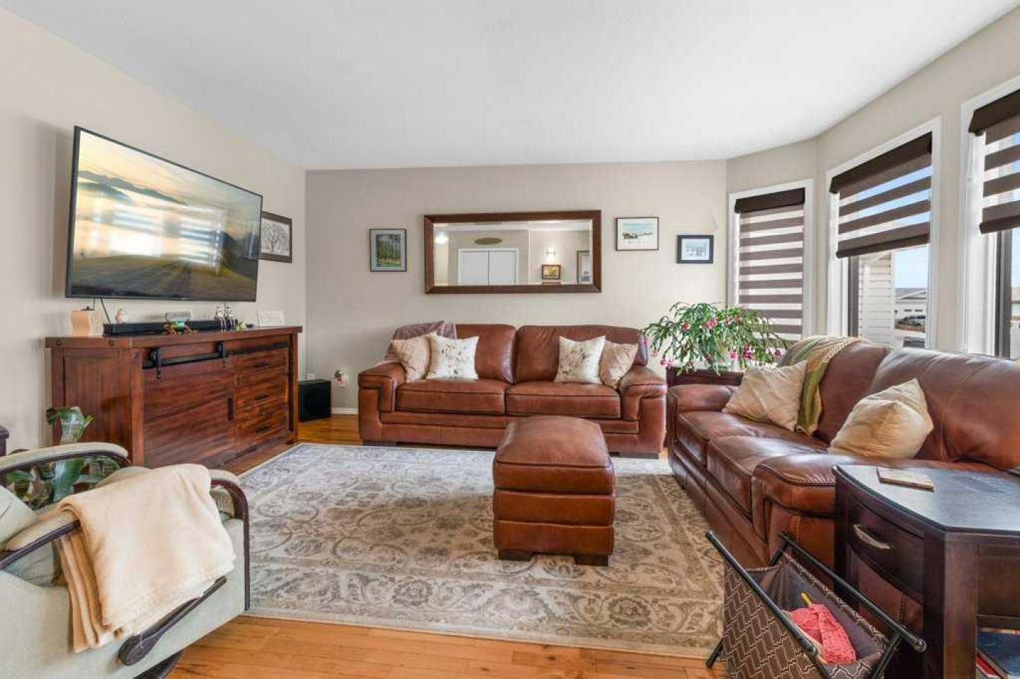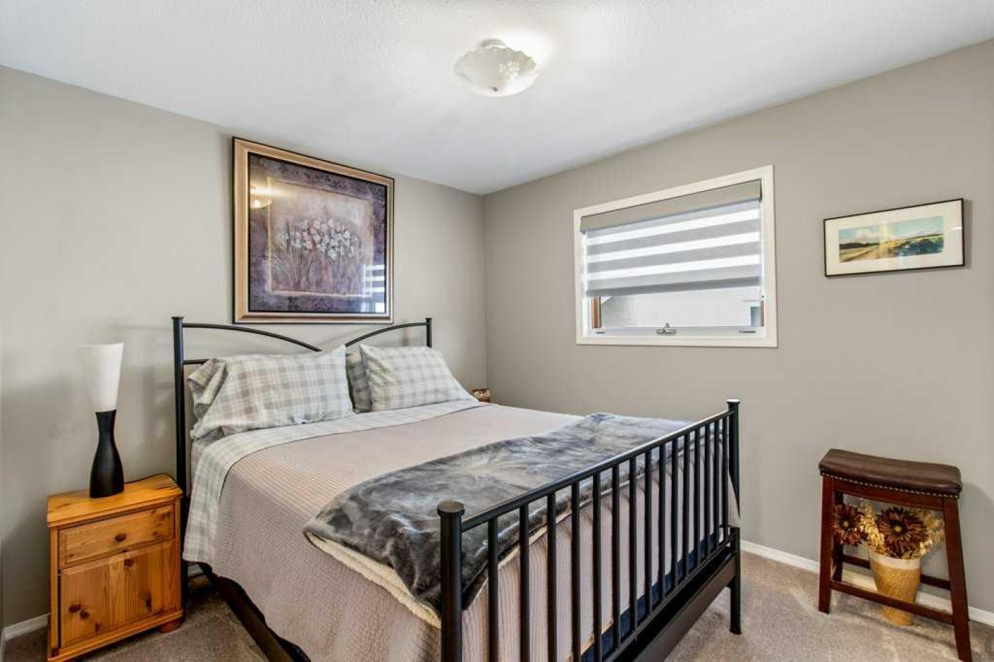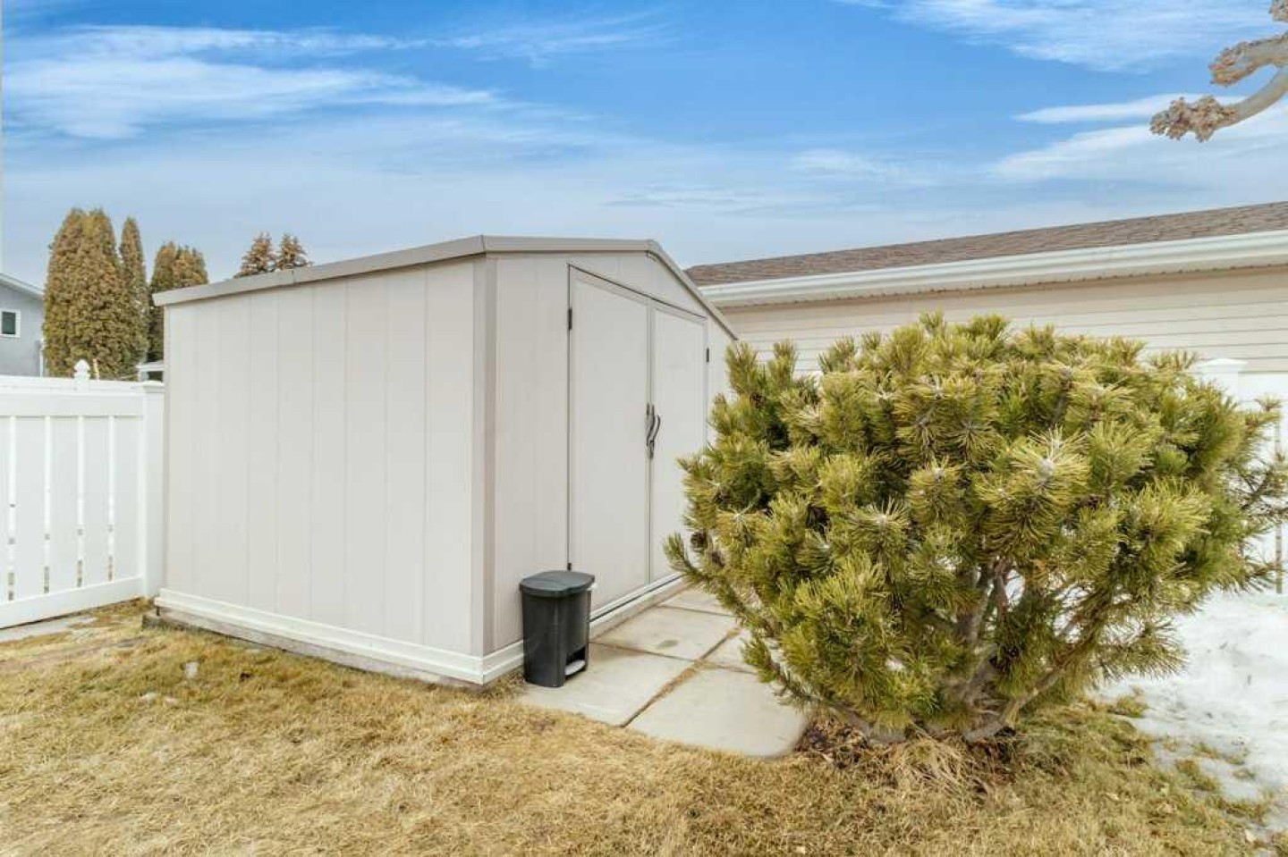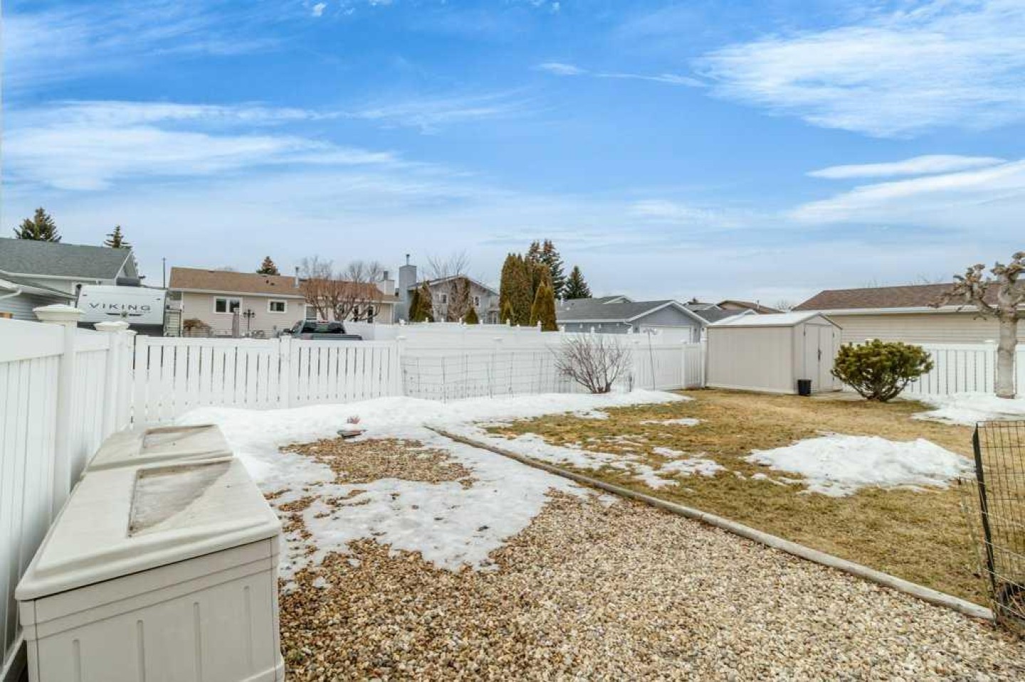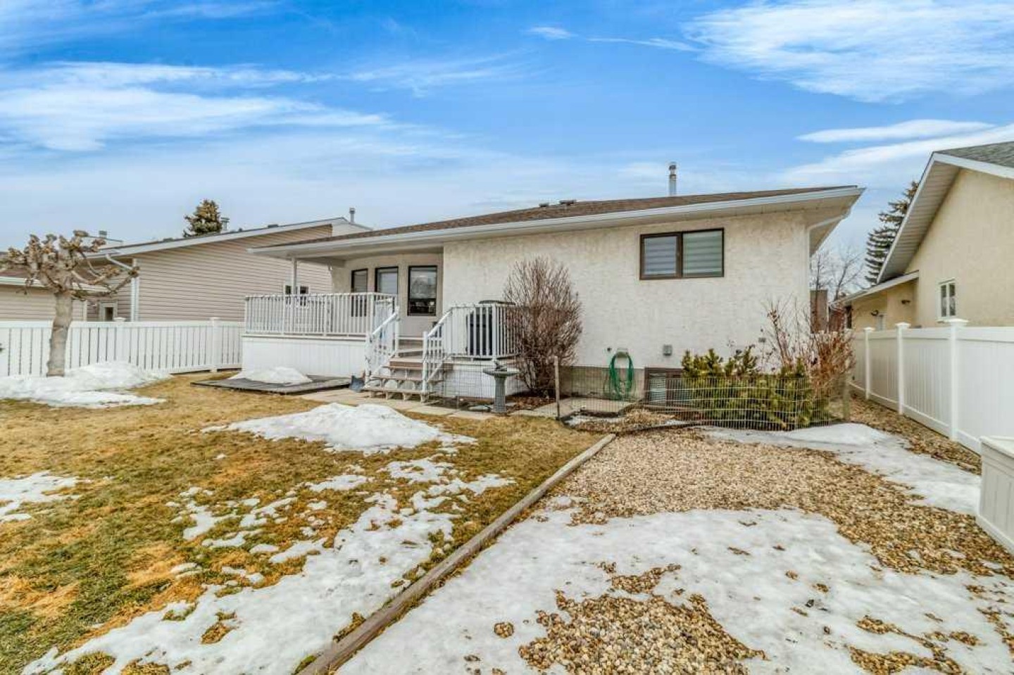 Well-maintained bungalow on a quiet street in Eastview Estates, close to the park and offering a clean, functional layout with plenty of updates throughout. The home has been newly painted and features hardwood flooring, carpet and linoleum on the main level. The kitchen includes a large island, TV desk, pot drawers, sliders in the pantry, quartz countertops, new appliances, and custom blinds. The bathroom includes a 6’ jet tub, while the primary bedroom offers a 3-piece ensuite and a large walk-in closet. Enjoy the convenient main floor laundry. The fully finished basement is bright and inviting with four extra-large windows, a family room with a gas fireplace, another bedroom and full bath. Enjoy the radiant heated double attached garage, which also features lots of shelving, making it an excellent year-round workspace. Additional upgrades include a new furnace installed in 2025, hot water tank and A/C in 2023. Outside, you’ll find a landscaped yard with garden beds and perennials complete with vinyl fencing, underground sprinklers (front yard), a large covered deck, and a big graveled RV pad for extra parking. This is a solid, move-in ready home in a great location with thoughtful upgrades inside and out.