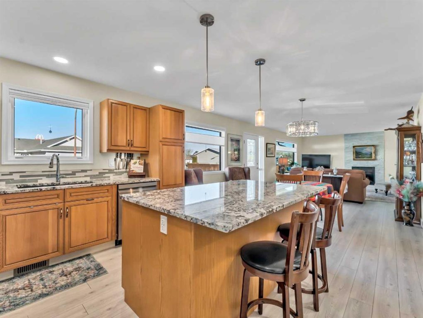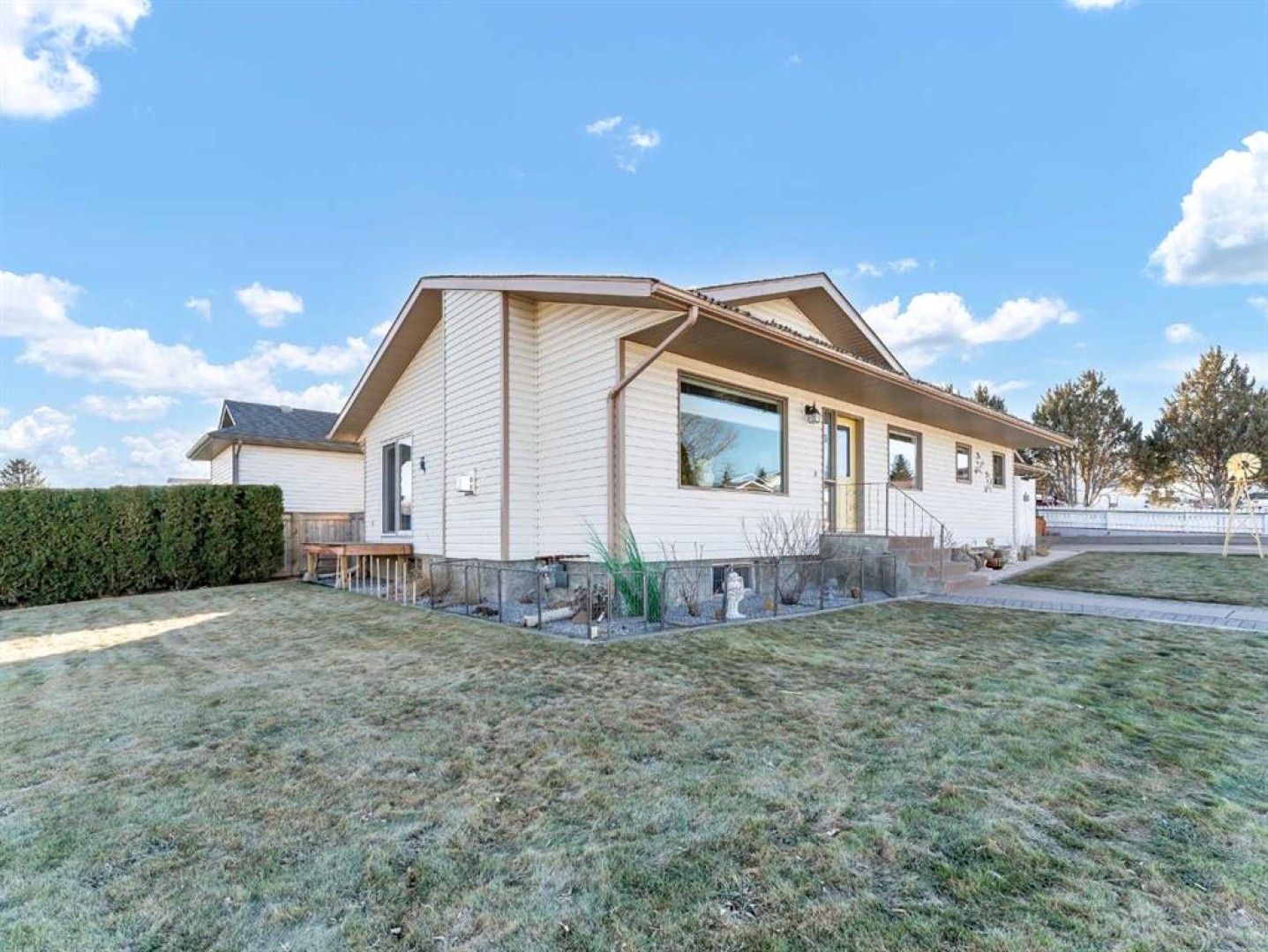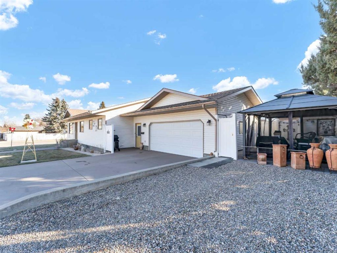 Spacious and beautifully updated bungalow situated on a lovely corner lot in desirable Ross Glen! Offering 1,461 square feet, this home is ideal for those looking to downsize with the convenience of one-level living, while the unfinished basement provides a blank slate with excellent potential for future development. Numerous updates have been completed throughout, including kitchen appliances, cabinetry, granite countertops, flooring, and tasteful modern light fixtures. The open-concept living room, dining area, and kitchen create a welcoming space for everyday living and entertaining, all centered around a cozy gas fireplace. The kitchen features a functional island that adds extra seating and storage. The main floor includes two generously sized bedrooms, including a spacious primary retreat featuring a gorgeous walk-in closet, a 4-piece ensuite with double vanity and walk-in shower, and direct access to a charming private deck—perfect for enjoying your morning coffee. The second bedroom is conveniently located near the 3-piece main bathroom, which features cheater access for added functionality. The main floor laundry room includes a laundry sink and is located just off the garage entry. The furnace was replaced in February 2022, and underground sprinklers are also included. The insulated, boarded, and heated double attached garage offers space for two vehicles plus an alcove ideal for a workshop or additional storage. This well-maintained home is conveniently located close to shopping, restaurants, parks, and walking paths—an excellent opportunity in a fantastic neighbourhood.