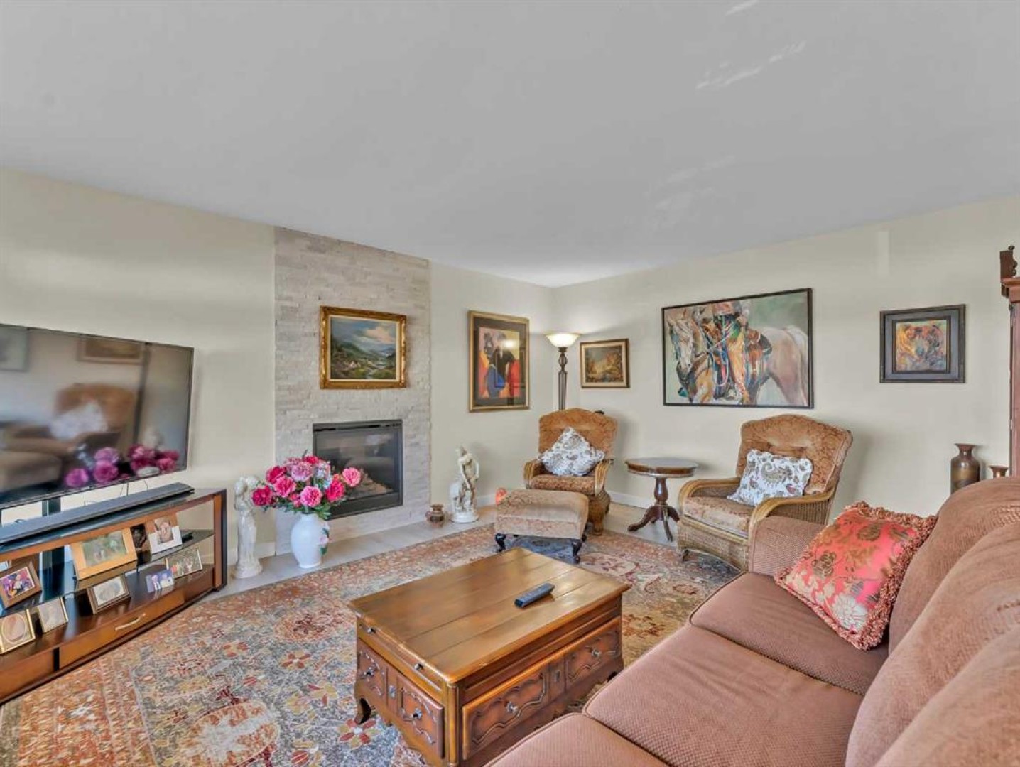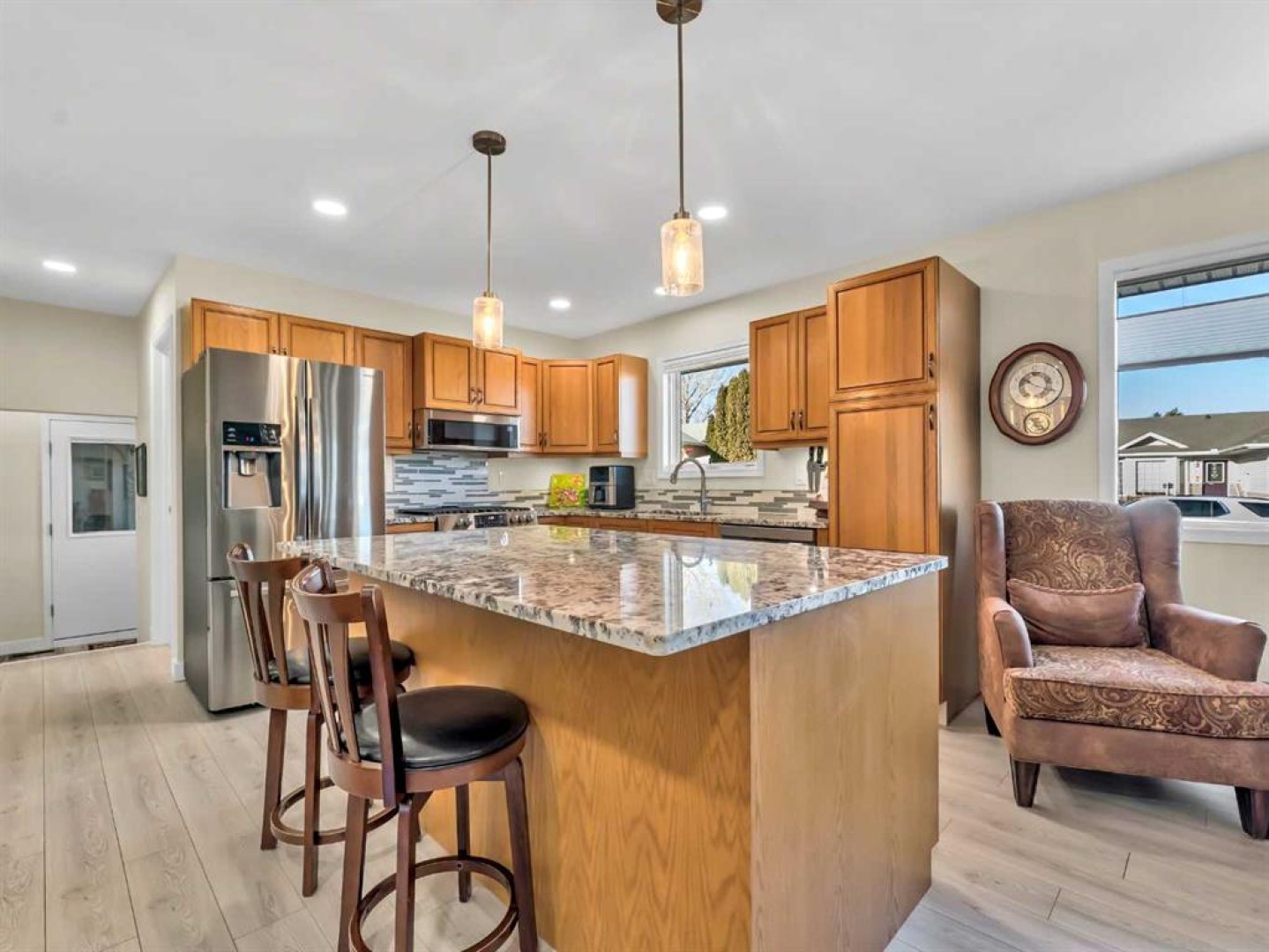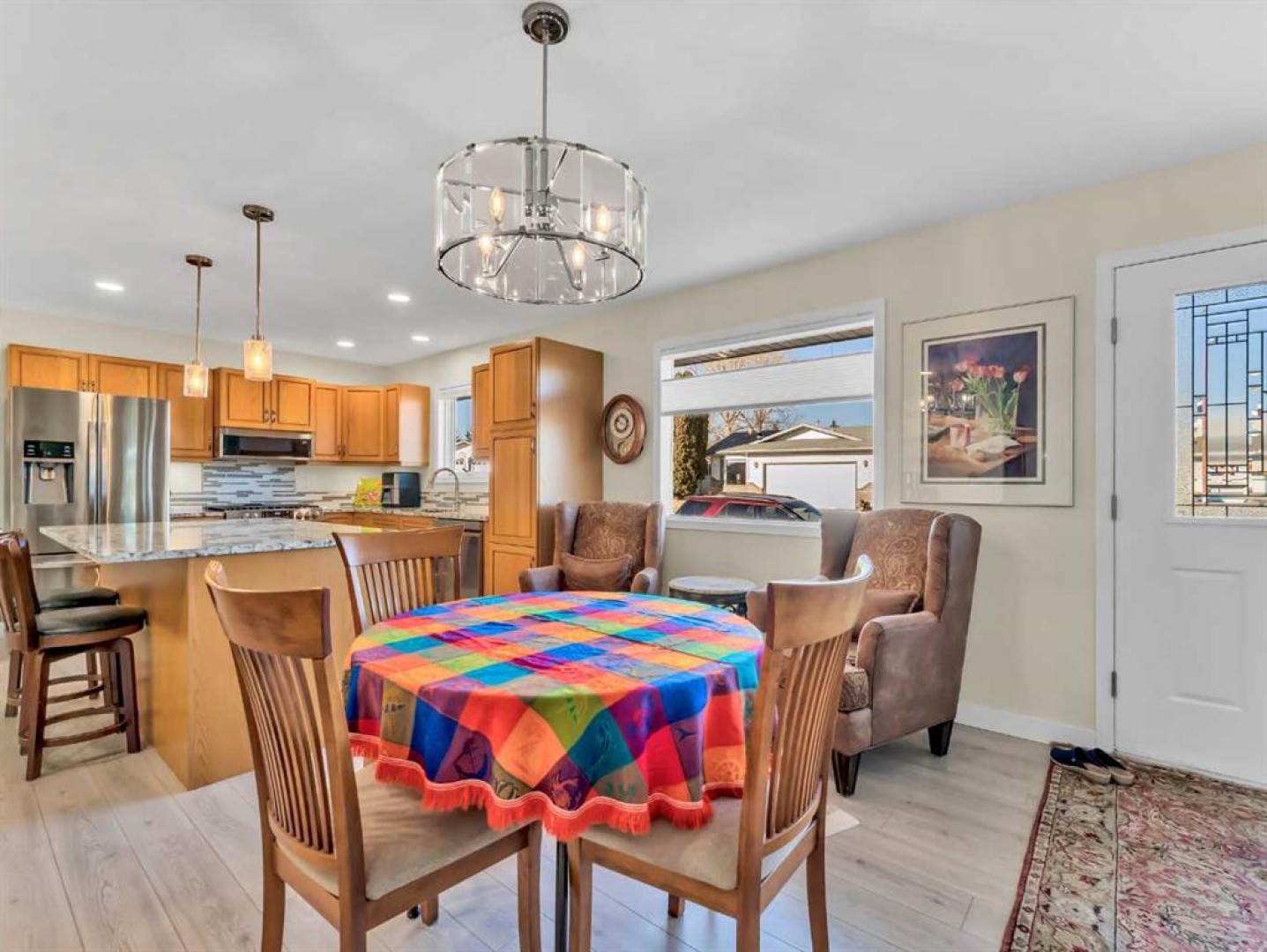 Spacious and beautifully updated bungalow situated on a lovely corner lot in desirable Ross Glen! Offering 1,461 square feet, this home is ideal for those looking to downsize with the convenience of one-level living, while the unfinished basement provides a blank slate with excellent potential for future development. Numerous updates have been completed throughout, including kitchen appliances, cabinetry, granite countertops, flooring, and tasteful modern light fixtures. The open-concept living room, dining area, and kitchen create a welcoming space for everyday living and entertaining, all centered around a cozy gas fireplace. The kitchen features a functional island that adds extra seating and storage. The main floor includes two generously sized bedrooms, including a spacious primary retreat featuring a gorgeous walk-in closet, a 4-piece ensuite with double vanity and walk-in shower, and direct access to a charming private deck—perfect for enjoying your morning coffee. The second bedroom is conveniently located near the 3-piece main bathroom, which features cheater access for added functionality. The main floor laundry room includes a laundry sink and is located just off the garage entry. The furnace was replaced in February 2022, and underground sprinklers are also included. The insulated, boarded, and heated double attached garage offers space for two vehicles plus an alcove ideal for a workshop or additional storage. This well-maintained home is conveniently located close to shopping, restaurants, parks, and walking paths—an excellent opportunity in a fantastic neighbourhood.