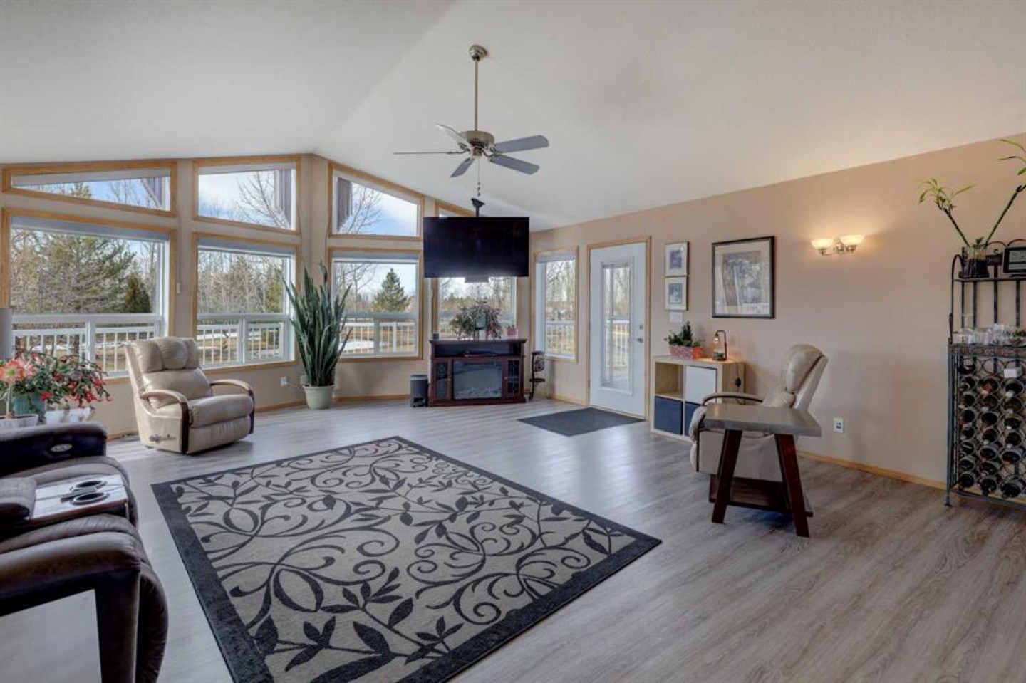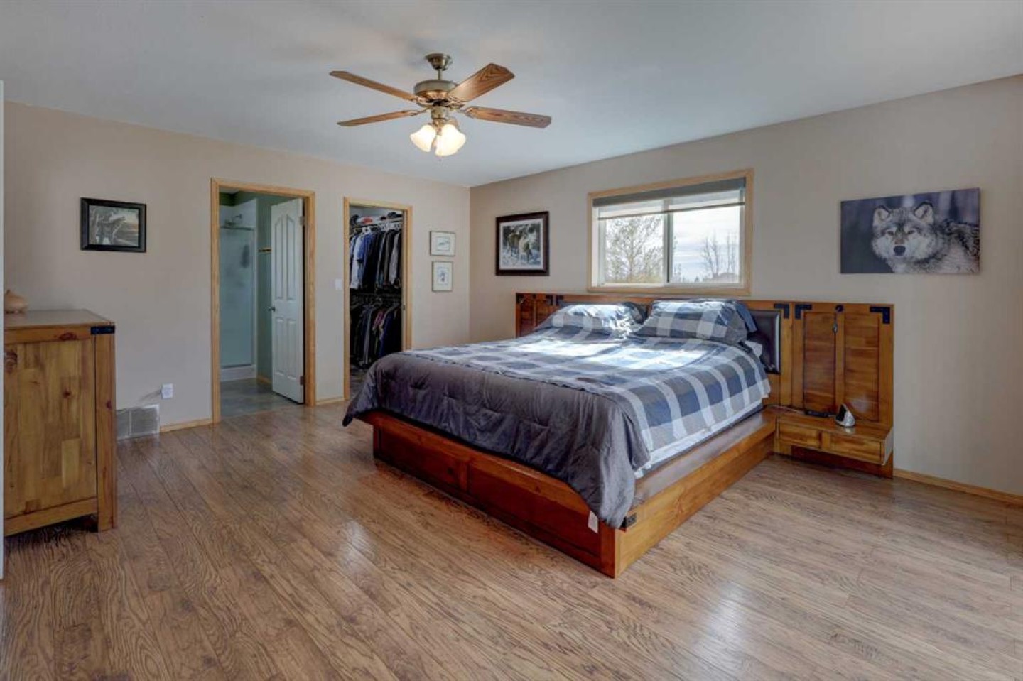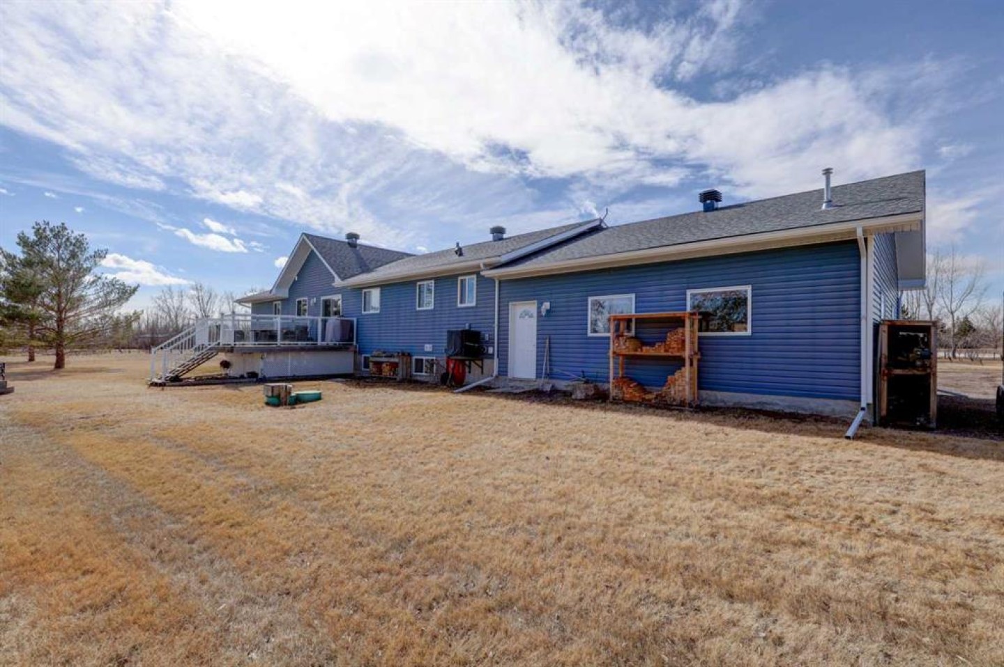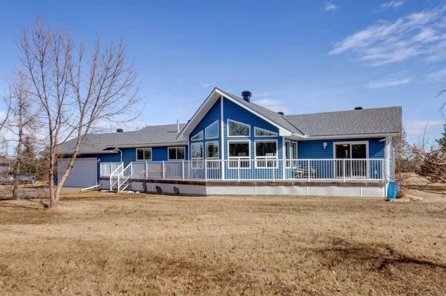 This may be the acreage lifestyle you’ve been searching for! Situated on 4 fully fenced acres surrounded by mature trees and open prairie skies, this property offers tranquility, privacy, and a touch of luxury—all within 25 minutes of downtown Calgary. As you arrive through the secured gated entrance, a paved driveway and recycled asphalt parking welcome you home, leading to not one but two heated double garages. Step onto the expansive front deck, and you’ll instantly picture quiet mornings with coffee, peaceful afternoons reading in the fresh country air, or evenings entertaining guests as the sun sets over wide-open skies. Inside, nearly 4,000 sq. ft. of air-conditioned living space blends warmth and functionality. The central kitchen, with its 3-sided island, is the heart of the home—perfectly positioned between the dining area and the sunlit living room. The primary bedroom is a relaxing retreat with a walk-in closet, 3-piece ensuite, and private patio-door access to the 64-foot front deck. Two additional bedrooms, a den, main-floor laundry, and a 4-piece bath complete the thoughtful main level, along with interior access to the oversized attached garage. The fully finished lower level with heated floors is a welcoming extension of the home, featuring two more bedrooms, a full 3-piece bath, a cozy rec room, wet bar, and cold room. The closed-loop glycol heat exchanger system ensures consistent comfort all winter long. A second heated 25' x 25' detached garage offers extra space for projects, vehicles, or hobbies. Recent upgrades provide peace of mind, including new shingles, soft metals, vents, and siding (2025), furnace and A/C (2023), 75-gallon hot water tank (2022), septic tank (2023), and vinyl plank flooring on the main floor. You’ll also benefit from a radon mitigation system and an extensive water filtration and discharge system. Whether you’re seeking room to grow, space to breathe, or the ideal balance between rural calm and city convenience, this property delivers it all. Nestled in the family-friendly Prairie Royale community, you’ll enjoy open green spaces, a central park, and a close-knit country neighborhood just 10 minutes from CrossIron Mills. Experience the peace of country living without compromise—welcome home to your private 4-acre retreat. Book your private showing today.