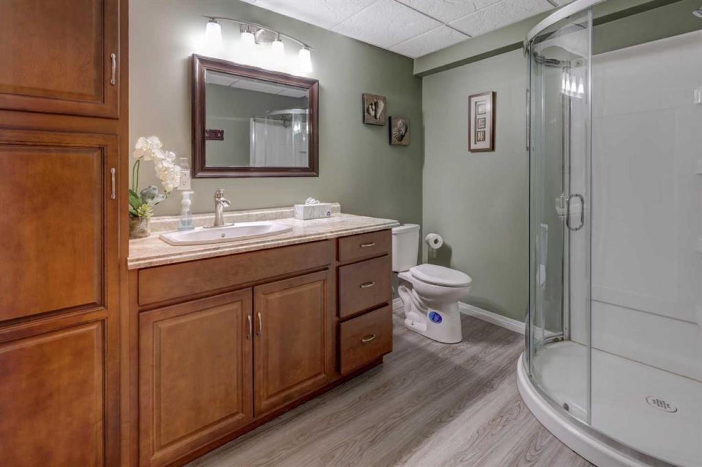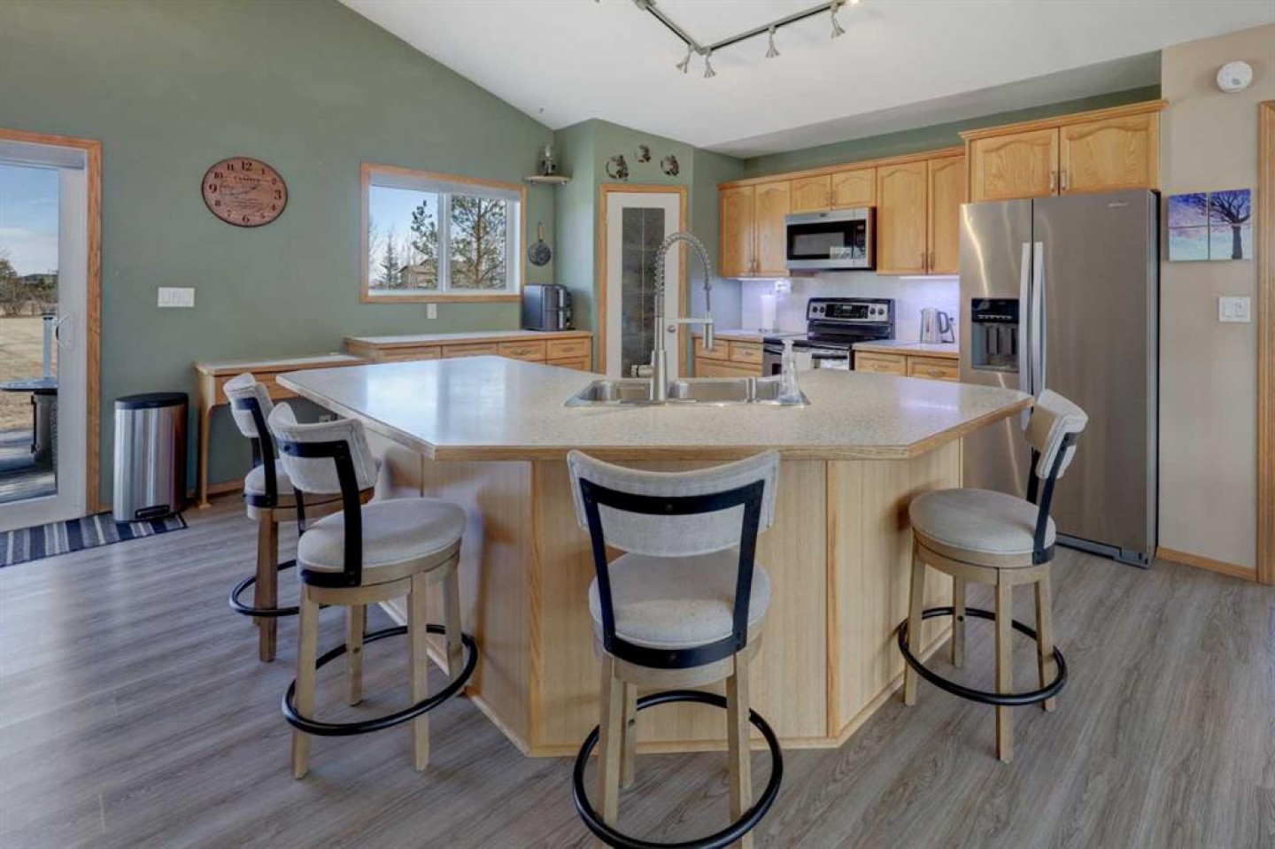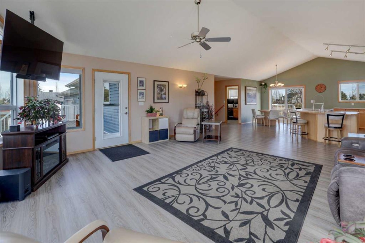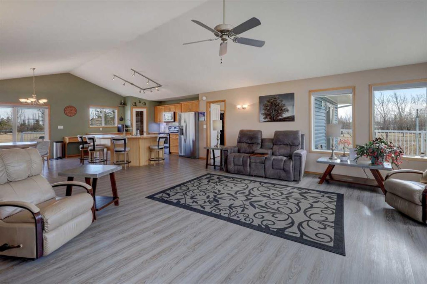 This may be the acreage lifestyle you’ve been searching for! Situated on 4 fully fenced acres surrounded by mature trees and open prairie skies, this property offers tranquility, privacy, and a touch of luxury—all within 25 minutes of downtown Calgary. As you arrive through the secured gated entrance, a paved driveway and recycled asphalt parking welcome you home, leading to not one but two heated double garages. Step onto the expansive front deck, and you’ll instantly picture quiet mornings with coffee, peaceful afternoons reading in the fresh country air, or evenings entertaining guests as the sun sets over wide-open skies. Inside, nearly 4,000 sq. ft. of air-conditioned living space blends warmth and functionality. The central kitchen, with its 3-sided island, is the heart of the home—perfectly positioned between the dining area and the sunlit living room. The primary bedroom is a relaxing retreat with a walk-in closet, 3-piece ensuite, and private patio-door access to the 64-foot front deck. Two additional bedrooms, a den, main-floor laundry, and a 4-piece bath complete the thoughtful main level, along with interior access to the oversized attached garage. The fully finished lower level with heated floors is a welcoming extension of the home, featuring two more bedrooms, a full 3-piece bath, a cozy rec room, wet bar, and cold room. The closed-loop glycol heat exchanger system ensures consistent comfort all winter long. A second heated 25' x 25' detached garage offers extra space for projects, vehicles, or hobbies. Recent upgrades provide peace of mind, including new shingles, soft metals, vents, and siding (2025), furnace and A/C (2023), 75-gallon hot water tank (2022), septic tank (2023), and vinyl plank flooring on the main floor. You’ll also benefit from a radon mitigation system and an extensive water filtration and discharge system. Whether you’re seeking room to grow, space to breathe, or the ideal balance between rural calm and city convenience, this property delivers it all. Nestled in the family-friendly Prairie Royale community, you’ll enjoy open green spaces, a central park, and a close-knit country neighborhood just 10 minutes from CrossIron Mills. Experience the peace of country living without compromise—welcome home to your private 4-acre retreat. Book your private showing today.
