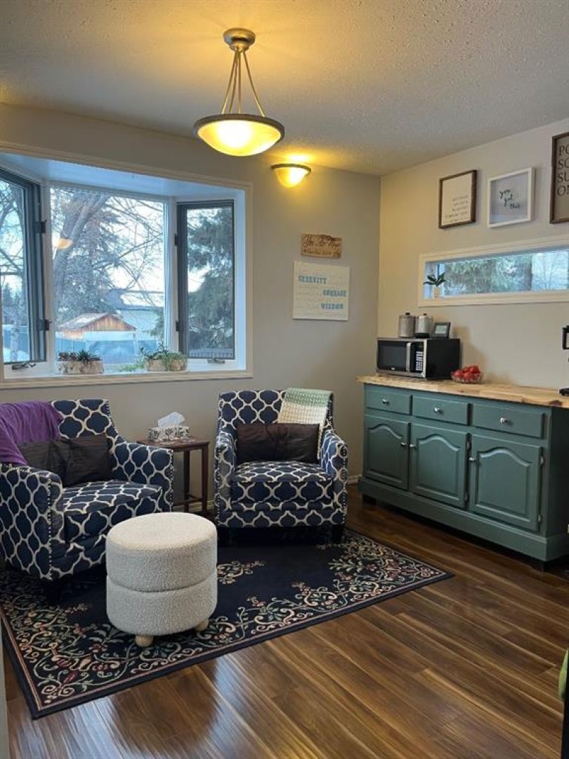 Beautiful 75th Avenue is offering this storey and a half 1632 sq ft home with lots of character and an amazing very large lot! There is the driveway in front of the garage and another circle driveway. Lots of room for an RV or cars for the children to all park off the street. The massive yard is like having a small acreage in town. You could have a large garden & greenhouse with lots of yard for children to have play center and more yard space to play. Inside this beautiful home the main living space is open concept, with sunken living room for relaxing or entertaining. There is the large dining area & kitchen with stainless appliances, just off the kitchen is a inviting sitting room with a door to the back deck for BBQ season, or easy access to the back yard. The main floor also offers a laundry room, access to garage and 2 piece bathroom. The top floor offers primary bedroom with 3 piece ensuite, also main bathroom, 2 other bedrooms. Another amazing feature is the open area that over looks the entry and living area below. The basement is finished also, lots of storage, family room area that could be a large bedroom, there is a window(not egress window) & bathroom with a shower too. There are 2 updated furnaces, one for main floor and basement, the other for top floor and AC for top floor. Also the shingles are newer. Call to have a look!