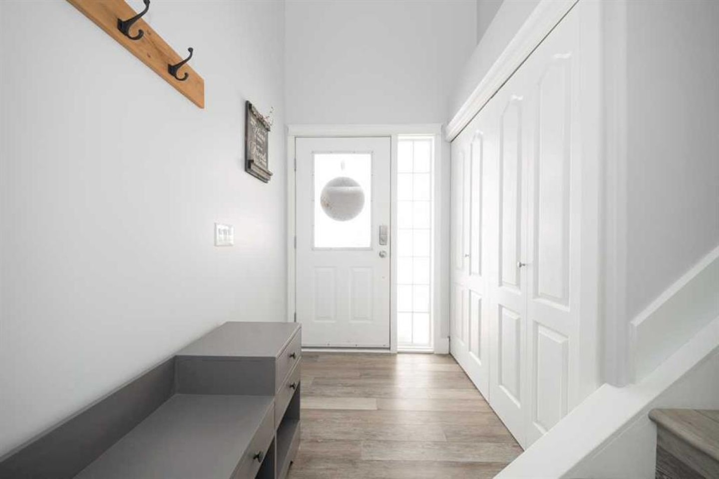 Built-in Features, Closet Organizers, High Ceilings, Kitchen Island, Open Floorplan, Quartz Counters, Recessed Lighting, Storage, Sump Pump(s), Track Lighting, Vaulted Ceiling(s), Vinyl Windows, Wood Counters