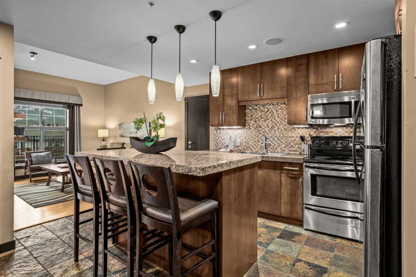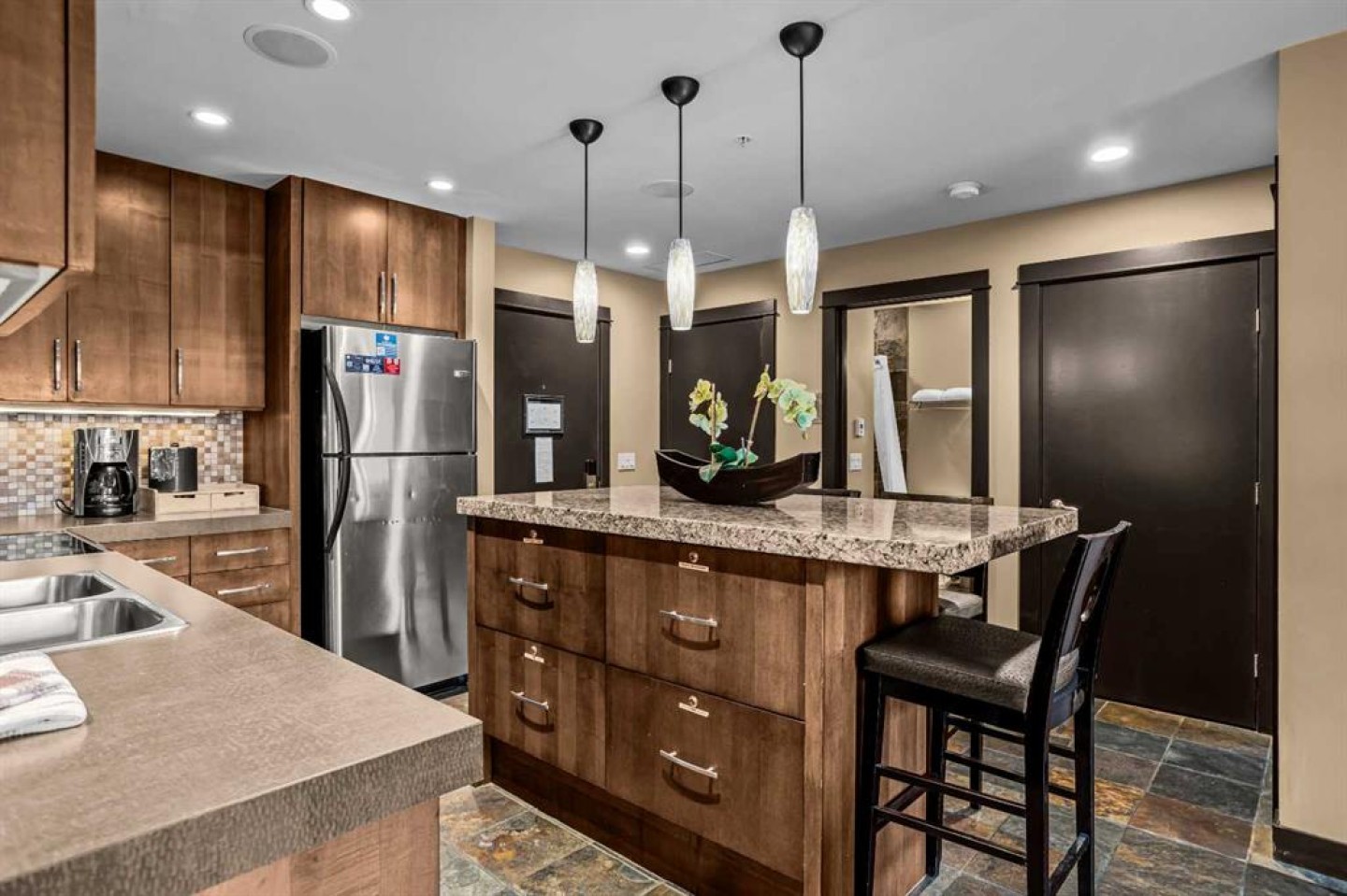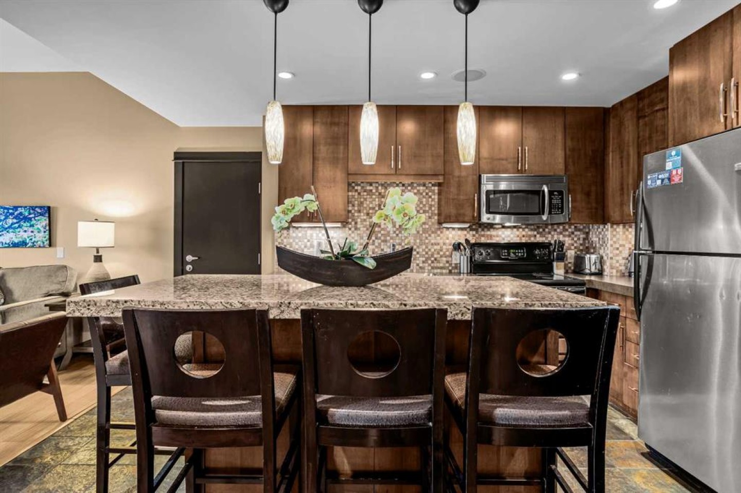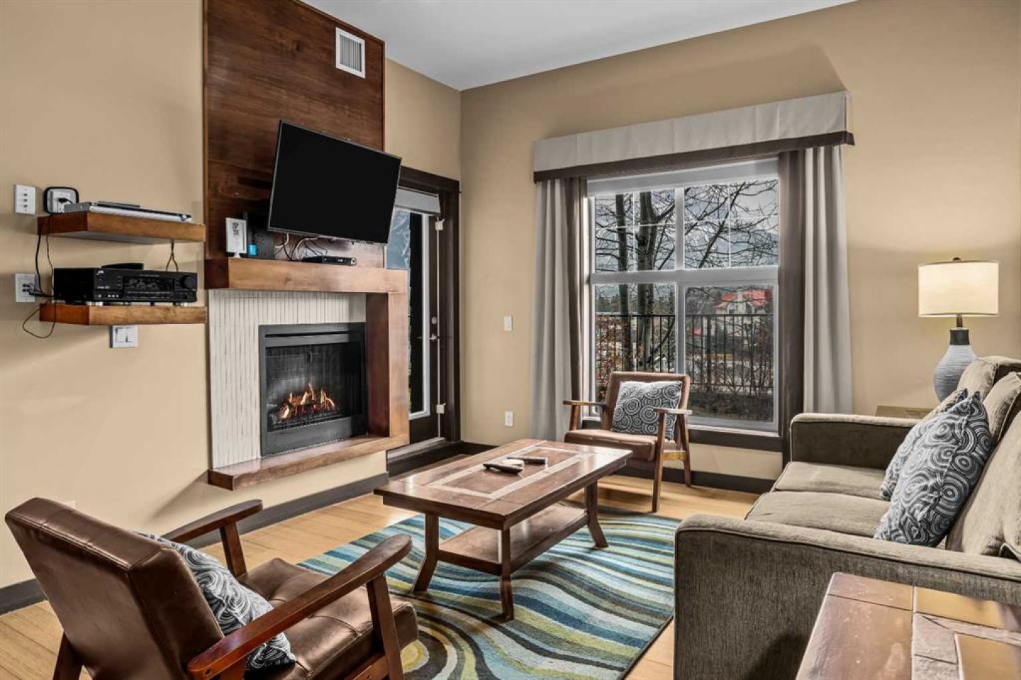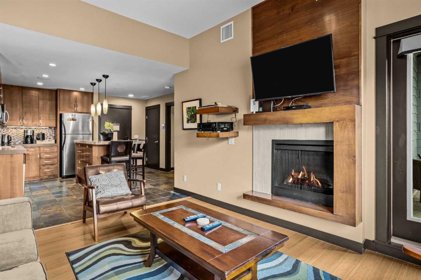106 Rotation D -1818 Mountain Ave | Silver Creek Lodge. 12 weeks per year Your Canmore Ownership at a Fraction of the Price. Well-positioned in Silver Creek Lodge, this 2-bedroom lock-off unit offers flexibility, functionality, and one of the most sought-after features in the building—ground floor access with pet-friendly convenience. This layout is ideal for both personal use and revenue generation, with a self-contained lock-off configuration that allows for separate rental of each side. Inside, the unit features a warm and inviting mountain aesthetic with stone countertops, stainless steel appliances, and a cozy fireplace, creating a comfortable space for guests and owners alike. What truly sets this unit apart is its direct walk-out to green space, providing easy outdoor access for pets and eliminating the need for elevators or common hallways—an increasingly desirable feature for both short-term guests and long-term stays. Silver Creek Lodge amenities include a fitness area, steam room, and outdoor hot tub, enhancing the overall guest experience and supporting strong rental appeal. Ground floor, lock-off, pet-friendly units are among the most desirable and limited opportunities in the building—making this a smart choice for investors and lifestyle buyers alike.