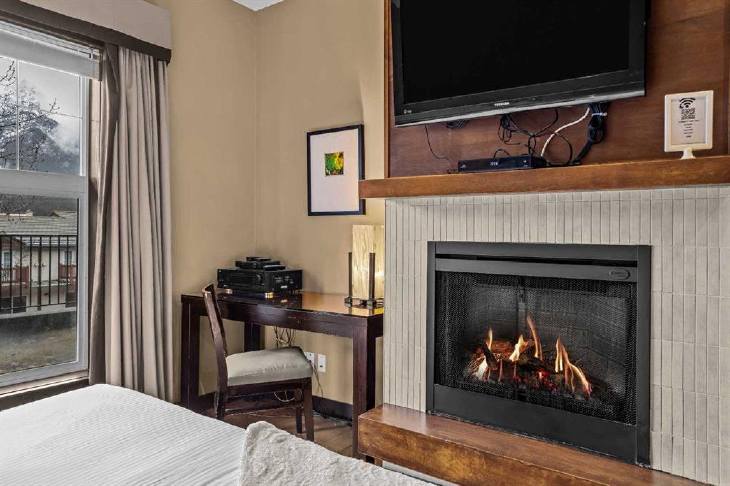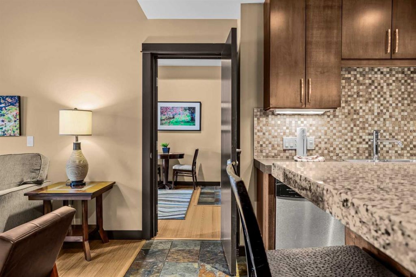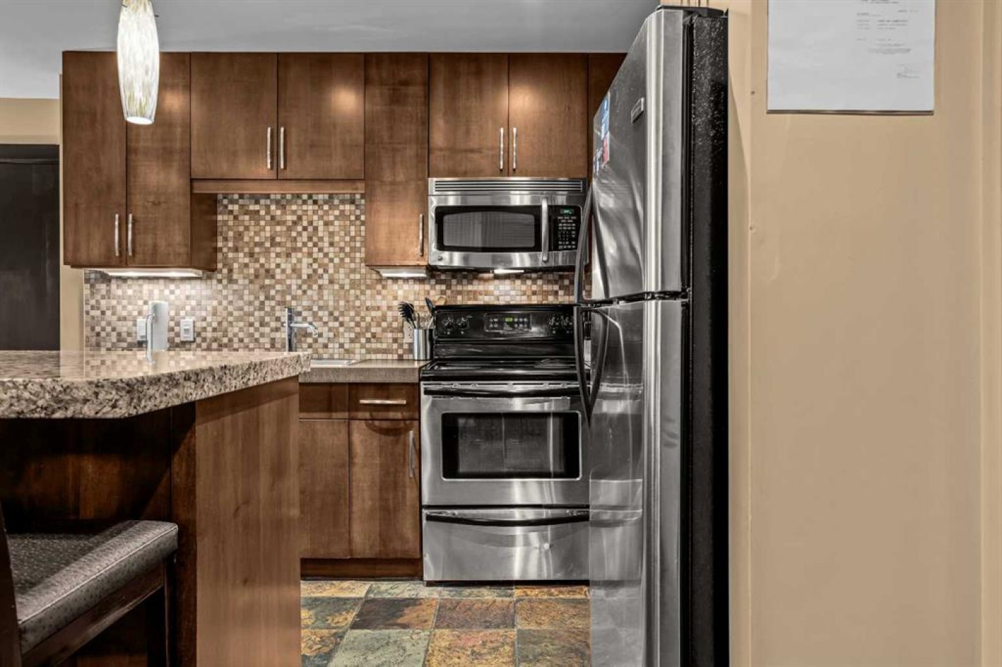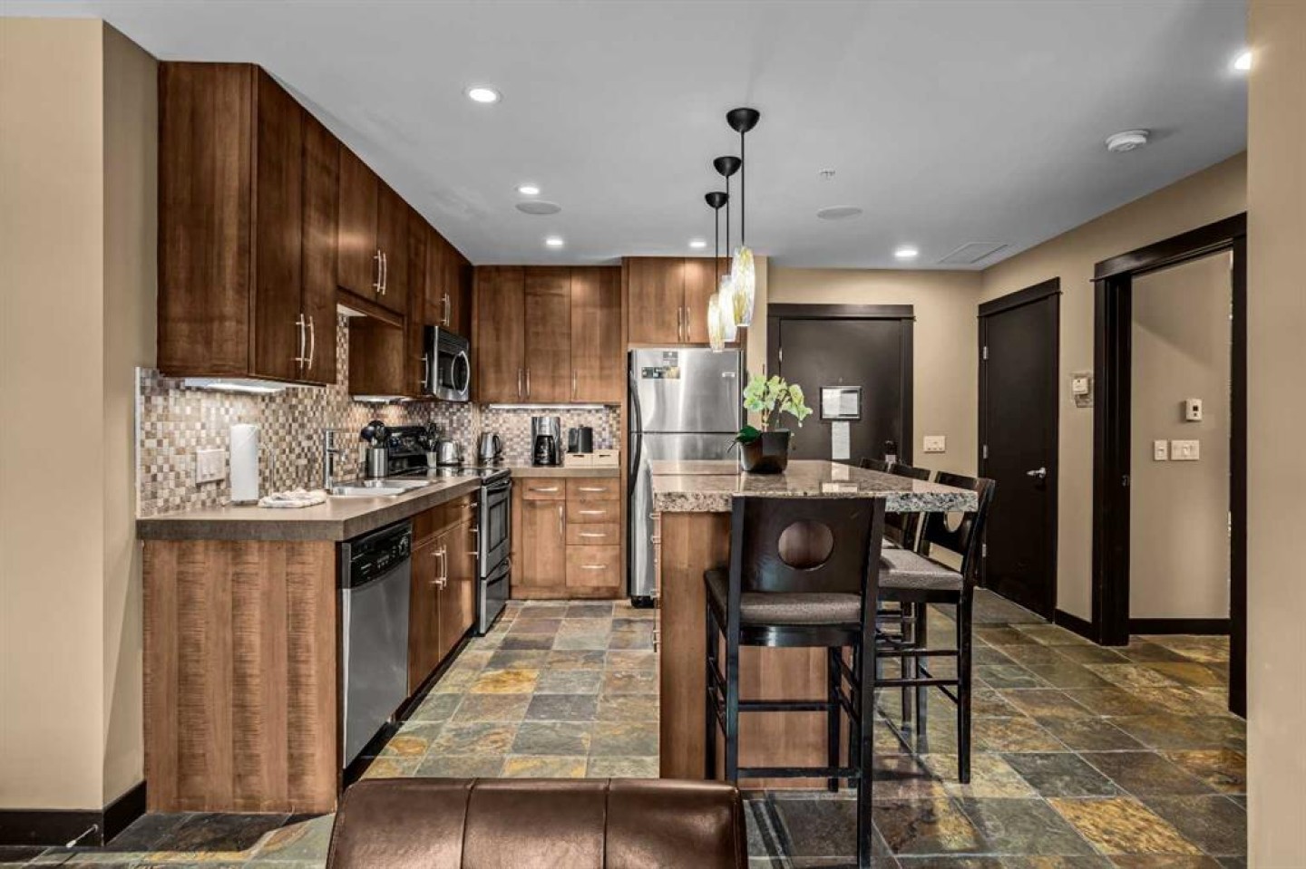 106 Rotation D -1818 Mountain Ave | Silver Creek Lodge. 12 weeks per year Your Canmore Ownership at a Fraction of the Price. Well-positioned in Silver Creek Lodge, this 2-bedroom lock-off unit offers flexibility, functionality, and one of the most sought-after features in the building—ground floor access with pet-friendly convenience. This layout is ideal for both personal use and revenue generation, with a self-contained lock-off configuration that allows for separate rental of each side. Inside, the unit features a warm and inviting mountain aesthetic with stone countertops, stainless steel appliances, and a cozy fireplace, creating a comfortable space for guests and owners alike. What truly sets this unit apart is its direct walk-out to green space, providing easy outdoor access for pets and eliminating the need for elevators or common hallways—an increasingly desirable feature for both short-term guests and long-term stays. Silver Creek Lodge amenities include a fitness area, steam room, and outdoor hot tub, enhancing the overall guest experience and supporting strong rental appeal. Ground floor, lock-off, pet-friendly units are among the most desirable and limited opportunities in the building—making this a smart choice for investors and lifestyle buyers alike.