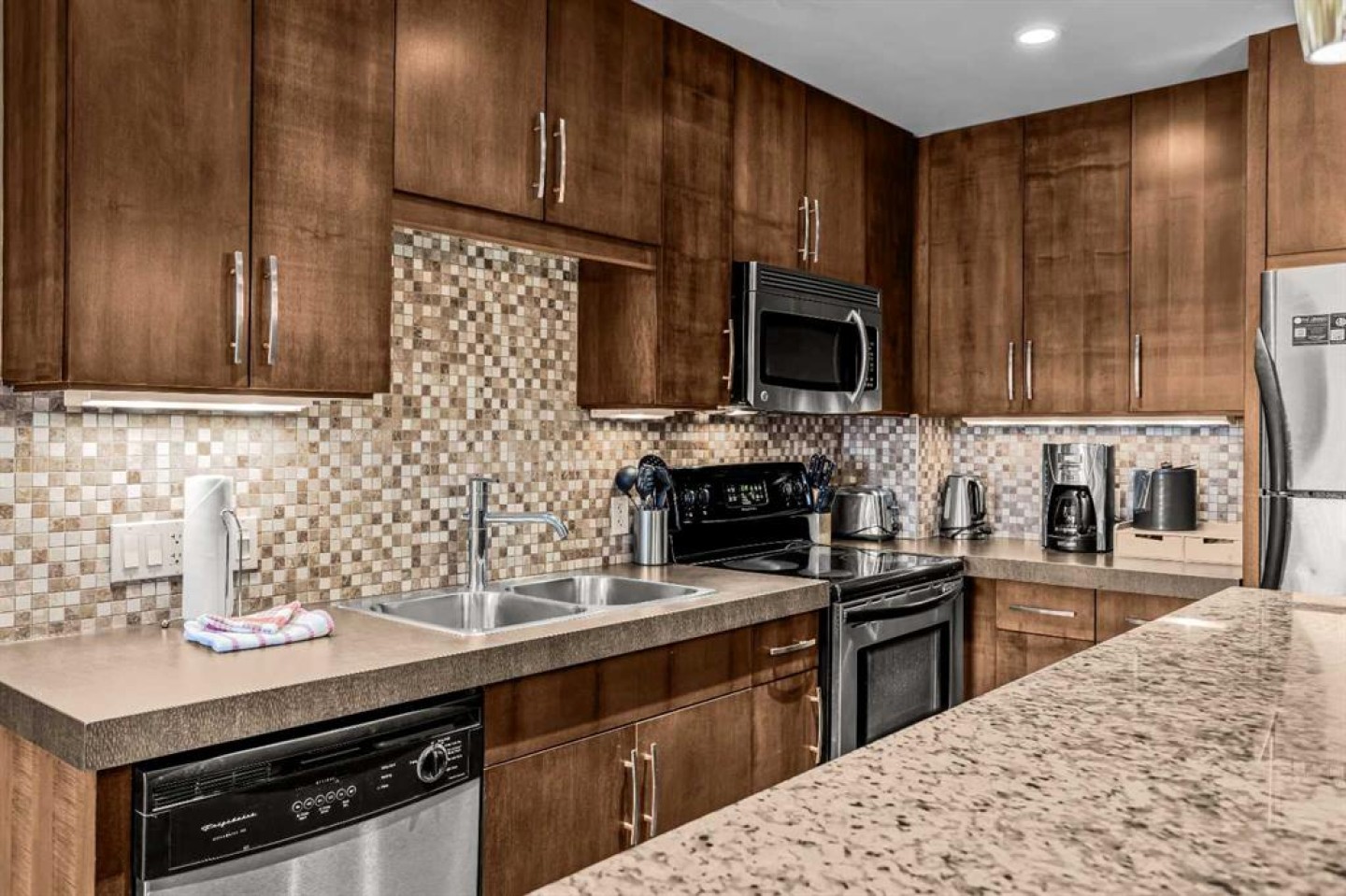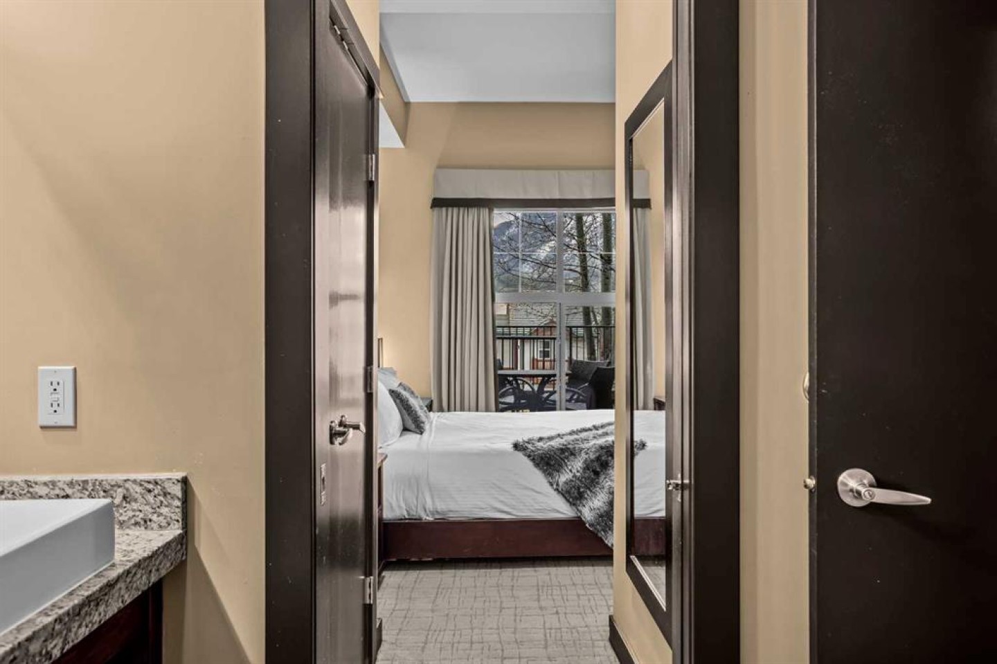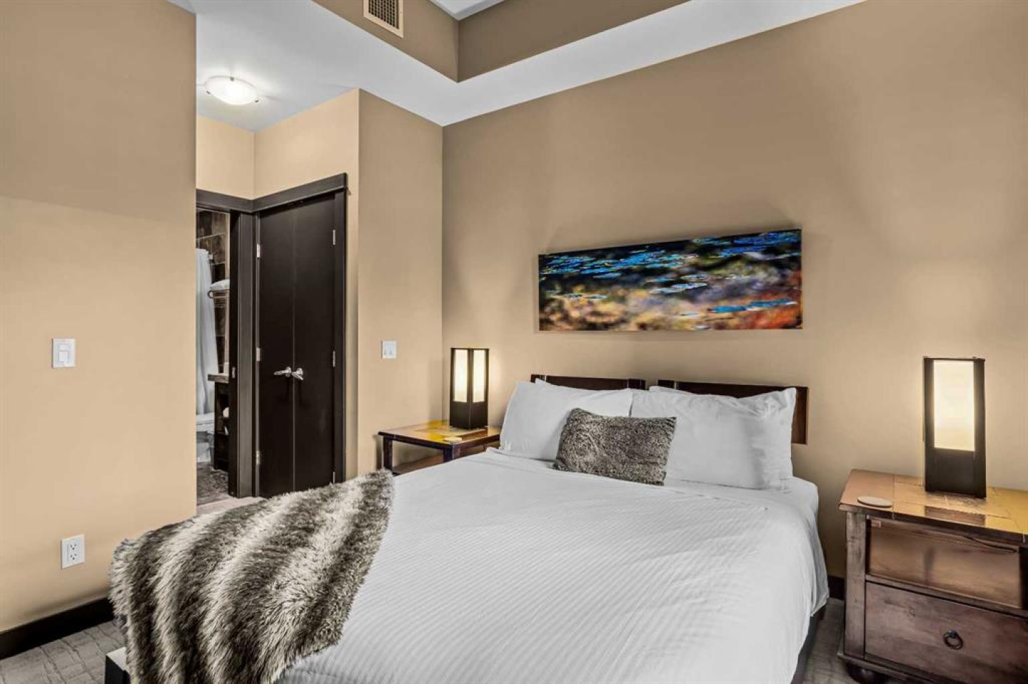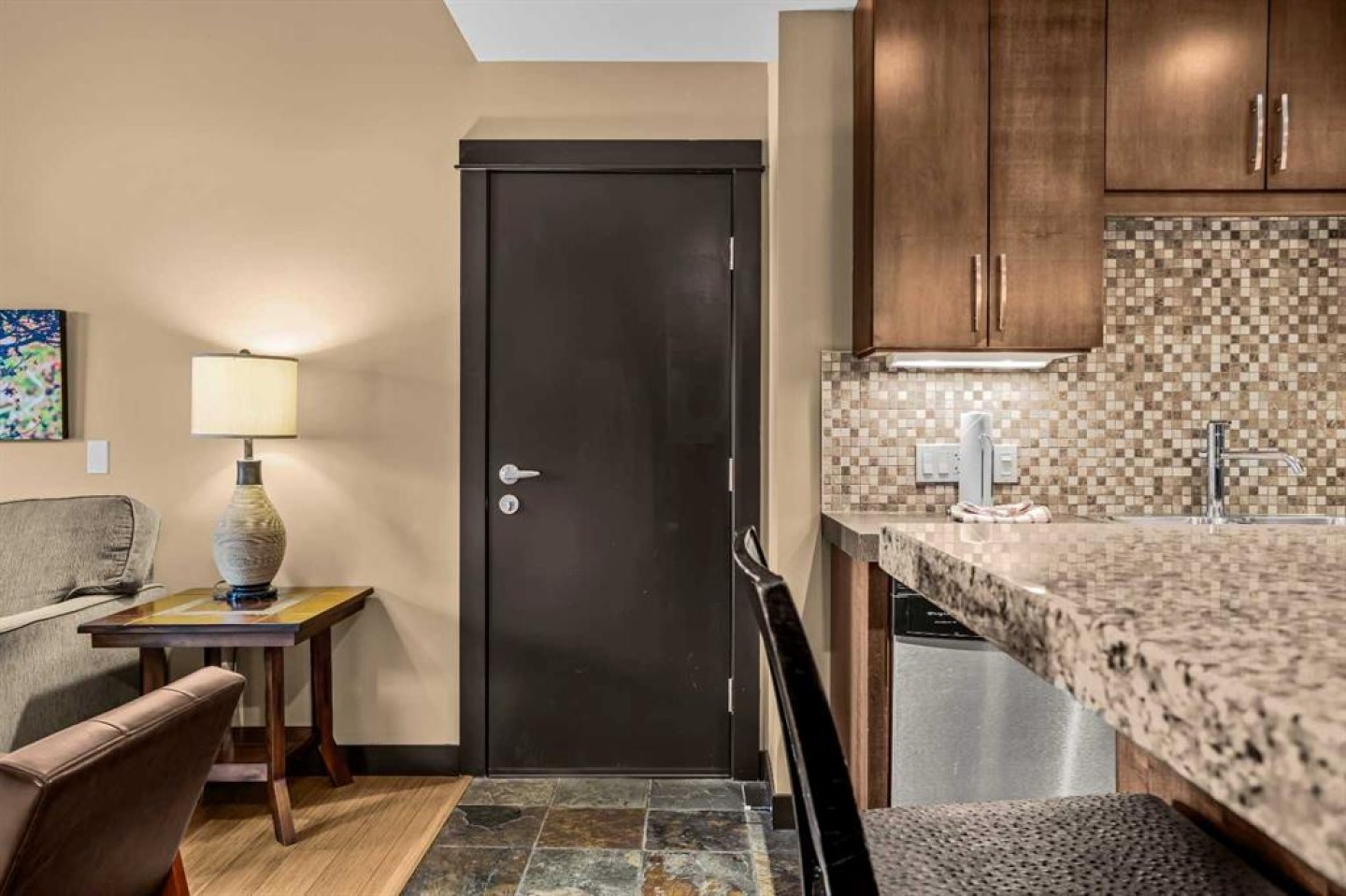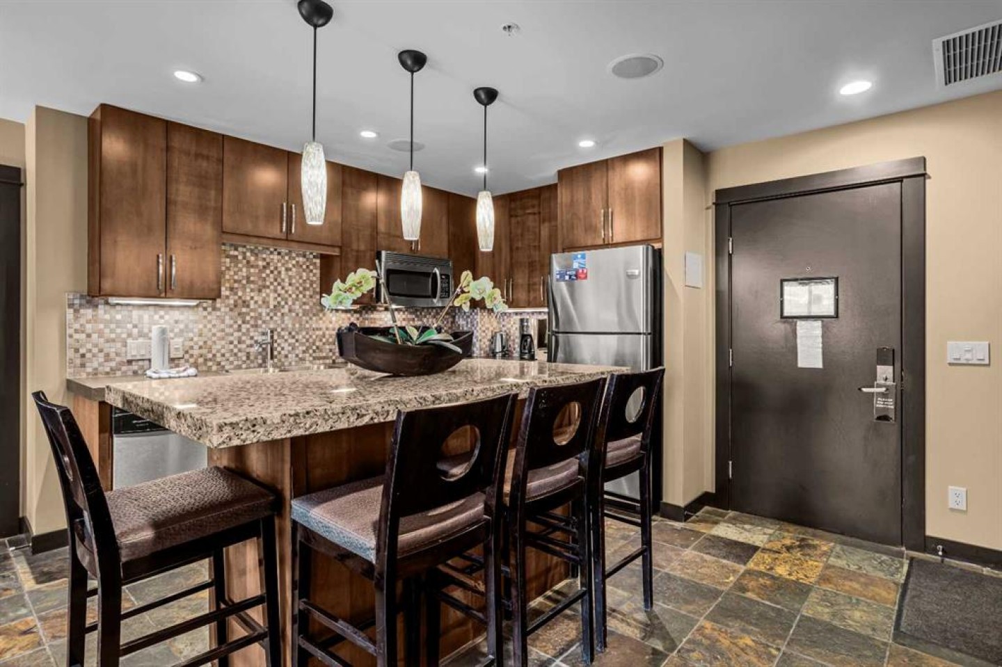 106 Rotation D -1818 Mountain Ave | Silver Creek Lodge. 12 weeks per year Your Canmore Ownership at a Fraction of the Price. Well-positioned in Silver Creek Lodge, this 2-bedroom lock-off unit offers flexibility, functionality, and one of the most sought-after features in the building—ground floor access with pet-friendly convenience. This layout is ideal for both personal use and revenue generation, with a self-contained lock-off configuration that allows for separate rental of each side. Inside, the unit features a warm and inviting mountain aesthetic with stone countertops, stainless steel appliances, and a cozy fireplace, creating a comfortable space for guests and owners alike. What truly sets this unit apart is its direct walk-out to green space, providing easy outdoor access for pets and eliminating the need for elevators or common hallways—an increasingly desirable feature for both short-term guests and long-term stays. Silver Creek Lodge amenities include a fitness area, steam room, and outdoor hot tub, enhancing the overall guest experience and supporting strong rental appeal. Ground floor, lock-off, pet-friendly units are among the most desirable and limited opportunities in the building—making this a smart choice for investors and lifestyle buyers alike.