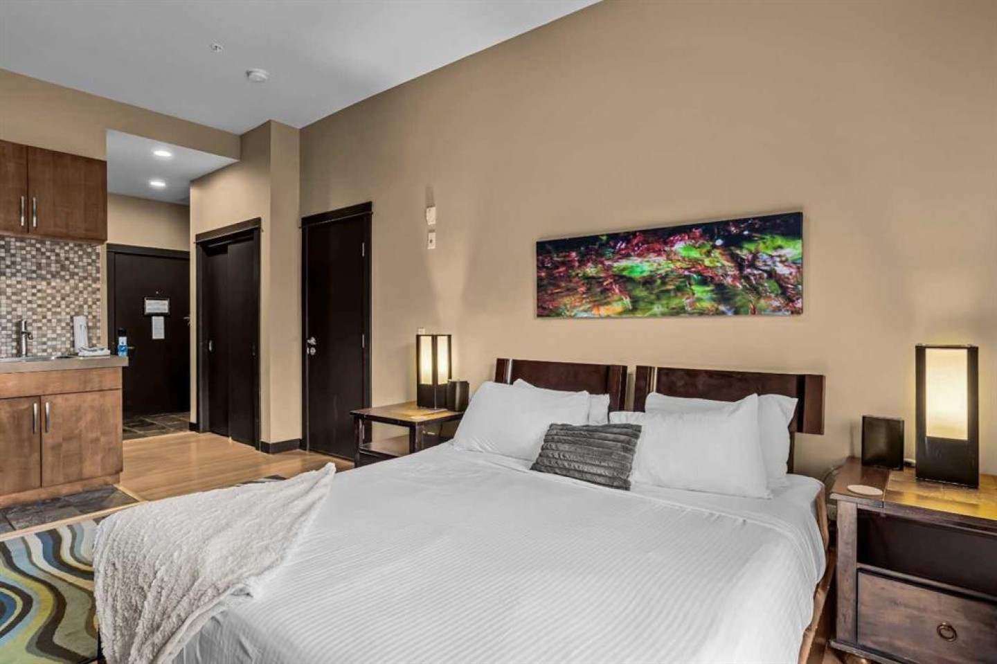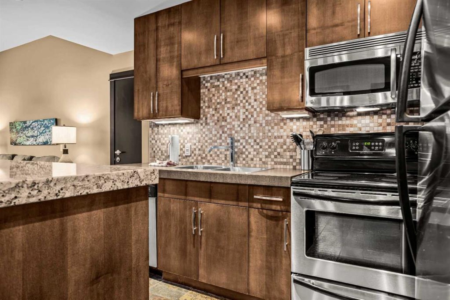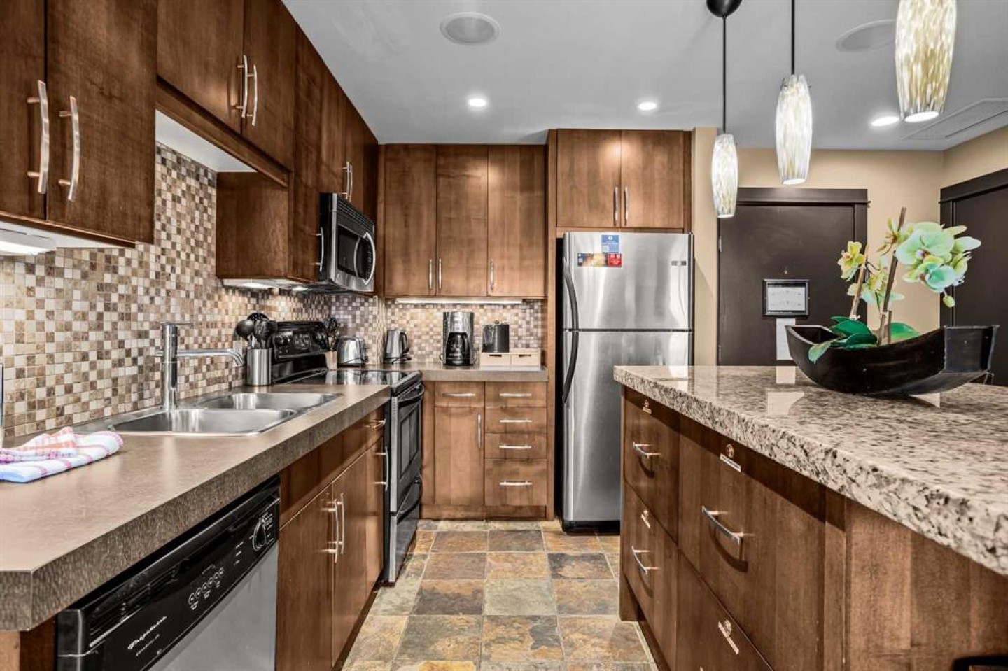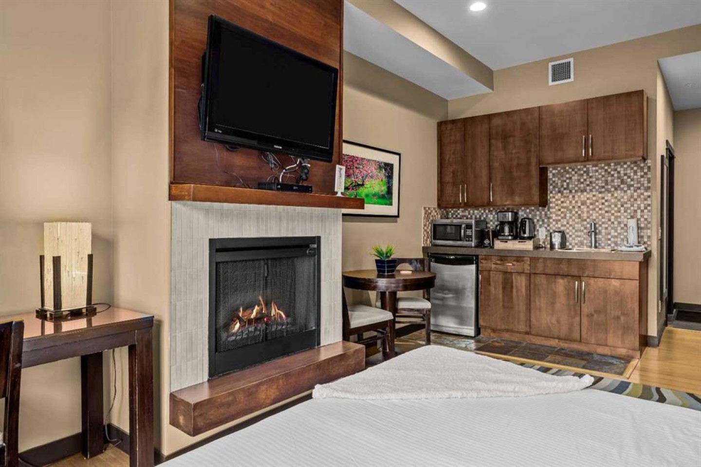 106 Rotation D -1818 Mountain Ave | Silver Creek Lodge. 12 weeks per year Your Canmore Ownership at a Fraction of the Price. Well-positioned in Silver Creek Lodge, this 2-bedroom lock-off unit offers flexibility, functionality, and one of the most sought-after features in the building—ground floor access with pet-friendly convenience. This layout is ideal for both personal use and revenue generation, with a self-contained lock-off configuration that allows for separate rental of each side. Inside, the unit features a warm and inviting mountain aesthetic with stone countertops, stainless steel appliances, and a cozy fireplace, creating a comfortable space for guests and owners alike. What truly sets this unit apart is its direct walk-out to green space, providing easy outdoor access for pets and eliminating the need for elevators or common hallways—an increasingly desirable feature for both short-term guests and long-term stays. Silver Creek Lodge amenities include a fitness area, steam room, and outdoor hot tub, enhancing the overall guest experience and supporting strong rental appeal. Ground floor, lock-off, pet-friendly units are among the most desirable and limited opportunities in the building—making this a smart choice for investors and lifestyle buyers alike.