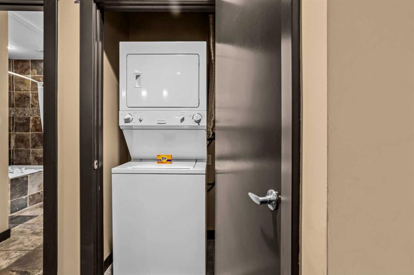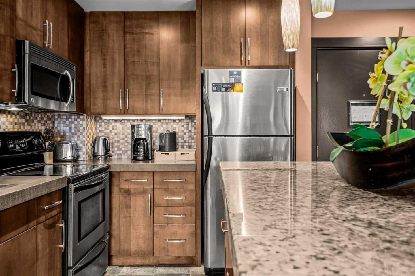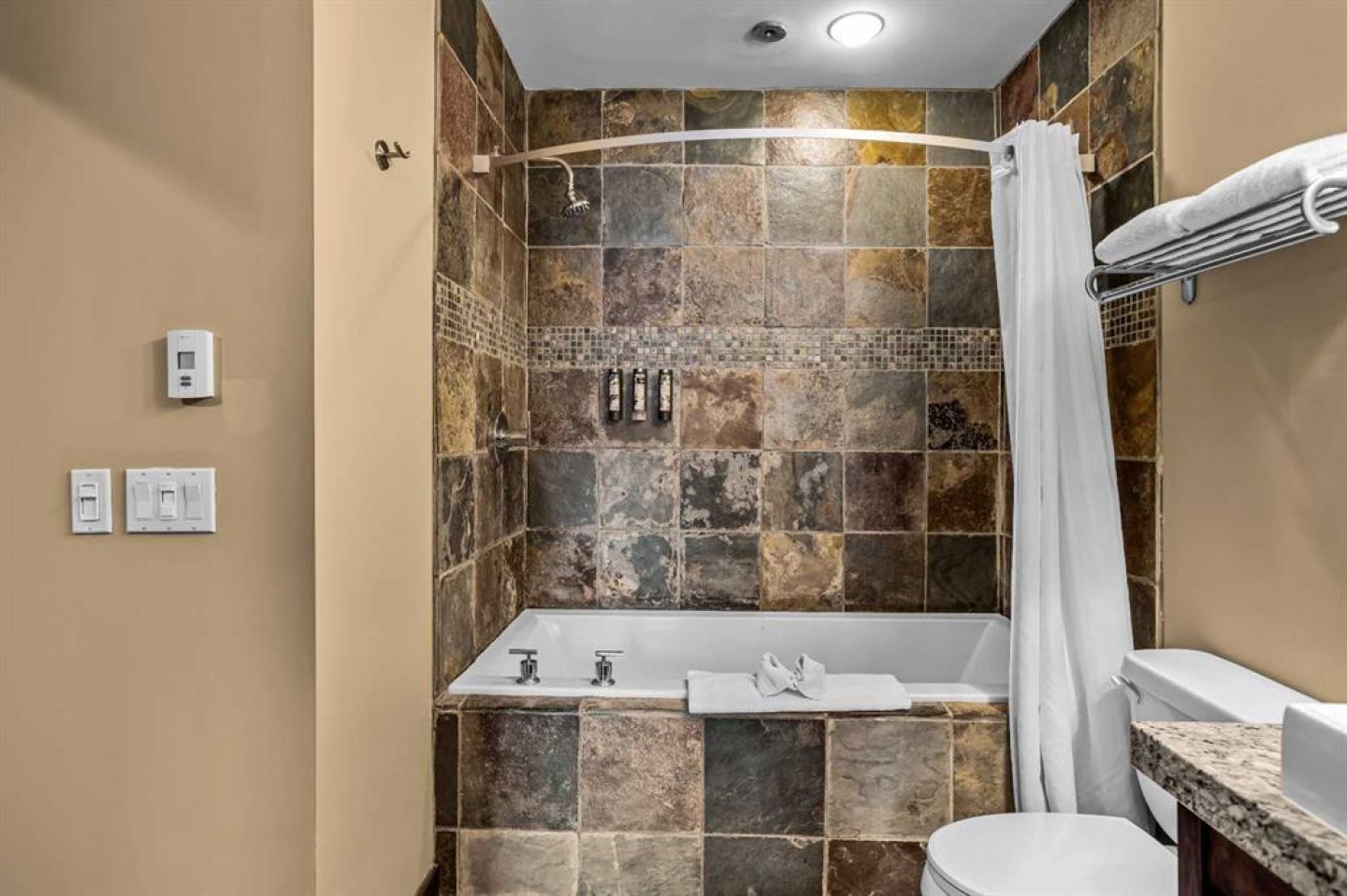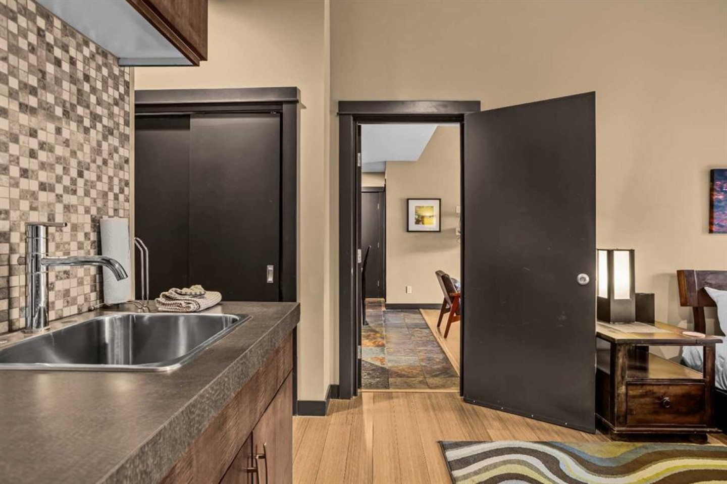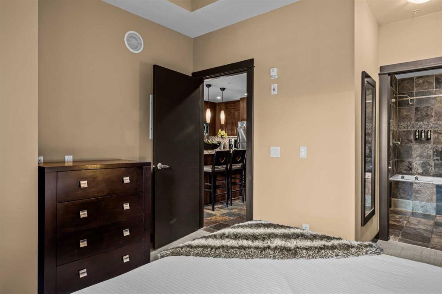 106 Rotation D -1818 Mountain Ave | Silver Creek Lodge. 12 weeks per year Your Canmore Ownership at a Fraction of the Price. Well-positioned in Silver Creek Lodge, this 2-bedroom lock-off unit offers flexibility, functionality, and one of the most sought-after features in the building—ground floor access with pet-friendly convenience. This layout is ideal for both personal use and revenue generation, with a self-contained lock-off configuration that allows for separate rental of each side. Inside, the unit features a warm and inviting mountain aesthetic with stone countertops, stainless steel appliances, and a cozy fireplace, creating a comfortable space for guests and owners alike. What truly sets this unit apart is its direct walk-out to green space, providing easy outdoor access for pets and eliminating the need for elevators or common hallways—an increasingly desirable feature for both short-term guests and long-term stays. Silver Creek Lodge amenities include a fitness area, steam room, and outdoor hot tub, enhancing the overall guest experience and supporting strong rental appeal. Ground floor, lock-off, pet-friendly units are among the most desirable and limited opportunities in the building—making this a smart choice for investors and lifestyle buyers alike.