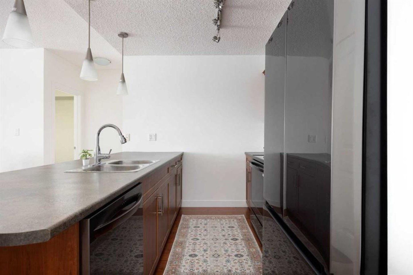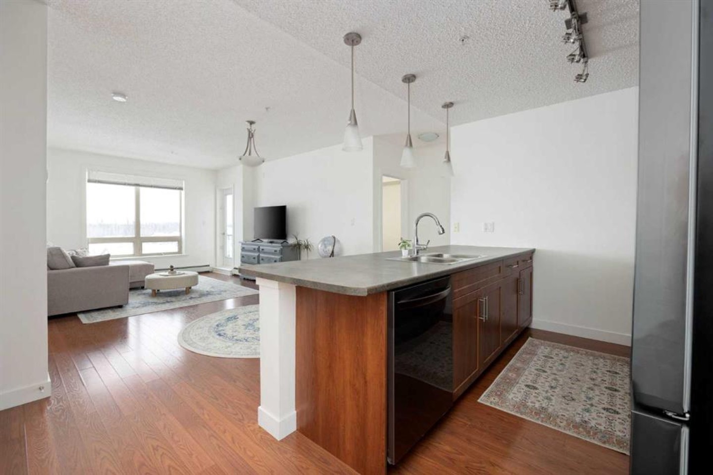 Beautiful top floor south facing condo in Eagle Ridge. Pride of ownership shines through on this meticulously maintained condo. Large island/breakfast bar in the kitchen. Plenty of counter and cupboard space giving ample room for preparing meals. Stunning stainless appliances which were recently purchased. Open concept makes for a great space to bring family and friends together. Enjoy the views from the spacious living room or step out onto the south facing private balcony where you can take in the scenery and sunshine. Convenient gas hook up for the bbq. This freshly painted 2 bedroom, 2 bath is enough room for the professional working couple or would make a great investment property. Not only are the amenities impressive, this unit comes with 2 titled parking stalls and 1 titled secure heated storage unit. Owners all have access to a car wash as well as a cardio gym and weight room. This gorgeous property is located within walking distance to shopping, restaurants, bus stops as well as the most scenic walking and bike trails in Fort McMurray. This beauty is easy to show with a quick possession. Furniture is negotiable.
