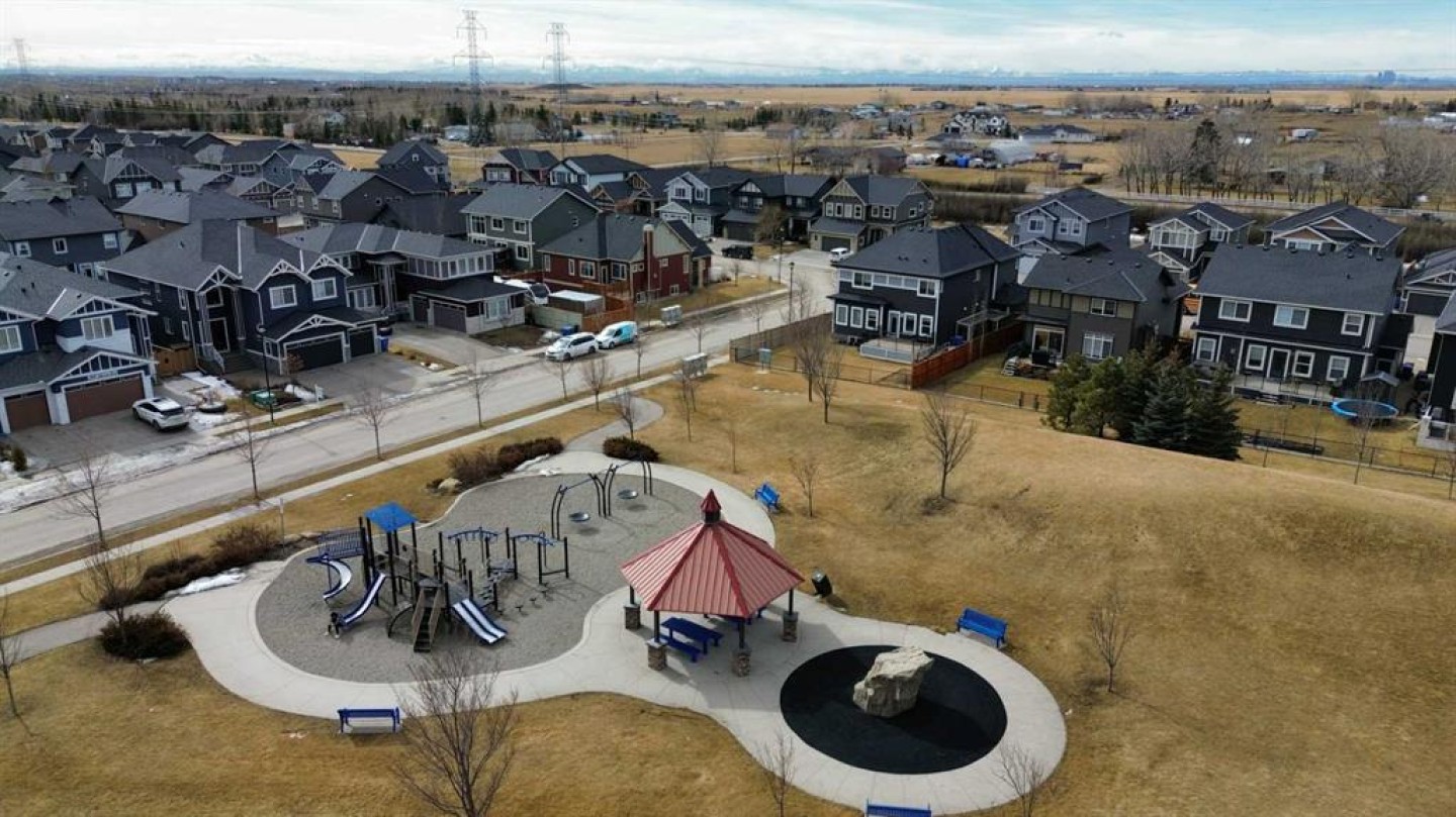 Welcome to Westmere, one of the most sought-after communities near Calgary and in Chestermere! This breathtaking corner lot residence adjoins a tranquil park, offering uninterrupted views and a sense of privacy with no neighbors directly behind. With its east/west orientation, enjoy an abundance of natural light all day long, enhanced by central air conditioning for your ultimate comfort. Step inside this remarkable 2-storey home with 9ft main floor and basement ceilings, 3944 SqFt of thoughtfully crafted living space awaits, featuring 6 spacious bedrooms and 5 stylish bathrooms. The main level showcases sound-proofed flooring and includes a convenient bedroom with a closet and a 3-piece bath—ideal for multigenerational living or visiting guests. The gourmet chef's kitchen is truly a culinary delight, boasting stainless steel appliances, elegant full-height cabinets, stunning granite countertops, and a generous center island perfect for casual meals. Plus, a separate spice kitchen equipped with an electric stove and walk-in pantry ensures you're ready for any cooking challenge. The open-concept design flows effortlessly from the kitchen to the dining and family areas, where abundant windows create a bright and inviting atmosphere. A cozy gas fireplace in the family room provides warmth and charm, and the main-level laundry adds an extra layer of convenience. Step outside to your expansive deck, overlooking a fully fenced backyard with direct access to Aspenmere Park—ideal for alfresco entertaining and family fun! Venture upstairs to find not one, but two luxurious primary bedrooms with their own ensuite bathrooms, along with two additional bedrooms and a versatile bonus room perfect for cozy family gatherings. The first primary bedroom offers stunning park views, a spacious walk-in closet, and a lavish 5-piece ensuite complete with a deep soaking tub and double vanity. The finished basement, featuring its own private covered entry, reveals a vast rec room adorned with an electric fireplace, alongside a wet bar for entertaining guests, an extra bedroom, and a 3-piece bath. The basement has been roughed in to easily be converted to a LEGAL SUITE! Suite would be subject to approvals and permitting by the municipality. Additional perks include a front-facing triple garage with a car charging station, a water softener, a central vacuum system, solar rough-ins, and structural warranty coverage until September 2027. With parking space for up to 6 vehicles and plenty of street parking available, this home is an extraordinary find. Don't let this opportunity slip away—schedule your showing today!