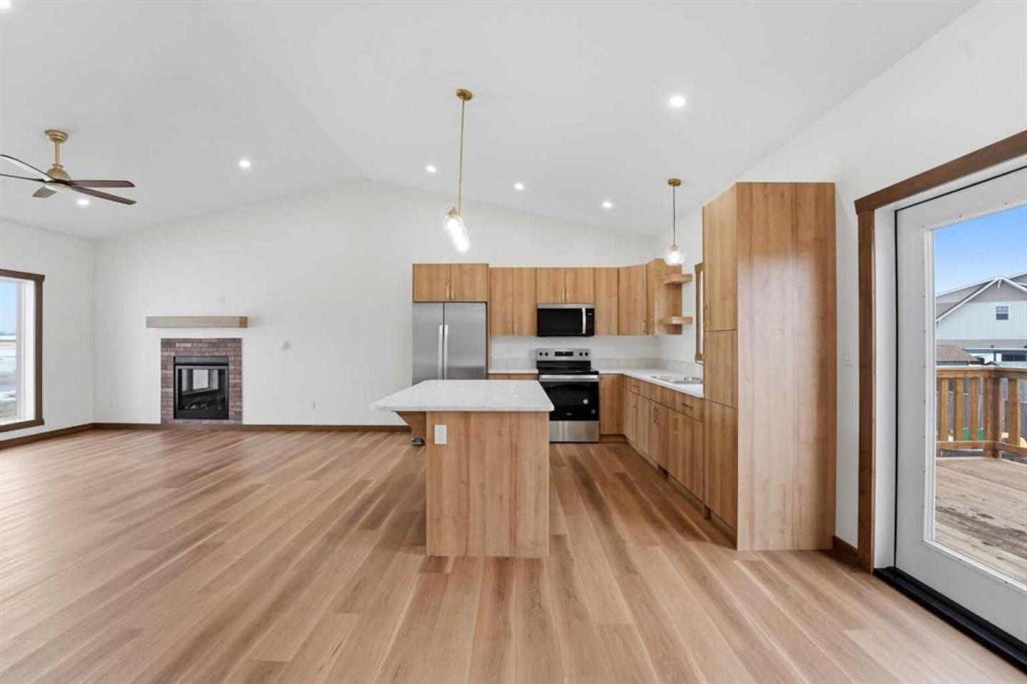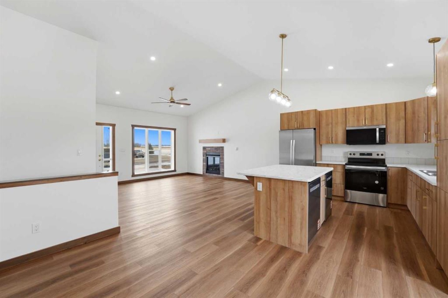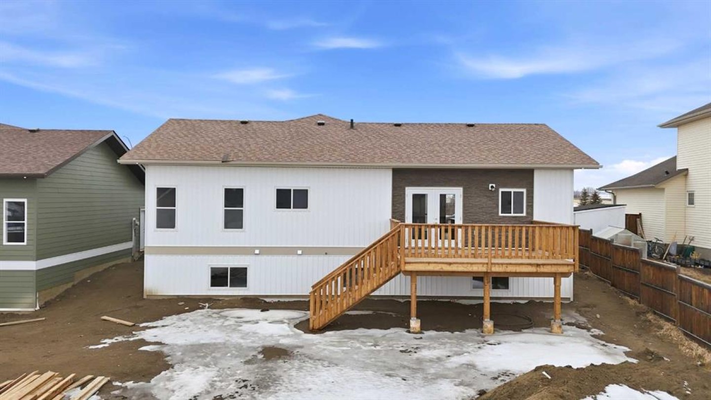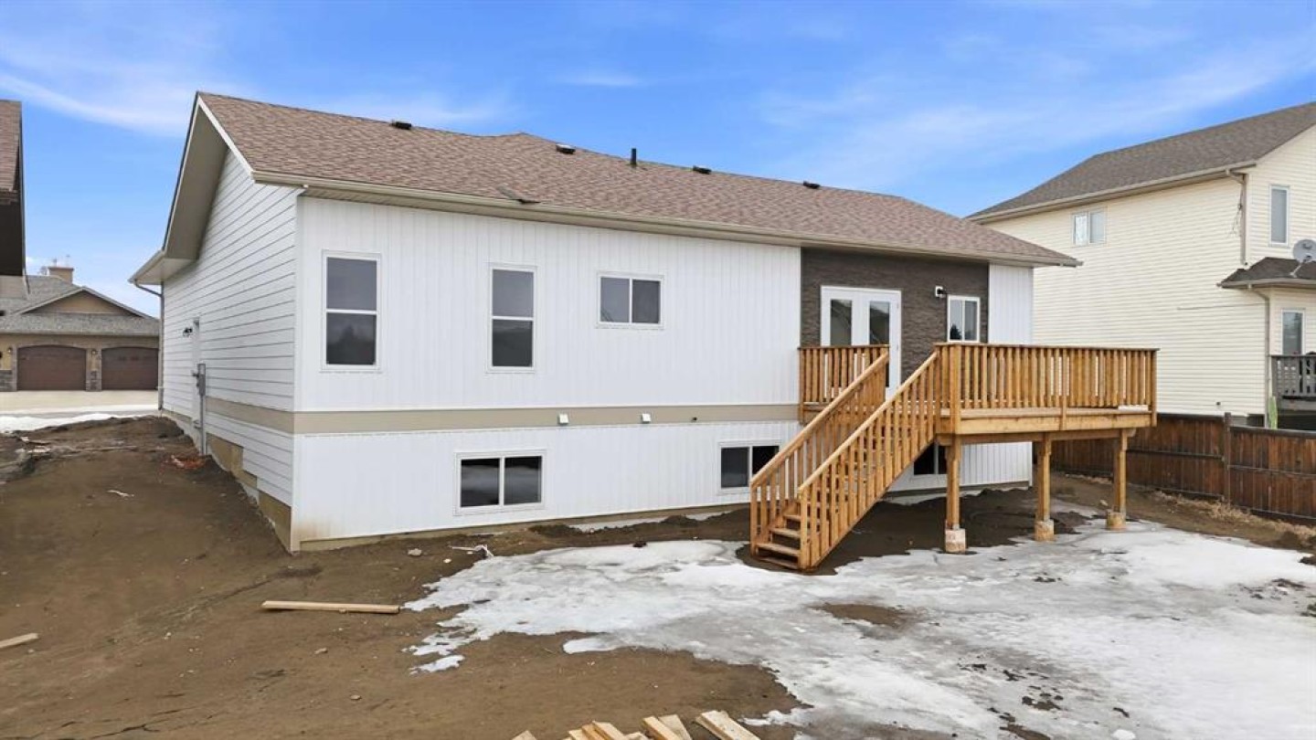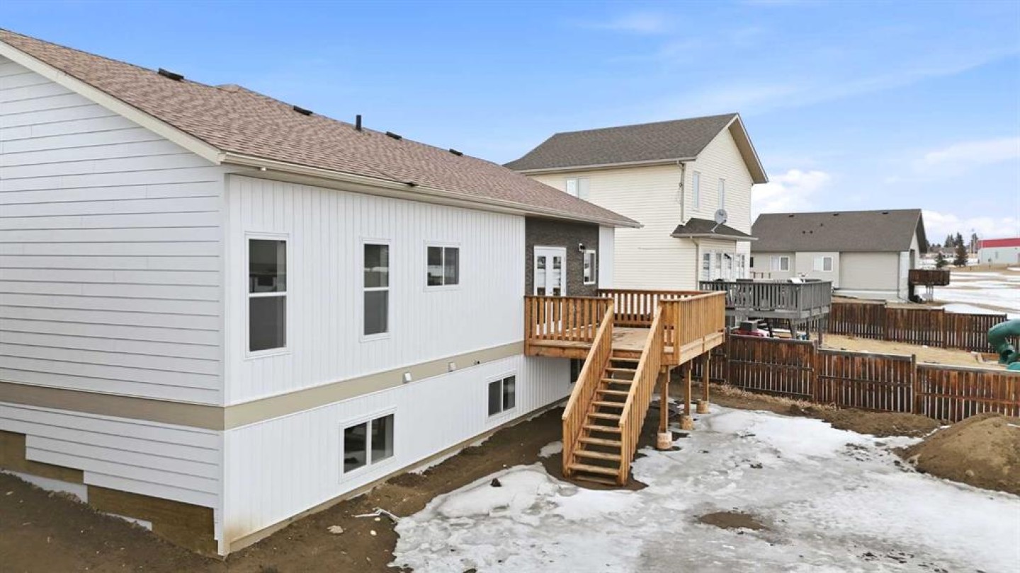 Welcome to this beautiful brand-new bungalow by Larchwood Homes, built this year and perfectly located on the outskirts of town in the charming community of Eckville - just 15 minutes from Sylvan Lake and half hour Red Deer. From the moment you arrive, you’ll be impressed by the stunning curb appeal and double attached garage. Step inside to a bright and inviting main floor featuring vaulted ceilings, modern light fixtures, a cozy gas fireplace, and patio doors leading to the massive backyard—perfect for entertaining or enjoying peaceful outdoor space. The kitchen offers laminate countertops, a large island, modern oak cabinetry, modern lighr fixtures and even two dishwashers, making it an ideal setup for busy families or those who love to host. Down the hall, you’ll find two good-sized bedrooms and a full 4-piece bathroom. The laundry is conveniently located in the boot room, complete with a spacious coat closet and direct access to the garage. The garage features soaring ceilings and is roughed-in for in-floor heat. The primary bedroom retreat offers a massive walk-in closet and a private 4-piece ensuite, providing a comfortable and functional space to unwind. The unfinished basement is ready for your future development, featuring large windows, roughed in for infloor heat, and a bright, open layout that doesn’t feel like a typical basement. Don’t wait—this beautiful new home could be the perfect fit for you!