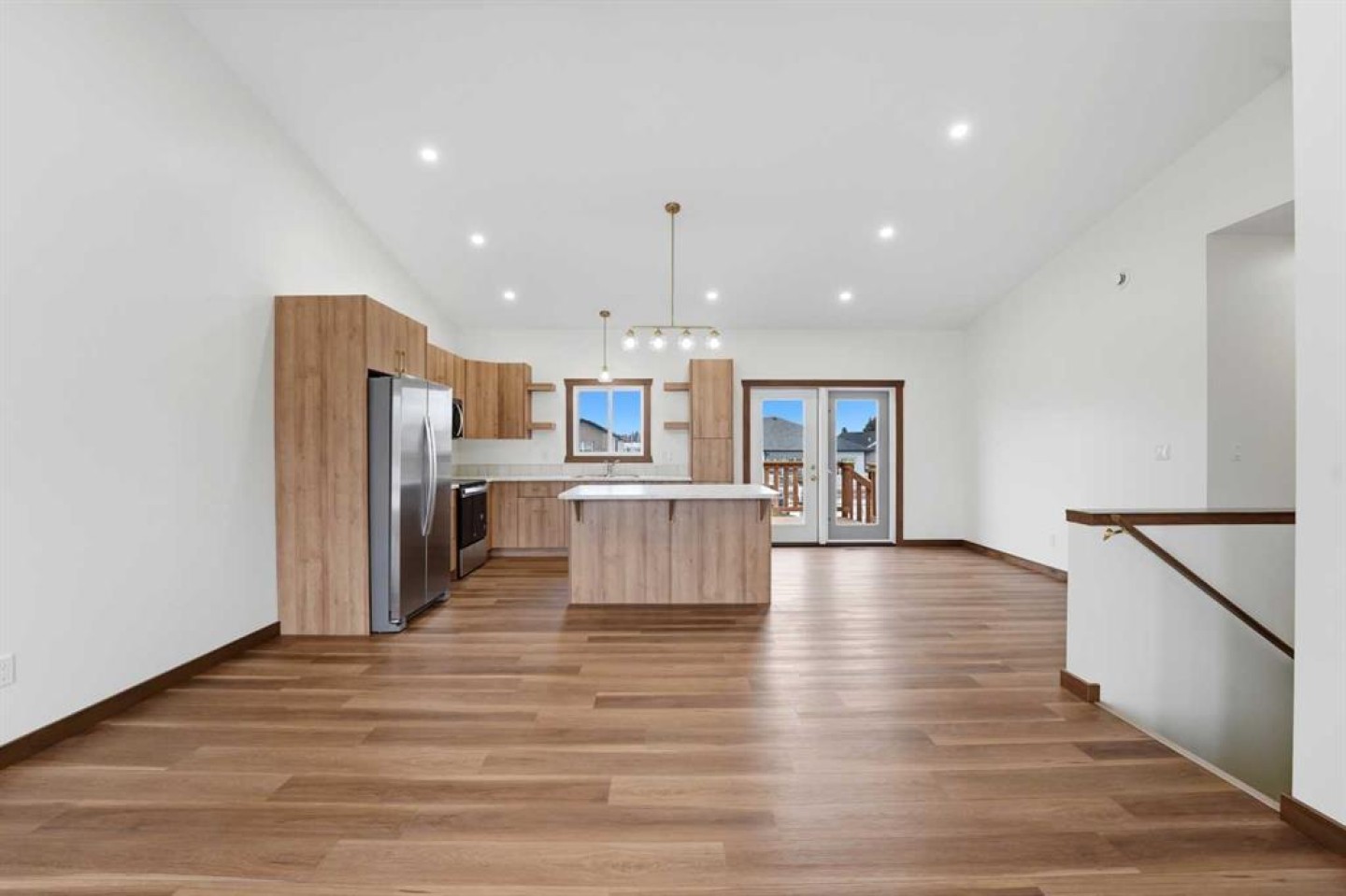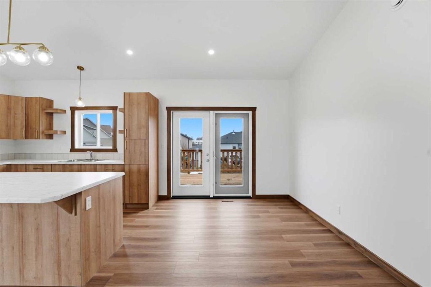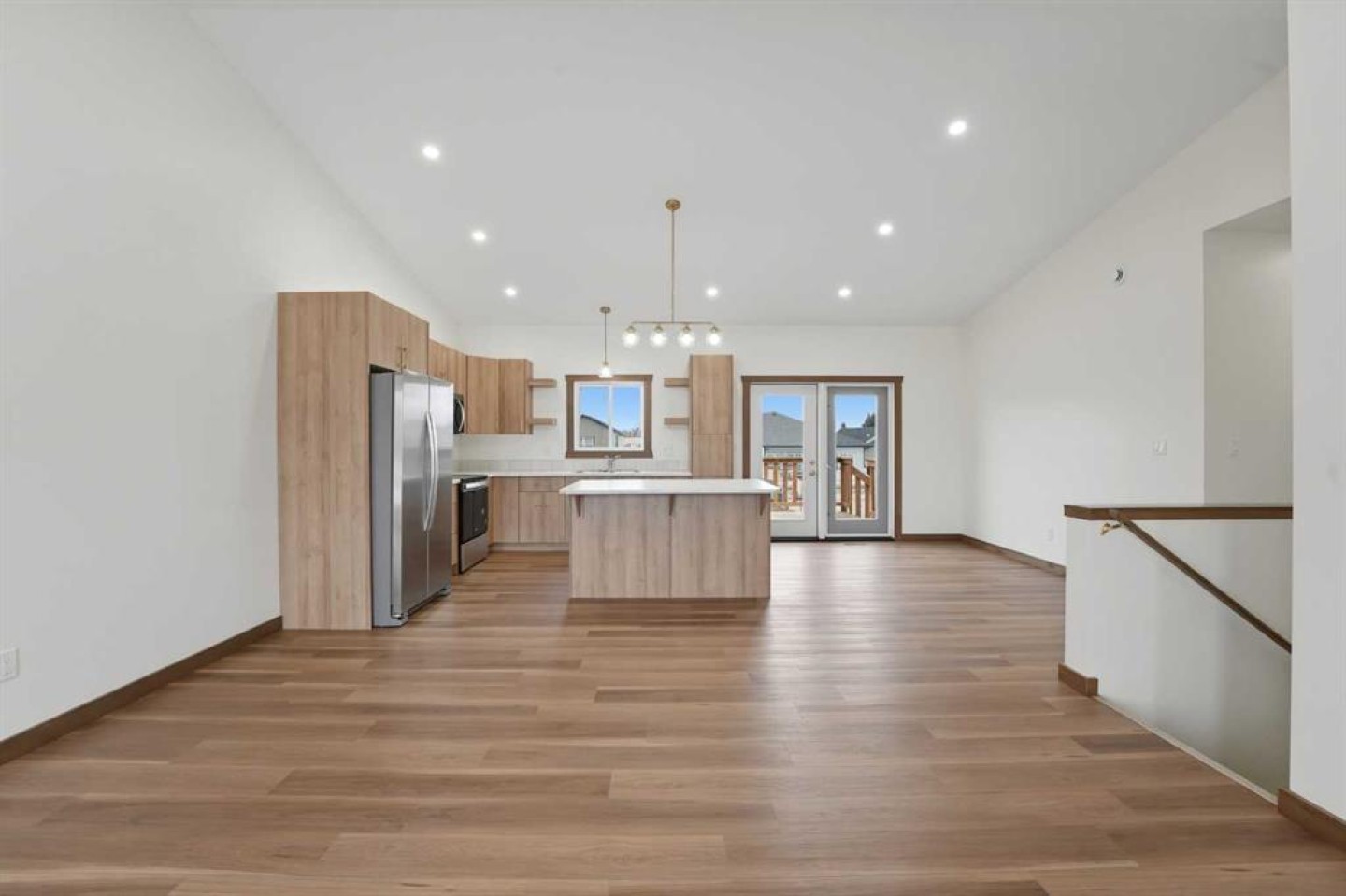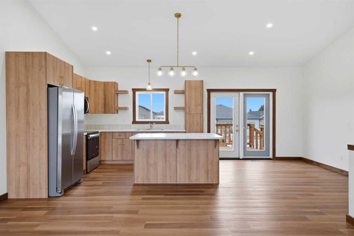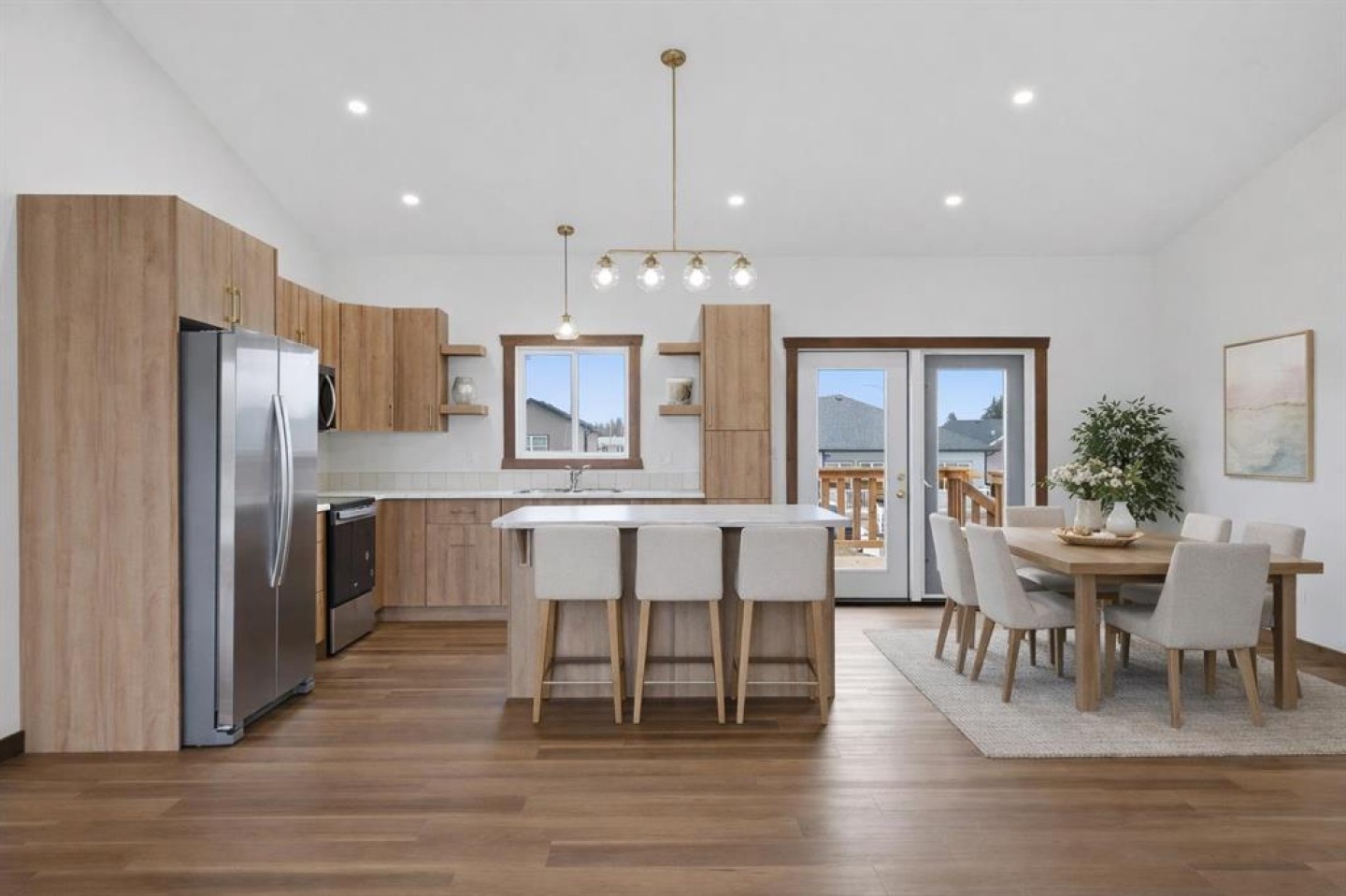 Welcome to this beautiful brand-new bungalow by Larchwood Homes, built this year and perfectly located on the outskirts of town in the charming community of Eckville - just 15 minutes from Sylvan Lake and half hour Red Deer. From the moment you arrive, you’ll be impressed by the stunning curb appeal and double attached garage. Step inside to a bright and inviting main floor featuring vaulted ceilings, modern light fixtures, a cozy gas fireplace, and patio doors leading to the massive backyard—perfect for entertaining or enjoying peaceful outdoor space. The kitchen offers laminate countertops, a large island, modern oak cabinetry, modern lighr fixtures and even two dishwashers, making it an ideal setup for busy families or those who love to host. Down the hall, you’ll find two good-sized bedrooms and a full 4-piece bathroom. The laundry is conveniently located in the boot room, complete with a spacious coat closet and direct access to the garage. The garage features soaring ceilings and is roughed-in for in-floor heat. The primary bedroom retreat offers a massive walk-in closet and a private 4-piece ensuite, providing a comfortable and functional space to unwind. The unfinished basement is ready for your future development, featuring large windows, roughed in for infloor heat, and a bright, open layout that doesn’t feel like a typical basement. Don’t wait—this beautiful new home could be the perfect fit for you!