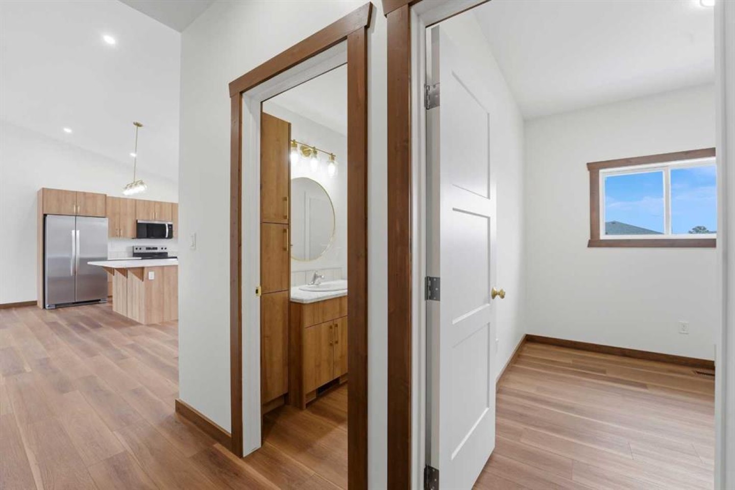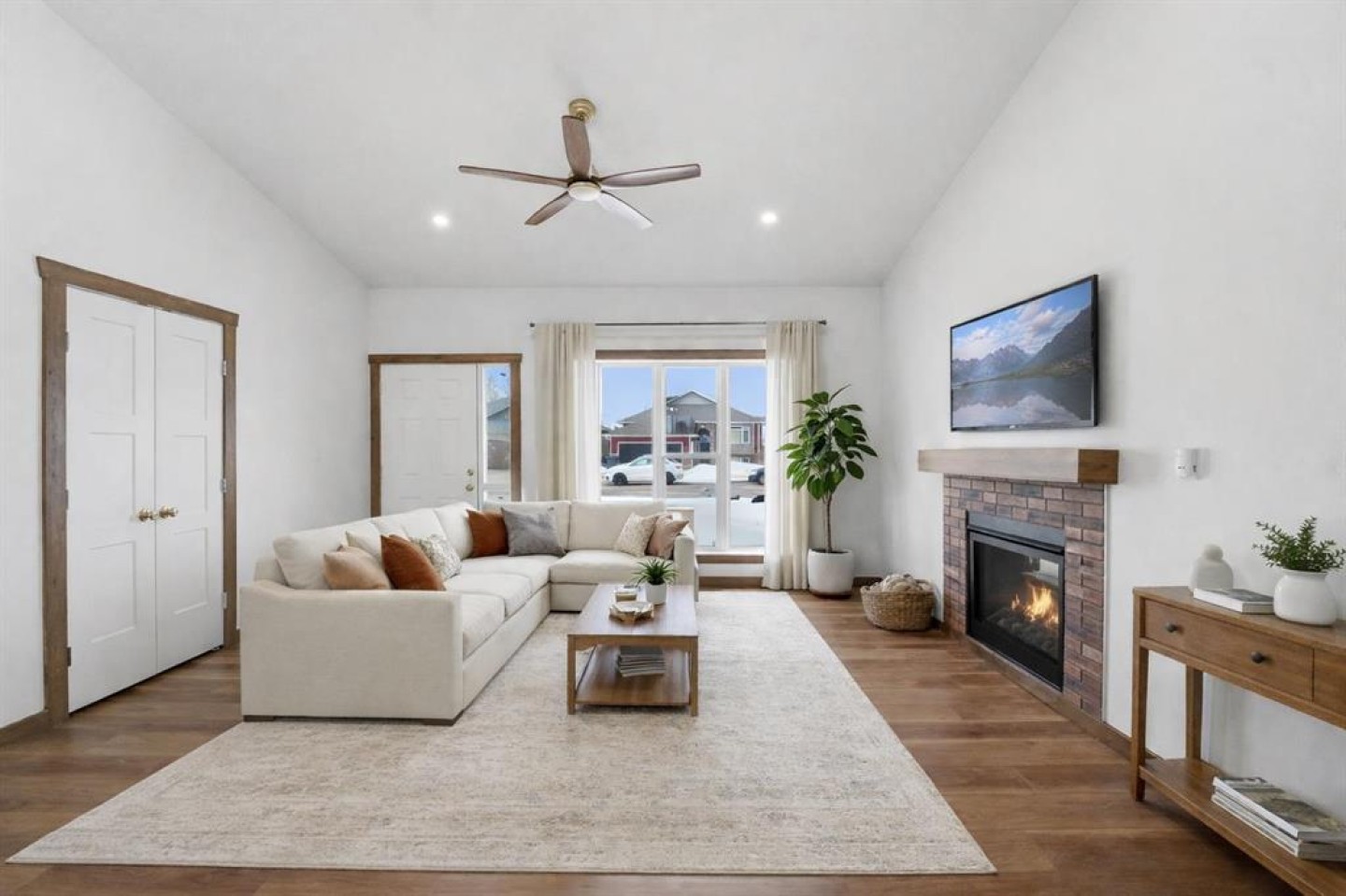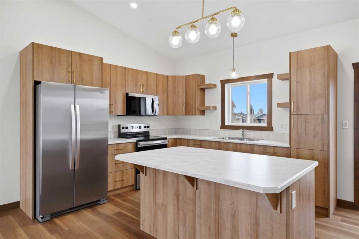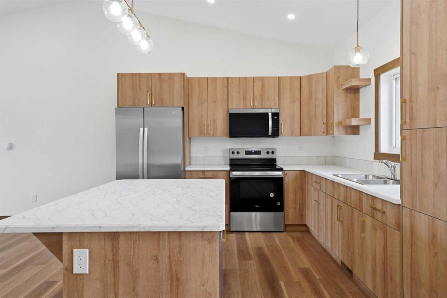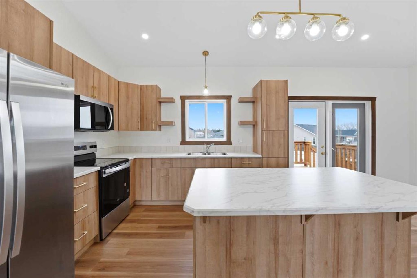 Welcome to this beautiful brand-new bungalow by Larchwood Homes, built this year and perfectly located on the outskirts of town in the charming community of Eckville - just 15 minutes from Sylvan Lake and half hour Red Deer. From the moment you arrive, you’ll be impressed by the stunning curb appeal and double attached garage. Step inside to a bright and inviting main floor featuring vaulted ceilings, modern light fixtures, a cozy gas fireplace, and patio doors leading to the massive backyard—perfect for entertaining or enjoying peaceful outdoor space. The kitchen offers laminate countertops, a large island, modern oak cabinetry, modern lighr fixtures and even two dishwashers, making it an ideal setup for busy families or those who love to host. Down the hall, you’ll find two good-sized bedrooms and a full 4-piece bathroom. The laundry is conveniently located in the boot room, complete with a spacious coat closet and direct access to the garage. The garage features soaring ceilings and is roughed-in for in-floor heat. The primary bedroom retreat offers a massive walk-in closet and a private 4-piece ensuite, providing a comfortable and functional space to unwind. The unfinished basement is ready for your future development, featuring large windows, roughed in for infloor heat, and a bright, open layout that doesn’t feel like a typical basement. Don’t wait—this beautiful new home could be the perfect fit for you!