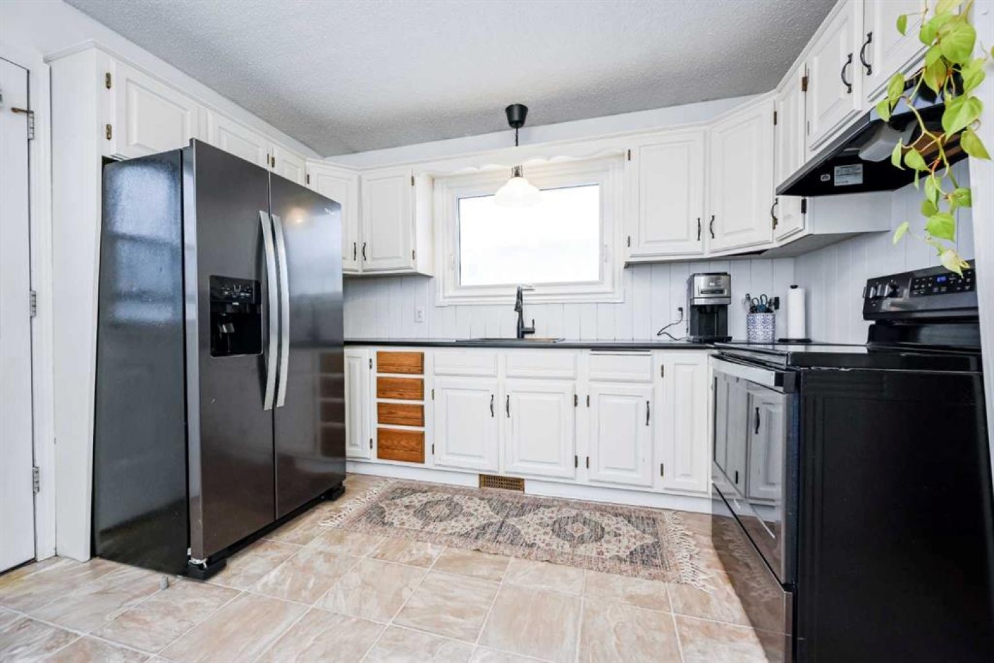 This Absolutely homey and welcoming home with detached 18x22 garage will be sure to please. A mix of cute + cozy and major upgrades like furnace, roof, windows, eavestrough + soffit , and hot water tank all have been done. Tiled entry way welcomes you onto the main level which consists of the the kitchen + dining, living room with vaulted ceiling complimented by real wood burning fireplace. Heading up a few stairs you will find the master bedroom, updated bathroom with dual sinks and tiled tub + shower combo, and a second large bedroom. Third level boast second living room with ample natural light from all the windows, full bathroom, and third bedroom. Last level is unfinished but has lots of space for future fourth bedroom and third living room, also hosts utility/laundry room. Driveway is massive and allows for adequate parking or RV Parking. Back yard is immaculate and south backing allowing sun all day long, as well grand deck. Detached 18x22 garage is insulated with power and concrete floor great for parking during our long winters or storage or carrying out all your hobbies or future hobbies. Home backs onto an easement as well perfect extra privacy we all long for. Book your viewing today as this home will check all your boxes.